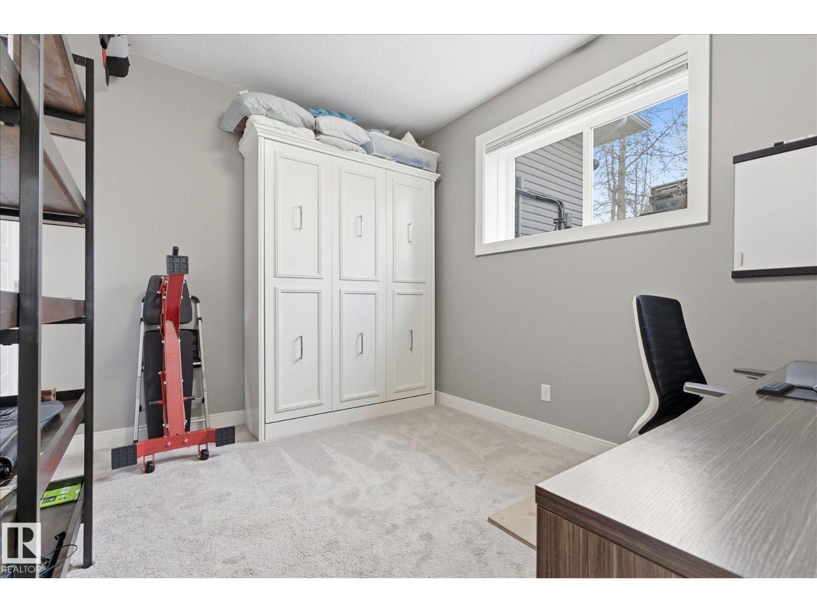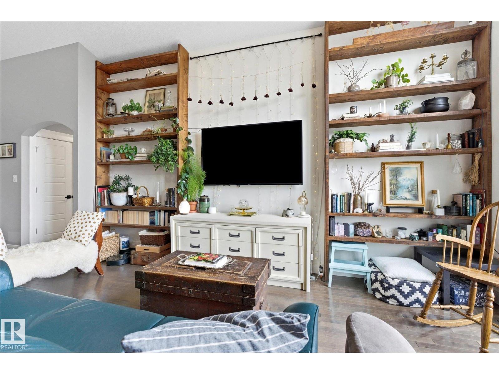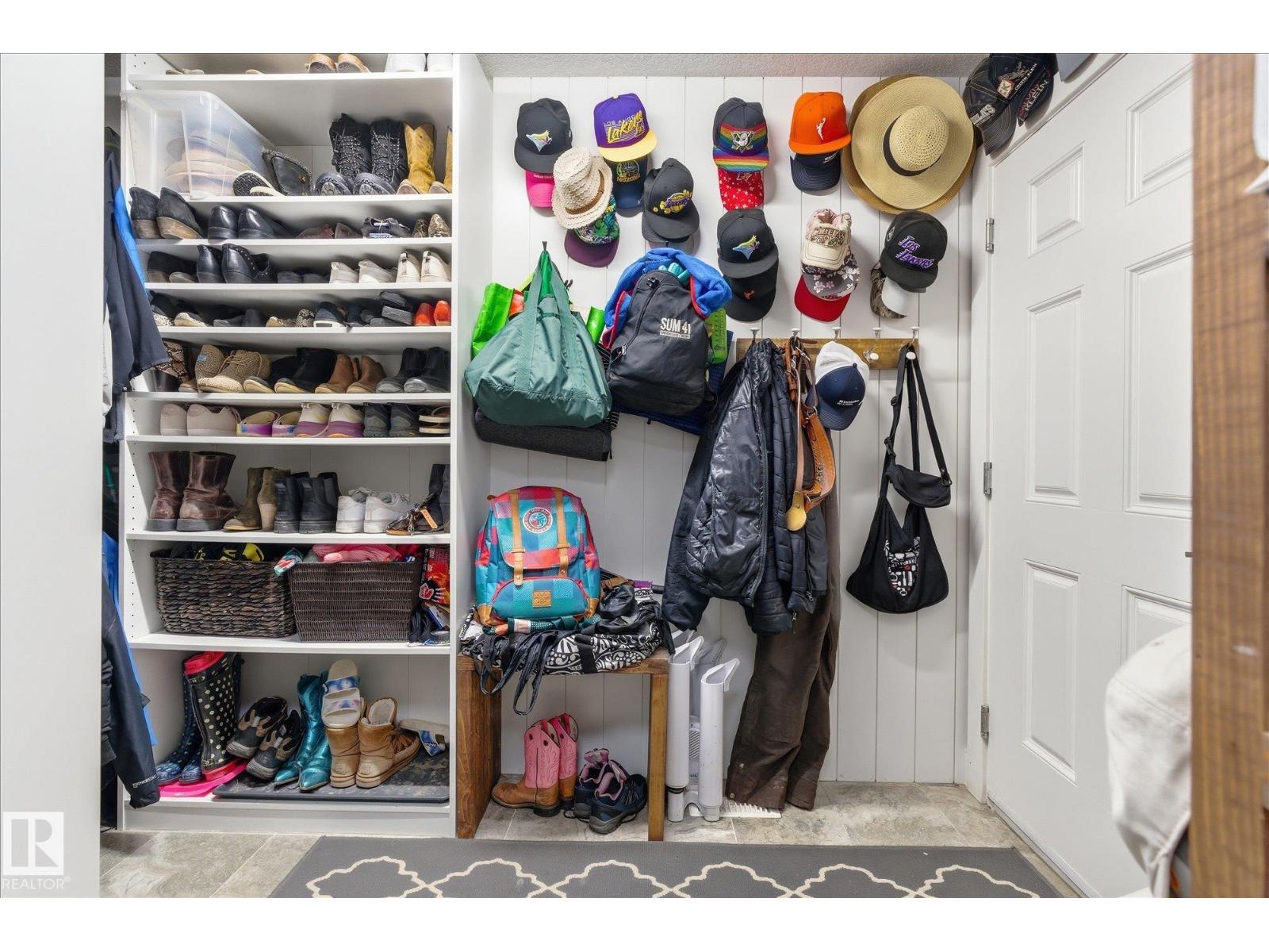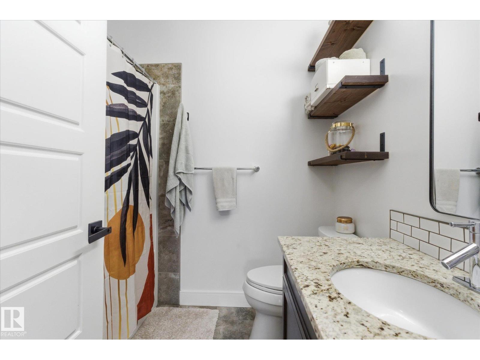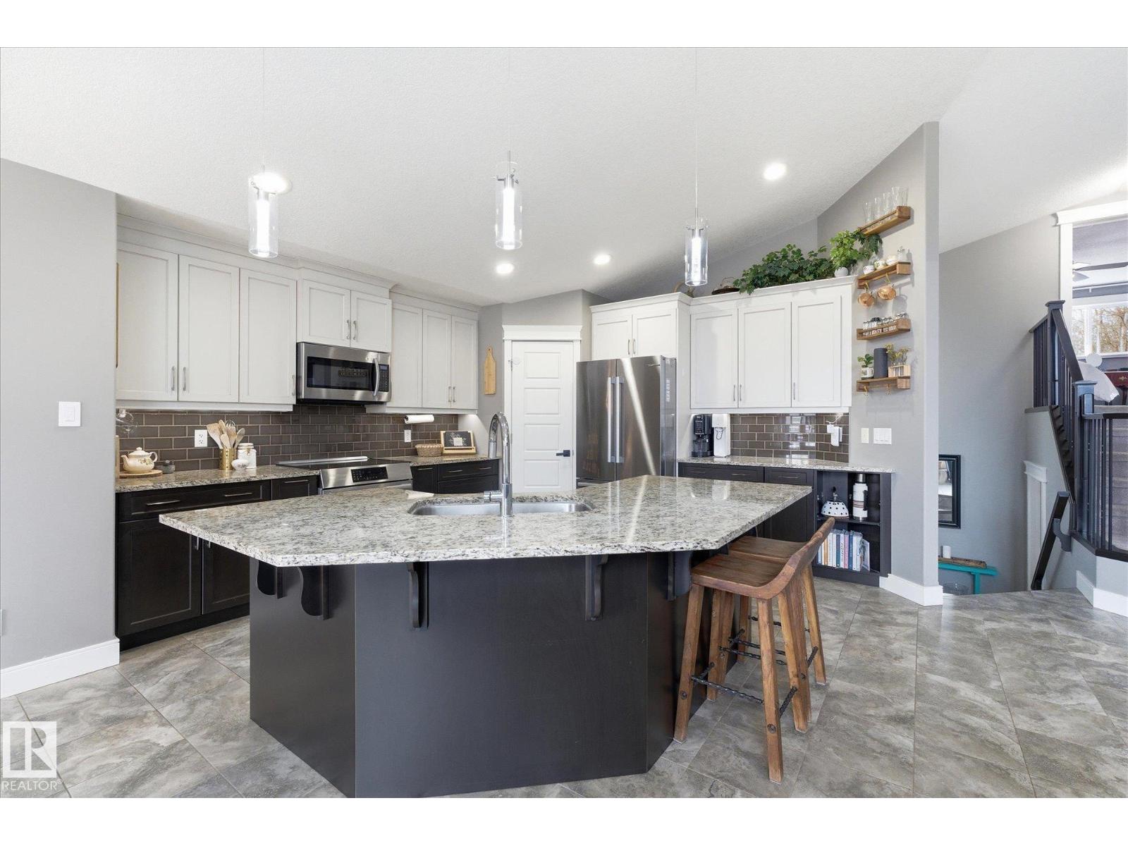 Gorgeous custom-built 1.5 storey walkout on 1.09 private, treed acres backing greenspace, just minutes from Chickakoo Lake Recreation Area. This 5 bedroom, 3 full bathroom home features an open-concept layout with 12’ vaulted ceilings, large windows, and a bright kitchen with island, granite countertops, and corner pantry. The main floor offers 2 spacious bedrooms, while the fully finished basement includes 2 more. The huge primary suite over the garage features a walk-in closet and 4-pc ensuite with dual sinks and a corner jetted tub. Enjoy a cozy gas fireplace, walk-in laundry, dual-zone heating & A/C. Maintenance-free decks overlook a beautifully treed yard with invisible fence. Heated 27’ x 36.5’ triple garage with H/C water and drains. Quick commute to Stony Plain. This one won’t last! (id:63190)