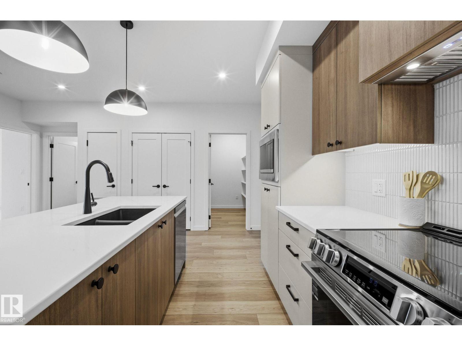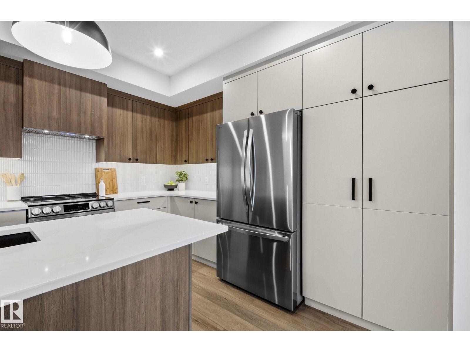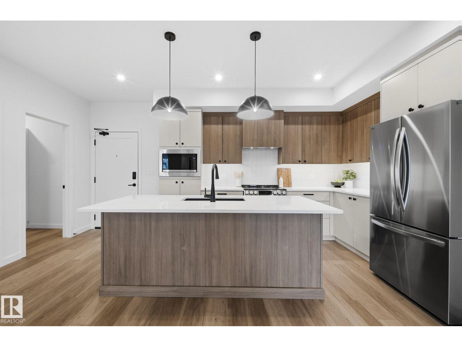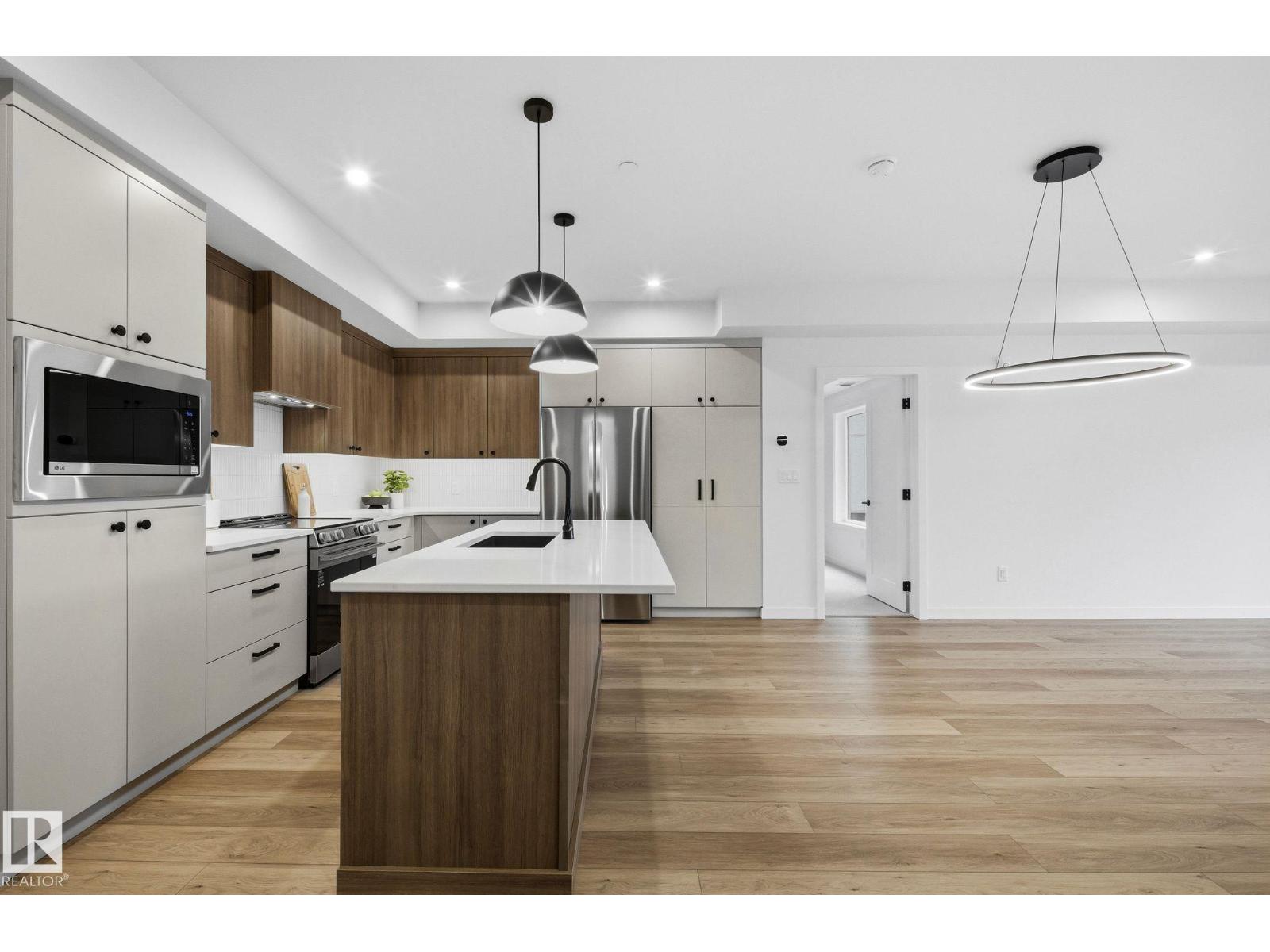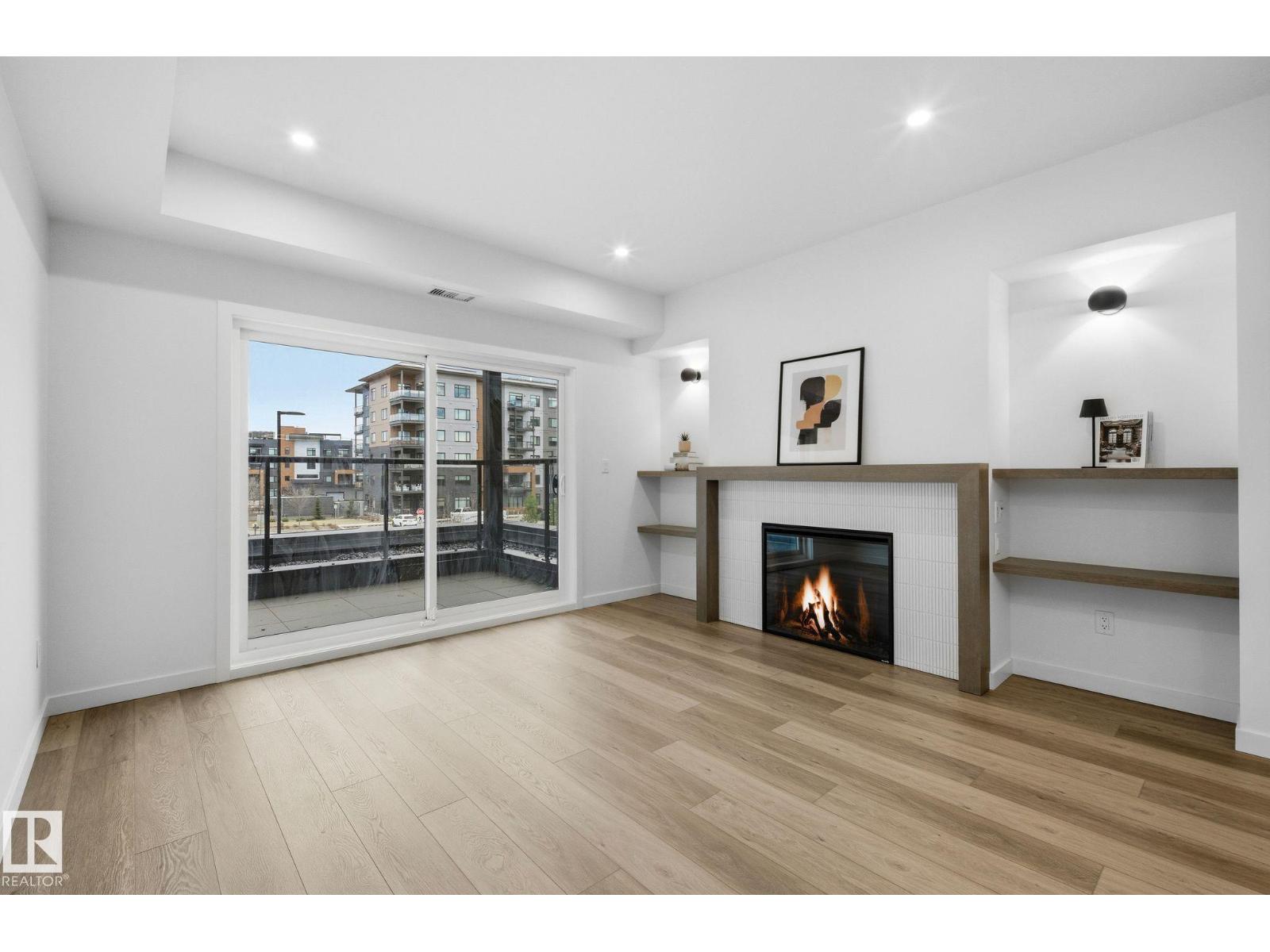 Located in the beautiful community of Magrath, near the scenic Whitemud Creek Ravine, this brand new 2 bed, 2 bath luxury condo offers the perfect blend of nature and convenience, just minutes from shopping, dining, schools, and quick access to Anthony Henday and Terwillegar Drive. This modern unit features a chef-inspired kitchen with white countertops, soft-close cabinetry, and a sleek black sink, along with luxury vinyl plank flooring throughout. Enjoy a bright open layout with an electric fireplace, built-in shelving, and access to your private balcony. The primary suite includes a walk-in closet and dual-sink ensuite with a spacious walk-in shower. Enjoy resort-style amenities including a fitness centre, lounge, games room, craft room, guest suite, and roof top patio, perfect for hosting. Condo fees include gas, water, building insurance and comes with underground heated parking. Experience luxury living with nature and miles of scenic walking trails right at your doorstep! (id:63190)