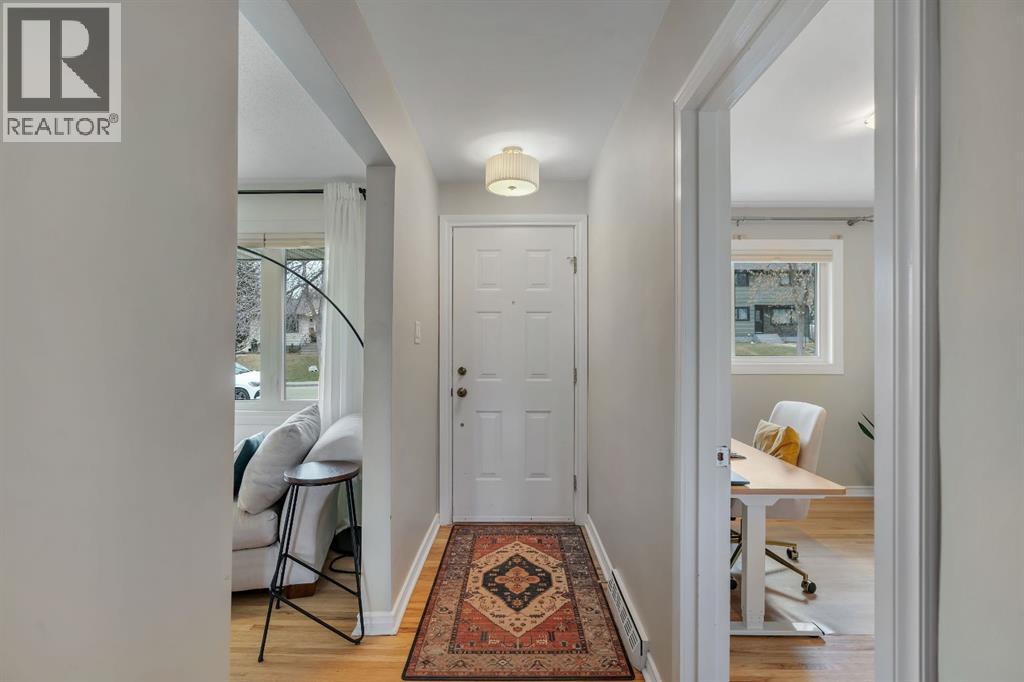Welcome to this updated bungalow in the heart of Highwood, ideally positioned on a generous 60 x 100 R-CG lot along a quiet, tree-lined street. Offering exceptional versatility, this property is equally suited for homeowners seeking space and comfort, or investors looking to capitalize on future redevelopment potential.The main floor showcases a bright, open-concept living and dining area, anchored by beautifully refinished hardwood floors that create a warm, cohesive feel throughout. The spacious kitchen is both practical and inviting, featuring solid wood cabinetry, a built-in pantry, wall oven, newer stainless steel refrigerator, and durable tile flooring that flows seamlessly into a sunny east-facing breakfast nook—the perfect spot to start your day.Three well-proportioned bedrooms provide flexibility for families, guests, or home office use, complemented by a centrally located, updated bathroom. Main floor laundry adds everyday convenience and can be shared with the lower level if desired.A separate entrance leads to the suited (illegal) basement, offering excellent income or multi-generational living potential. This level includes two additional bedrooms, a large family room, a newer full bathroom, and a tiled kitchen with its own eating nook, along with separate laundry access.Outside, the double detached garage is paired with a newly refinished concrete driveway, providing ample parking, storage, and protection through the winter months.Extensive updates enhance both comfort and peace of mind, including:newer windows and shingles, air conditioning, upgraded insulation and roof ventilation, exterior paint, upgraded electrical panel and outlets, new south-side fencing, new garage door springs, and a newly completed driveway.Located just minutes from McKnight Blvd, Deerfoot Trail, and John Laurie Blvd, and only blocks from Confederation Park, schools, shopping, golf, and playgrounds, this home combines everyday convenience with long-term upside in one of NW Calgary’s most established communities.A rare opportunity to own a move-in-ready home with income potential and future development value. (id:63190)