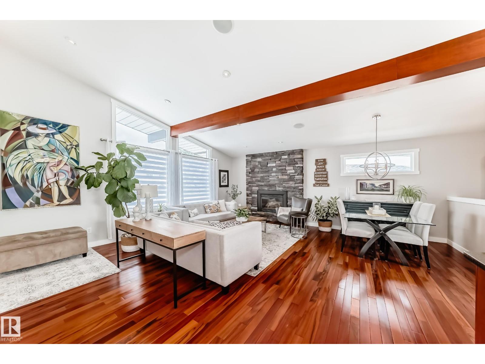 UPDATED VAULTED CEILING BUNGALOW IN RIDEAU PARK! This is the kind of property that instantly makes you feel at home. Vaulted open-beam ceilings and a bright, open-concept layout with gorgeous upgrades welcome you into the 1,224 ft2 bungalow. The main living space is beautifully inviting, with hardwood floors, gas fireplace with stone surround, and seamless flow between the living, dining, and island kitchen with stainless steel appliances. The primary bedroom was expanded to include a private 4-piece ensuite plus a walk-in closet. One additional bedroom and a full bath complete the main floor. The finished basement adds a large family room with second gas fireplace, a bedroom with egress window, a laundry/craft room with cabinetry and excellent storage. Recent updates include interior paint, kitchen backsplash, bathroom tile & quartz counters, and a deck with shade structure. Central AC. Large, private south yard and oversize double detached heated garage. Close to schools & shopping. Welcome home! (id:63190)