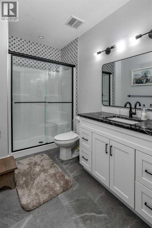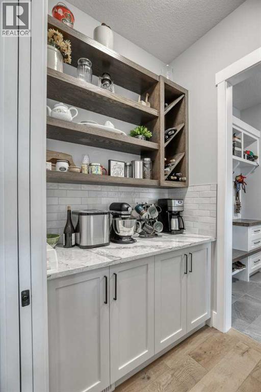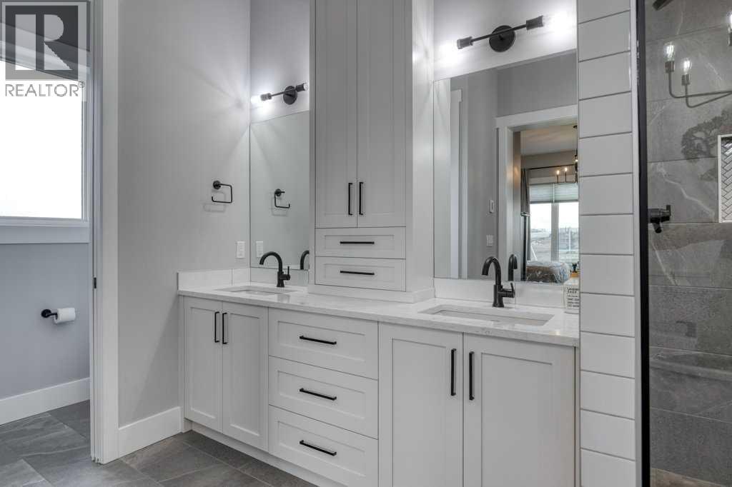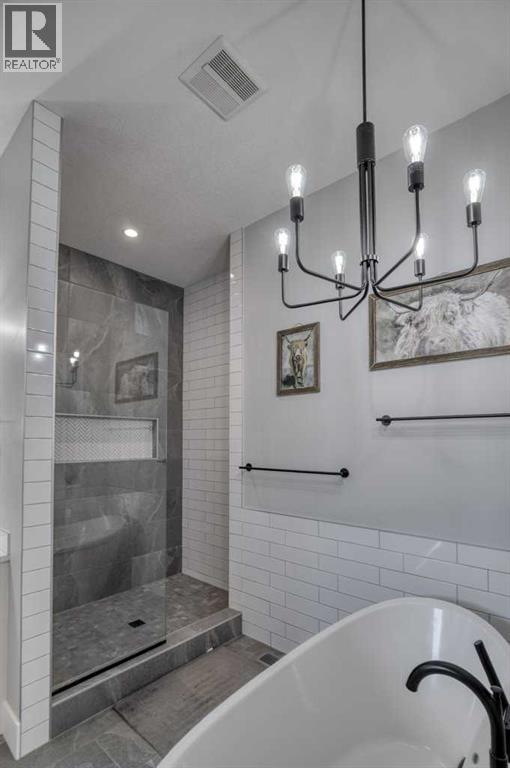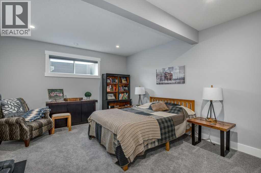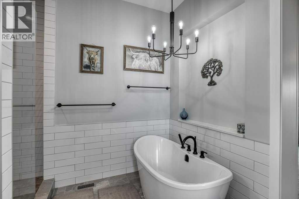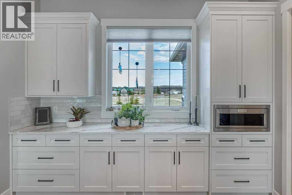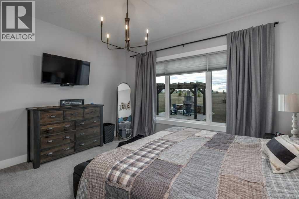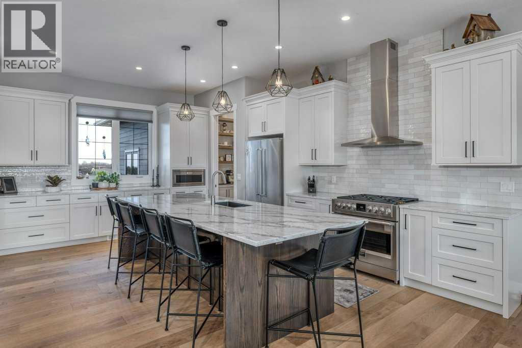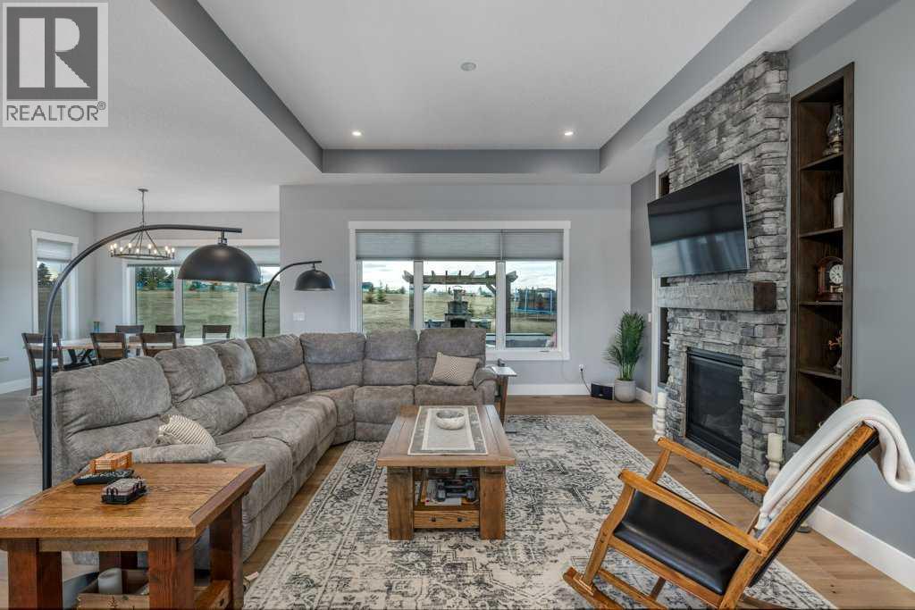 Set on 4.5 beautifully landscaped acres in the sought-after Bearspaw area, this gorgeous, fully developed 4-bedroom bungalow offers the perfect balance of luxury and unrestricted country living—ideally positioned between Calgary and Cochrane, with a desirable west-facing backyard. Built in 2023 and presented in immaculate, move-in ready condition, this property delivers a rare opportunity to enjoy rural freedom without sacrificing modern comfort. With no HOA or restrictive covenants, you can truly use the property as you wish. The parcel size and zoning allow for up to two horses, making it ideal for a lifestyle property.The main level features a stunning open-concept design with 10-foot ceilings, anchored by a showpiece kitchen with a massive quartz island, 6-burner gas cooktop with electric oven (dual fuel), KitchenAid fridge and dishwasher, and a slim-profile microwave. A butler’s pantry with custom millwork adds both function and elegance. The dining area flows into the inviting living room with a tray ceiling and gas fireplace, while engineered red oak hardwood flooring adds warmth throughout. The primary suite offers a spa-inspired ensuite with soaker tub, heated floors, and oversized glass shower. A second main-floor bedroom with a 3-piece bath is ideal for guests. The rear mudroom/laundry/bathroom combination is perfectly suited to acreage living. The covered rear deck features low-maintenance composite decking and Sun Coast retractable screens, creating a comfortable outdoor space to relax or entertain. Enjoy the Arctic Spa hot tub while taking in the peaceful surroundings. All west-facing windows are triple-glazed for maximum efficiency.The fully finished basement includes 9’ ceilings, a large recreation area, two oversized bedrooms, a 4-piece bathroom, and a versatile flex space ideal for a home office. Additional features include an oversized triple heated garage with 220V power, air conditioning, central vacuum, ICF foundation, and Rocky View Water Co -Op connection. Outdoors, the property is beautifully landscaped with over 50 evergreen trees, additional mature plantings, and decorative rock. A front patio with exposed aggregate and a pergola-covered entertaining area with outdoor fireplace create inviting outdoor living spaces, with exposed aggregate pathways extending from the home to the pergola. There is also a greenhouse with raised garden beds (or potential chicken coop) and a 20’ x 20’ storage shed for equipment and toys. Finished with low-maintenance composite siding and Malarkey high-impact shingles, this home offers durability and ease of ownership—combining the space and freedom of country living with the convenience of Bearspaw and quick access to Calgary. (id:63190)