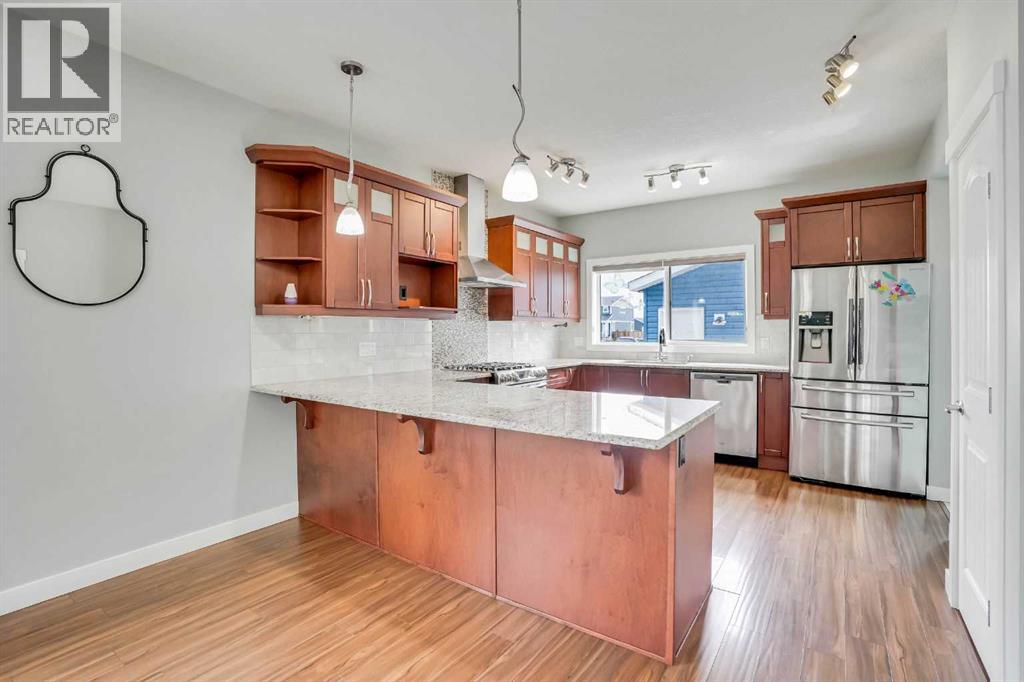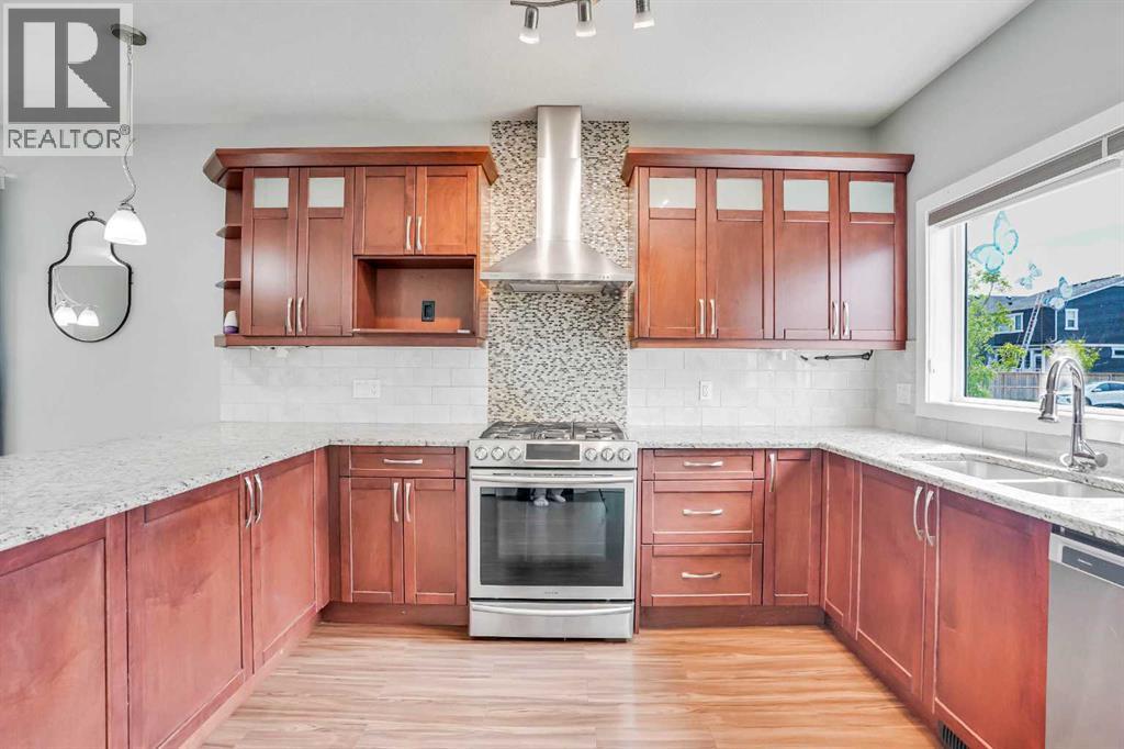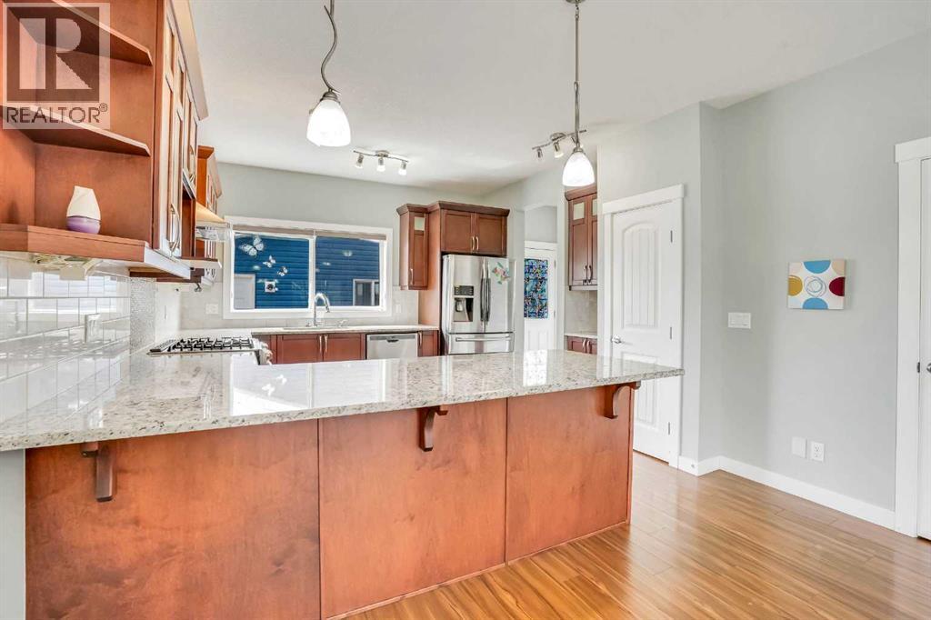 LOCATION!!! LOCATION!!!! Location!!! Welcome to Meticulously kept 2015 Built EAST FACING 1,865 Sq Ft SINGLE FAMILY DETACHED HOME including OVERSIZED DOUBLE Detached Garage with Unfinished Basement in a most Desirable community of REDSTONE On A Corner Lot. The CURRENT ORIGINAL OWNERS had upgraded the home extensively like Laminate/Tile Flooring, 9’ Main ceiling, Stainless Steel Appliances, Maple Cabinets, Granite Countertops everywhere, Railing at Stairs, Central Air Conditioning, Front Porch, & Rear Deck with Concrete Patio. MAIN FLOOR invites you with an OPEN CONCEPT FLOOR PLAN having decent front foyer followed by Spacious Living Room, MODERN STYLE UPGRADED Kitchen with Large Dining space to entertain large family, Pantry room and 3pc FULL WASHROOM finishes the level. The KITCHEN IS HIGHLY UPDATED WITH FULL HEIGHT CABINETS, CHIMNEY HOOD FAN, GAS STOVE, BUILT IN MICROWAVE, elegant backsplash and large bright window. The UPSTAIRS you have a Large Master Bedroom with 3pc Ensuite & walk in closet, Other 3 Good size Bedrooms with closets, Separate Laundry Room. The HUGE UNFINISHED BASEMENT with Egress Windows is waiting for your creative ideas. THE WEST FACING BACKYARD with Deck and Concrete Patio facilitates the low maintenance landscaping makes it ideal for summer gatherings. Plus Having Sprinklers for Grass. OVERSIZED DOUBLE DETACHED GARAGE with a paved back alley makes it ideal for your convenient lifestyle. The lovely Home is Located on Quiet Street, while Few minutes walk/drive to TRANSIT, PARK, PLAYGROUND, Shopping Plaza -Sanja Punjab & Chalo Fresco & few Mins drive to YYC, major highways, Cross iron Mall. Ideal for Living or Investment purposes to increase your rental portfolio. Don't Miss 3D Tour. Must Buy. Call Now your favourite realtor to schedule a viewing. (id:63190)