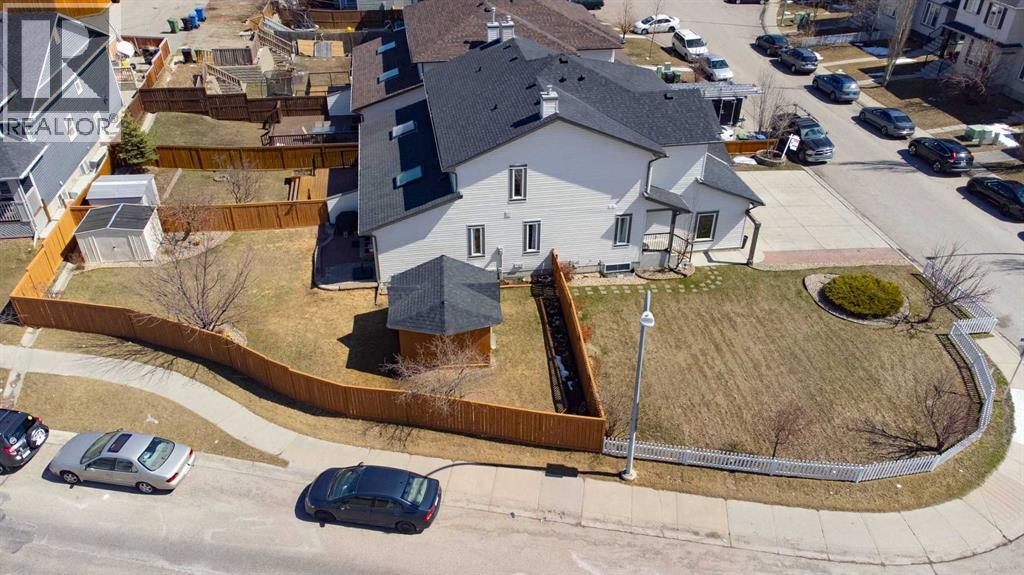 Welcome to this upgraded semi-detached home on an oversized corner lot. Step inside to a welcoming foyer and follow the hall past the powder room into the open-concept living space. The kitchen features stainless steel appliances, plenty of cabinet and counter space, and a walk-through pantry leading to the garage. The adjacent dining room flows into the living room at the back of the home, where a gas fireplace is perfect for cool winter nights. A skylight fills the kitchen, dining, and living areas with natural light. Sliding patio doors open to the oversized backyard, complete with a patio, green space, flower garden, trees, a gazebo, and a moveable shed. This space is a bonus for a family with children. The main floor laundry is also conveniently located on this level. Upstairs, the primary retreat offers a 4-piece ensuite, a walk-in closet with a window, and large windows that make for a bright and comfortable bedroom. Two additional bedrooms and a 4-piece bathroom complete the upper floor. The basement was developed in 2025 and includes a large family room with egress windows, a 2-piece bathroom, closet space, two storage areas, and a utility room. The single attached garage is oversized and large enough to accommodate a full-size truck. This corner lot offers space that is hard to find in a semi-detached property, and the location checks all the boxes, close to schools, parks, playgrounds, and walking paths. Come see this home with pride of ownership throughout. (id:63190)