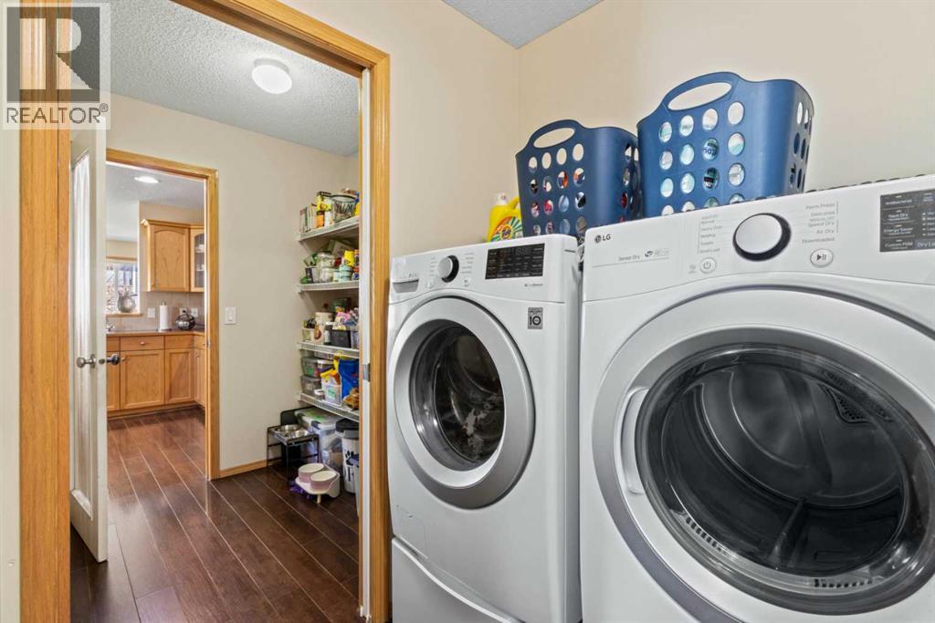 The laundry room is located beyond the entrance from the garage in its own area. The hall continues to the walk-through pantry and to the kitchen