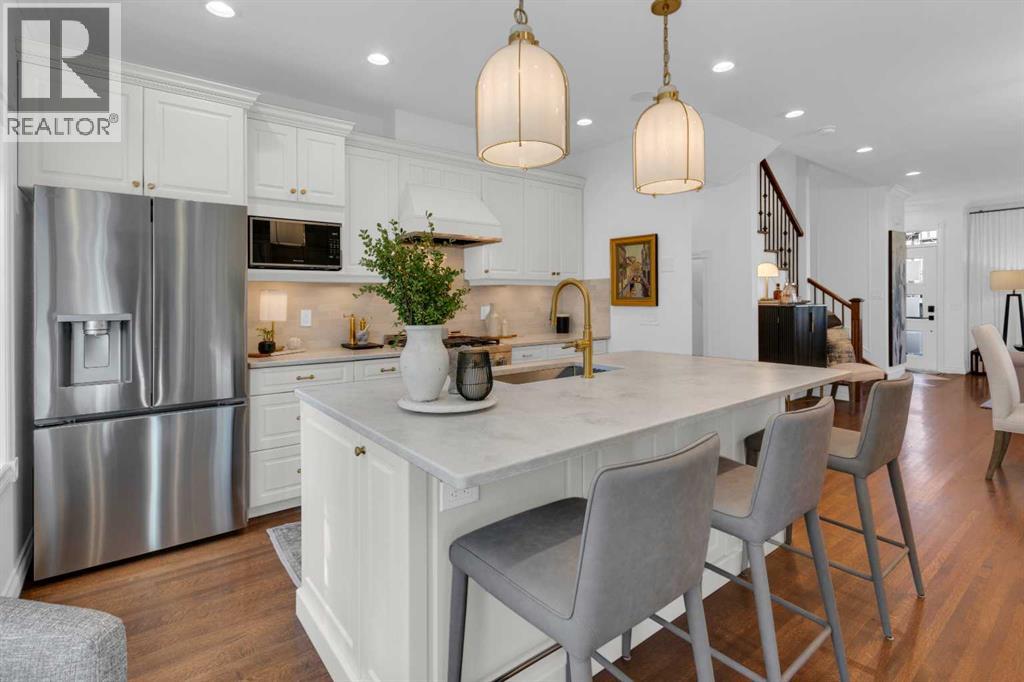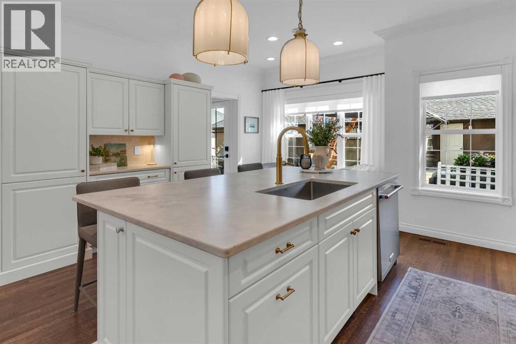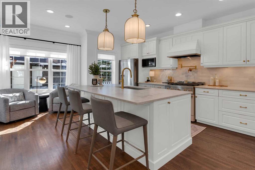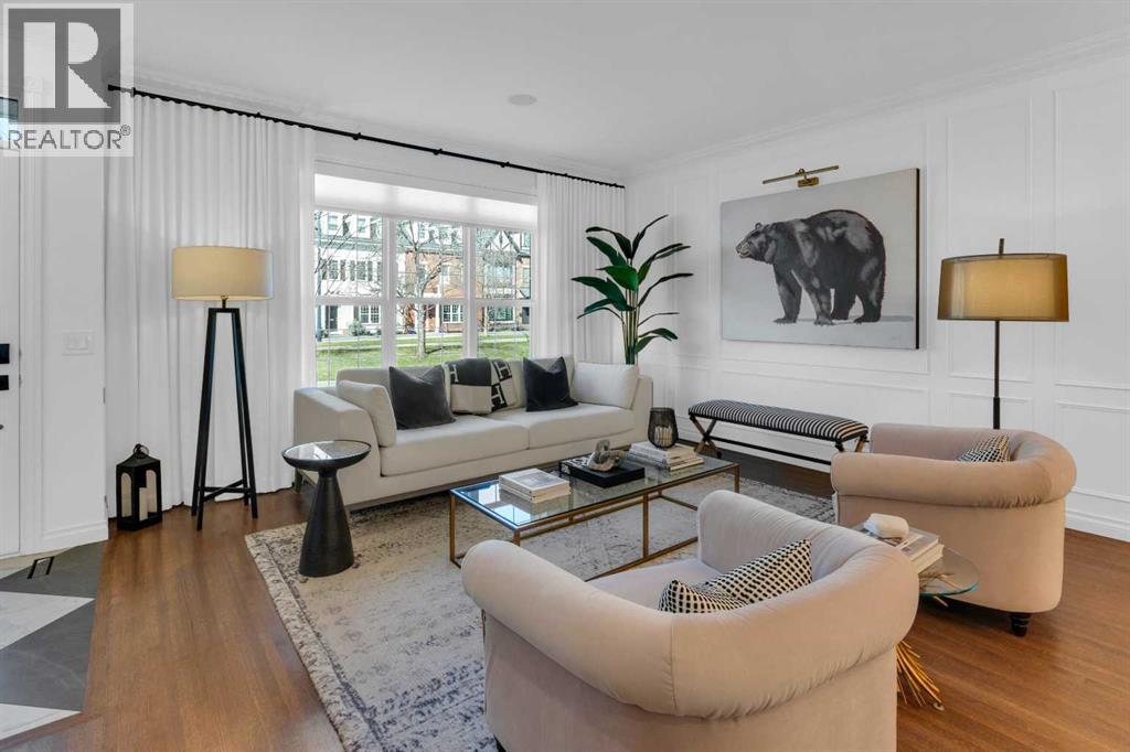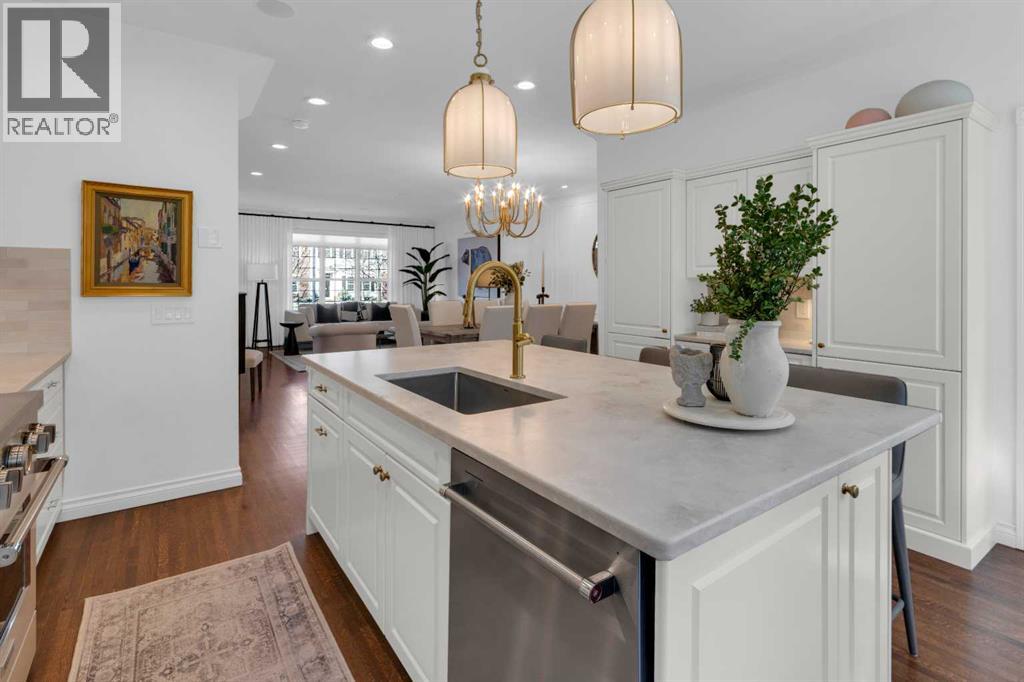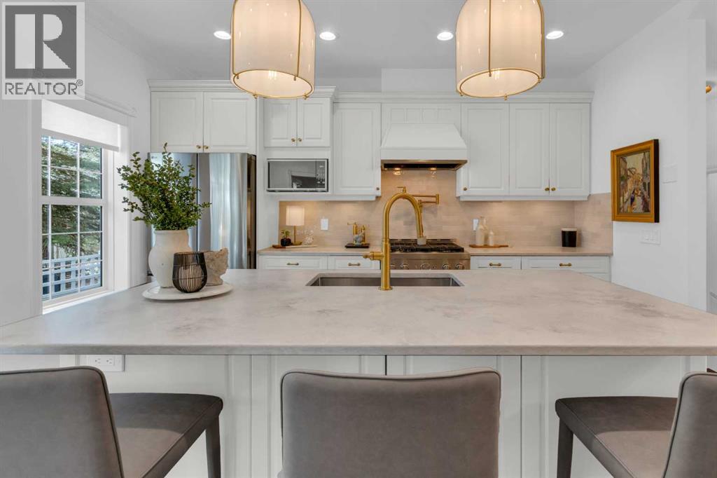 *OPEN HOUSE SATURDAY APRIL 25, 1:30pm-3:30pm* Welcome to this beautifully renovated 2,396 sq ft townhouse on one of Calgary’s iconic, tree-lined boulevards, complete with a central park and walkway. This impressive 3-storey home was extensively renovated in mid-2024. The French-inspired, elegant design reflects a focus on high quality, function, and refined detail. The main floor was reimagined to improve flow, including the relocation of the powder room and reconfiguration of walls. New site-finished hardwood with a modern matte finish was seamlessly integrated with the existing flooring. The stylish foyer features black and white harlequin tile, leading into an open-concept, light-filled living and dining area overlooking the boulevard. Updated lighting throughout the main floor elevates the space, while custom wall paneling carries throughout, adding architectural detail. The kitchen is a standout, with custom cabinetry, a large island, stone countertops and backsplash, and new stainless-steel appliances. The main floor is completed by a new powder room and a well-designed mudroom with plenty of storage, along with access to the private patio and insulated, drywalled double detached garage. Upstairs, the second level offers a large, warm, and inviting family room with a redesigned fireplace surround and new insert, a bright office with built-ins, a spacious bedroom, full bathroom, and a well-appointed laundry room with sink and new cabinetry, countertop, and flooring. The third floor is dedicated to the primary suite, a serene retreat with vaulted ceilings and dormer windows, finished in beautiful, light, neutral tones, along with two walk-in closets and a spacious, fully renovated ensuite featuring a glass shower, freestanding tub, and designer finishes, with French-inspired design details continuing throughout.The basement was fully developed from the studs into a warm, stylish additional living space, including a family room with gym (or office area), an addit ional bedroom, and a full bathroom with glass walk-in shower. Additional upgrades include a new furnace, humidifier, hot water tank, central air conditioning, updated cabinetry, flooring throughout, new appliances, window coverings, and more. The home was renovated with long-term living in mind, with consistent attention to quality and detail throughout all levels. Enjoy maintenance-free living with a lock-and-go lifestyle in one of Calgary’s most walkable neighborhoods, just steps from Safeway, cafés, restaurants, wine bars, boutiques, and fitness studios in sought-after Marda Loop. (id:63190)