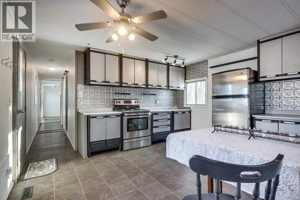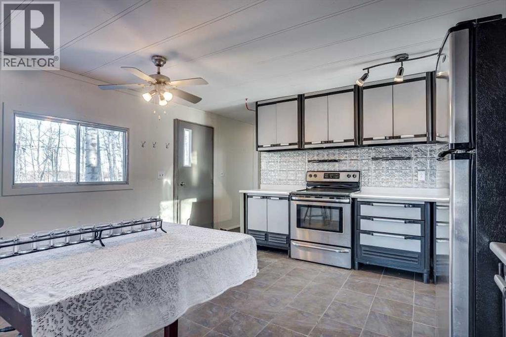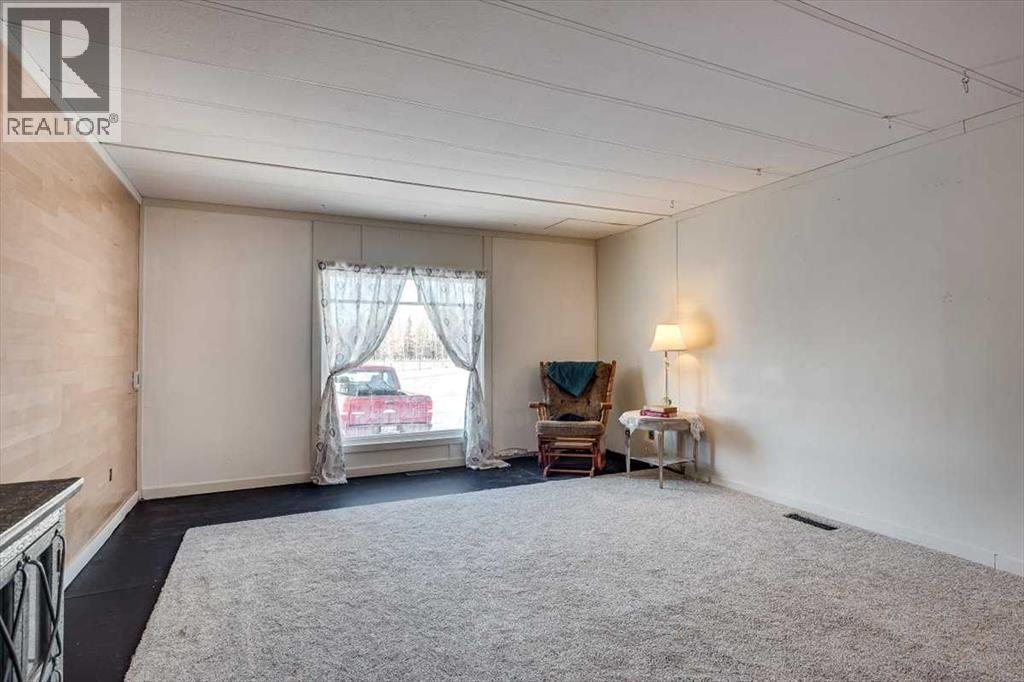 Affordable acreage living with stunning mountain views in James River, Alberta! Set on 7.66 fully fenced acres, this treed property with open pasture offers privacy, functionality, and endless opportunity while remaining conveniently located north of Sundre - just 45 minutes to Red Deer and 75 minutes to Calgary, with easy highway access.The 1974 mobile home features 2 bedrooms and a 3-piece bathroom, an open-concept kitchen and dining area, and a large living room with a west-facing window that captures beautiful mountain views and natural light. Mature trees surrounding the home provide excellent privacy, while the open pasture offers potential for livestock, extra yard space, or a home based business. Serviced by a drilled well and propane tank. New furnace installed in 2025. The detached 24x22 garage with metal roof includes an additional 20x12 workshop/storage addition at the rear—ideal for projects, tools, or equipment.Zoning allows for minor agricultural pursuits making this an excellent option for those seeking a hobby acreage. An affordable way to get onto an acreage - this property offers space, views, and opportunity in a desirable rural setting. The land is predominantly flat with multiple potential building sites and flexibility for future development. The existing mobile offers an option to live in the mobile while you build your dream home or replace it with a new mobile in the future! (id:63190)