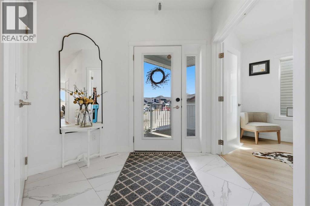 Welcome home to this beautifully designed property in the inviting community of Carstairs. Thoughtfully laid out with an open-concept design, this home offers the perfect balance of everyday comfort and effortless entertaining. Step inside to a warm and welcoming main floor, where a versatile den gives you the flexibility to create a home office, formal dining space, or additional sitting area to suit your lifestyle. The spacious kitchen is truly the heart of the home, featuring a large island, and stainless steel appliances—perfect for hosting family and friends. The adjoining living room is bright and inviting, complete with a cozy gas fireplace. Upstairs, you’ll find 4 generous bedrooms, including a spacious primary retreat with a walk-in closet and a 5-piece ensuite designed for relaxing at the end of the day. A cozy bonus room offers the ideal space for kids, movie nights, or a second living area, and the convenient upper-floor laundry adds to the home’s functionality. The basement, with its separate exterior entry and large egress windows, is ready for your vision—whether you’re looking to expand your living space or create something entirely new. Located in the vibrant community of Carstairs, you’ll enjoy a quieter pace of life while still being close to schools, parks, and everyday amenities. A great opportunity to own a well-appointed home in a growing community. (id:63190)
