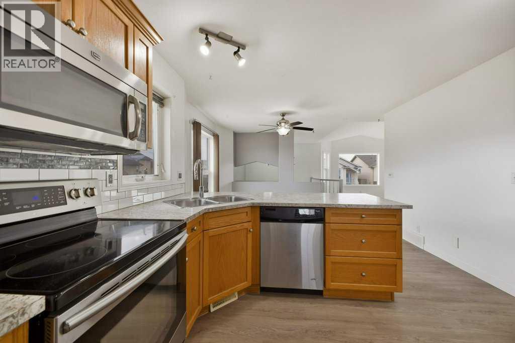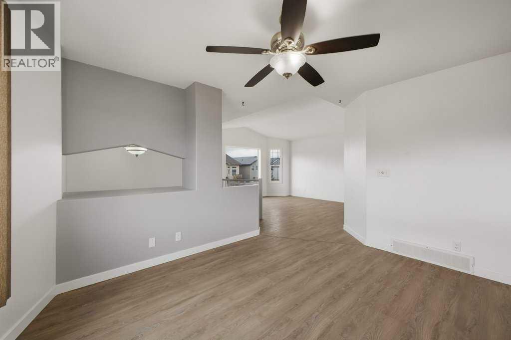 Welcome to #32 Hunter Road, Sylvan Lake! A 4-bedroom, 2-bathroom bi-level with many recent updates, and designed for comfort, style, and functionality. Nestled in a family-friendly neighborhood, this fully developed gem boasts an array of modern touches that are sure to impress. The main floor living room boasts vaulted ceilings and an open floor plan to the kitchen and dining room, all with new vinyl plank flooring - adding a touch of elegance and making it easy to maintain. Beside the kitchen is the primary bedroom with access to the main floor 4pc bathroom, the 2nd bedroom, and just off the kitchen (with newly finished counter tops) is access out to the the covered rear deck and yard! Venture downstairs to discover a cozy finished basement featuring plush new carpeting that adds warmth and charm. This versatile space can easily serve as a family room, play area, or home gym—whatever suits your lifestyle! It also features a dry-bar area, adding to the entertaining space! 2 more bedrooms, another 4 piece bathroom, and the utility/laundry room complete the lower level. Additional updates include: New shingles, some newer windows, fresh paint throughout, new tile surround and flooring in bathroom, and a privacy fence built in the yard!Out back features a covered rear deck with steps down to the yard with rear lane access, RV parking, and a large shed for yard tools and bikes! There is also no neighbors directly behind, which adds to the properties privacy. Don't miss out on the opportunity to make this fantastic property your new home! (id:63190)
