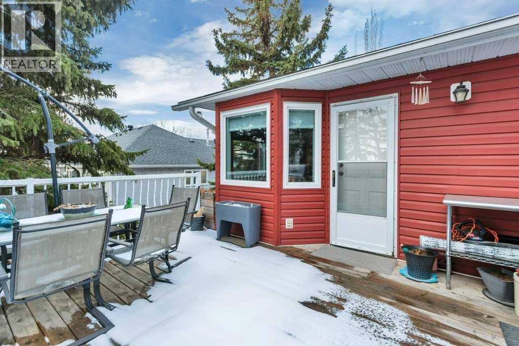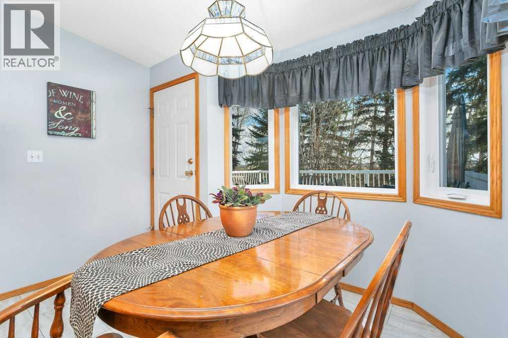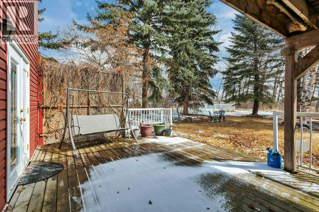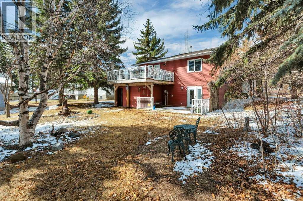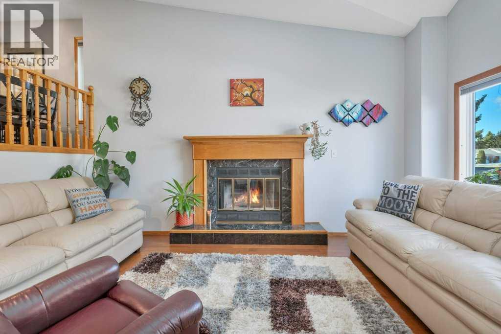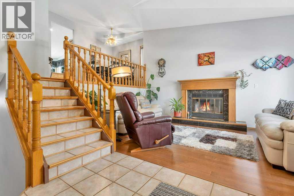 Welcome to English Estates, where oversized lots and quiet streets create one of Lacombe’s most coveted neighborhoods. This beautifully cared for bi-level sits on an impressive 1/3 of an acre lot and delivers the perfect blend of comfort and privacy. With four bedrooms and three bathrooms there is plenty of room for family life, guests, or a growing household. The main level showcases hardwood and tile flooring, a spacious kitchen with eating bar, a large formal dining area overlooking the sunken living room with a wood-burning fireplace. Three generous bedrooms and two bathrooms complete the upper level, including a comfortable primary suite with a three piece ensuite and walk-in closet. The developed walkout basement offers a huge family room, fourth bedroom, three piece bathroom, storage, and laundry, (with potential for a fifth bedroom with minimal effort.) Step outside the garden doors from the family room into the secluded backyard that feels like your own private retreat. Surrounded by mature trees and lush greenery, it’s the kind of outdoor space that’s hard to find and even harder to leave. Updates which bring peace of mind and a refreshed look include new pex water lines (Dec 2025), shingles (2019), siding (2019), and windows. Practical perks include RV parking, an attached double garage, enclosed under deck storage and a layout designed for real life. This is a home that’s been truly loved — inside and out — and it shows. (id:63190)