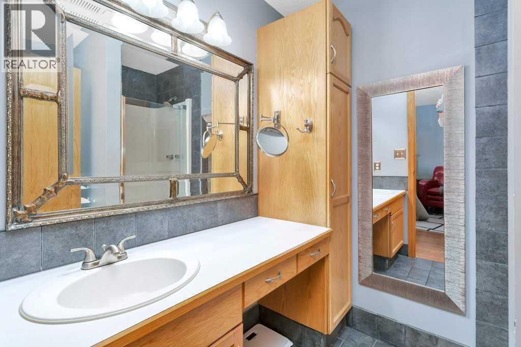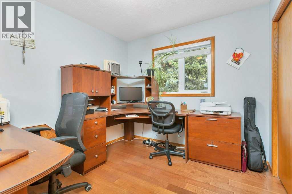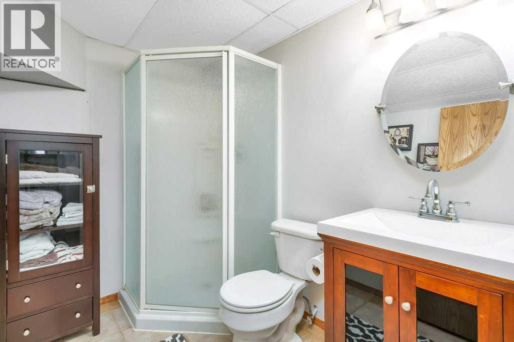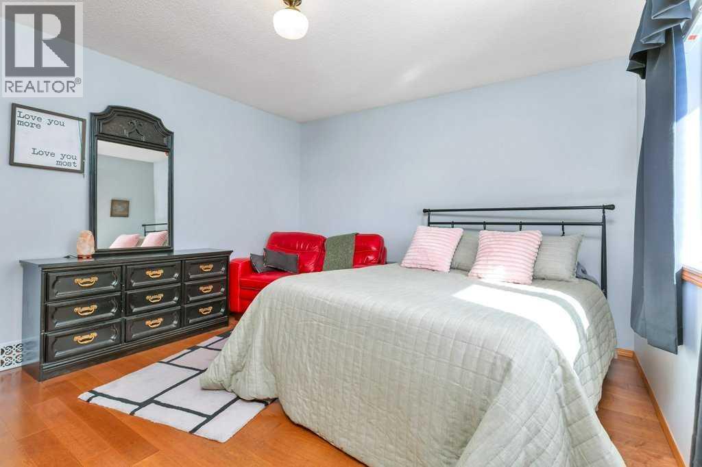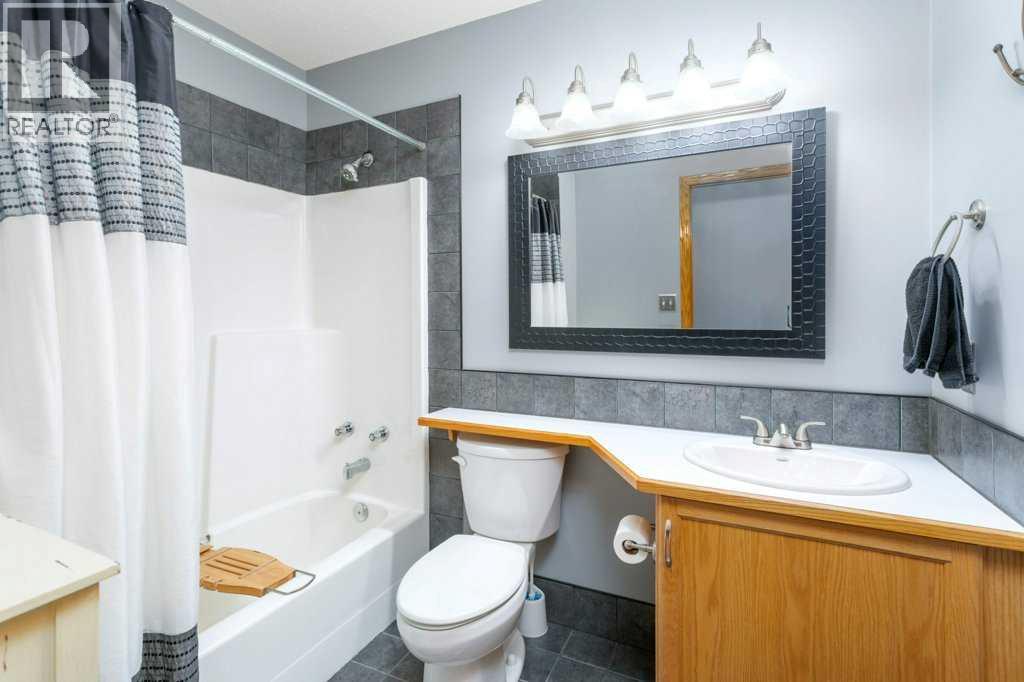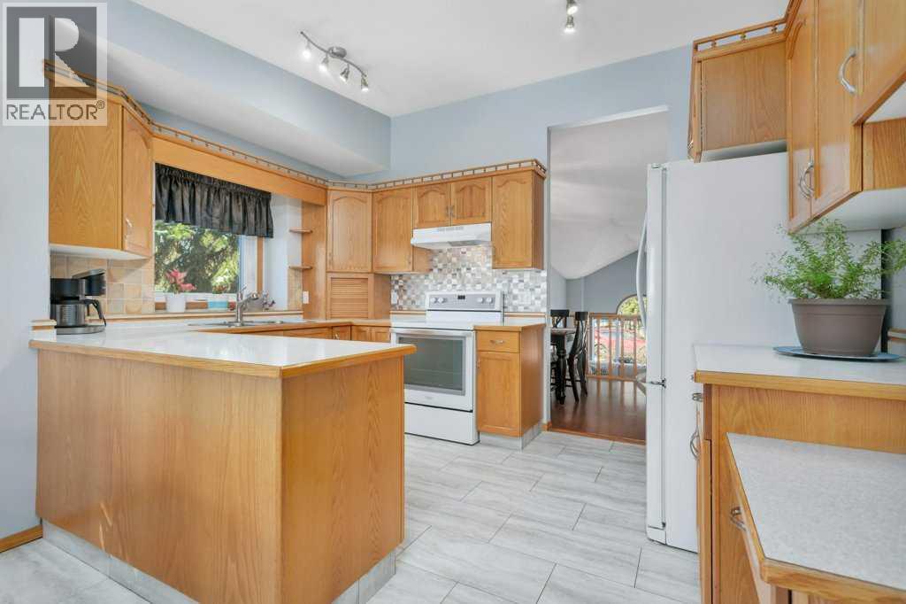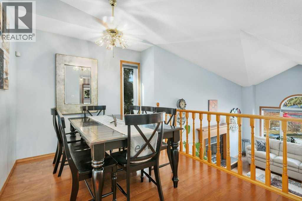 Welcome to English Estates, where oversized lots and quiet streets create one of Lacombe’s most coveted neighborhoods. This beautifully cared for bi-level sits on an impressive 1/3 of an acre lot and delivers the perfect blend of comfort and privacy. With four bedrooms and three bathrooms there is plenty of room for family life, guests, or a growing household. The main level showcases hardwood and tile flooring, a spacious kitchen with eating bar, a large formal dining area overlooking the sunken living room with a wood-burning fireplace. Three generous bedrooms and two bathrooms complete the upper level, including a comfortable primary suite with a three piece ensuite and walk-in closet. The developed walkout basement offers a huge family room, fourth bedroom, three piece bathroom, storage, and laundry, (with potential for a fifth bedroom with minimal effort.) Step outside the garden doors from the family room into the secluded backyard that feels like your own private retreat. Surrounded by mature trees and lush greenery, it’s the kind of outdoor space that’s hard to find and even harder to leave. Updates which bring peace of mind and a refreshed look include new pex water lines (Dec 2025), shingles (2019), siding (2019), and windows. Practical perks include RV parking, an attached double garage, enclosed under deck storage and a layout designed for real life. This is a home that’s been truly loved — inside and out — and it shows. (id:63190)
