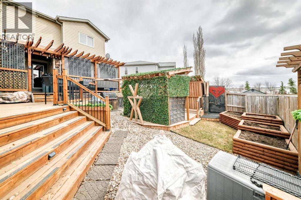 Welcome to this exceptionally well maintained 3 bedroom, 4 bathroom half duplex in the desirable community of Johnstone Park. Tucked away on a quiet close with no condo fees, this home offers a great mix of comfort, function, and outdoor living.The bright open concept main floor is filled with natural light and designed for everyday living and entertaining. The kitchen features maple cabinetry, a large island with sink, plenty of counter space, and a corner pantry. The dining area leads directly to a partially covered deck, making it easy to enjoy summer BBQs. The living room is highlighted by oversized windows overlooking the beautifully landscaped backyard. Stay comfortable year round with the added bonus of central air conditioning.Upstairs you will find two spacious bedrooms, each complete with their own 4 piece ensuite and walk in closet. Convenient upper floor laundry adds to the thoughtful layout.The fully finished basement offers even more space with a large family room featuring a wet bar and built in cabinetry, a third bedroom, and an additional 4 piece bathroom. There is also a second laundry setup, with the current lower level laundry room offering excellent flexibility as a craft room, storage space, or additional utility area.Step outside to your own private backyard oasis, fully fenced with a patio and partially covered deck, perfect for relaxing evenings or entertaining guests. The property also includes a single attached garage for added convenience.A move in ready home in a fantastic location, offering space, comfort, and a beautifully maintained outdoor retreat. (id:63190)