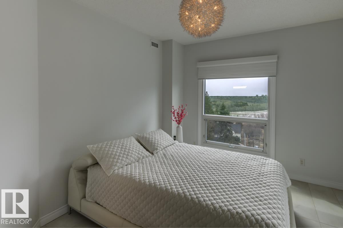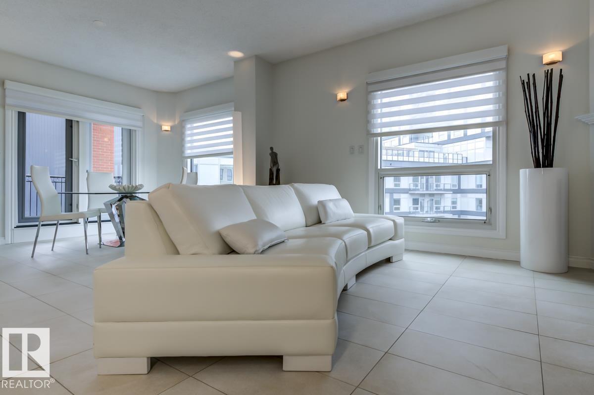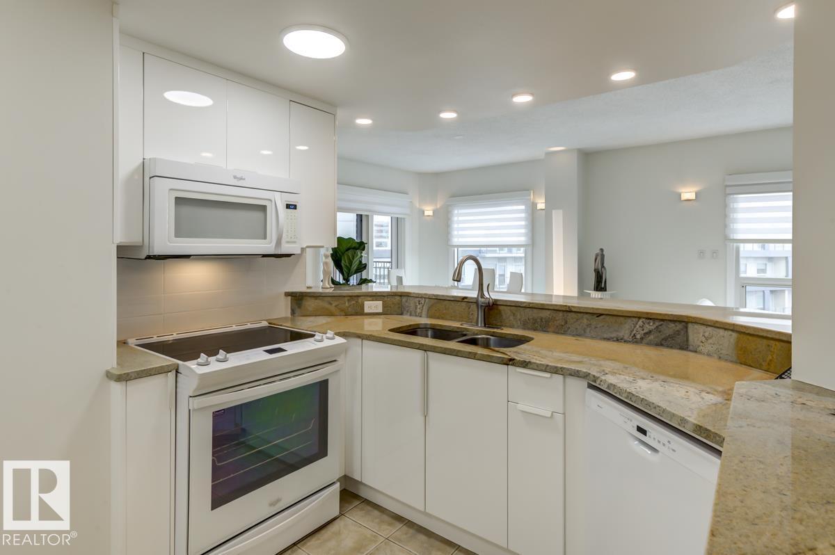 Welcome to this Executive, Professionally Renovated unit where 9-ft ceilings and Gleaming tile floors set the tone. Open-concept living boasts sweeping city and river valley views with a cozy gas fireplace rounding it out. The kitchen features high-gloss lacquer cabinetry, granite counters, and quality appliances. Both bedrooms offer walk-in closets, and the in-suite laundry adds everyday convenience. Step outside on your patio and soak in the views. Building amenities include a glass elevator, full gym, and an outdoor social patio designed for those who appreciate a refined urban lifestyle. Just steps to top dining, art galleries, and river valley trails. Enjoy it’s Style, Functionality, and the Premium Location. (id:63190)