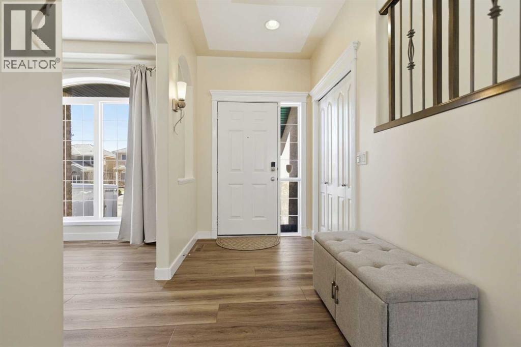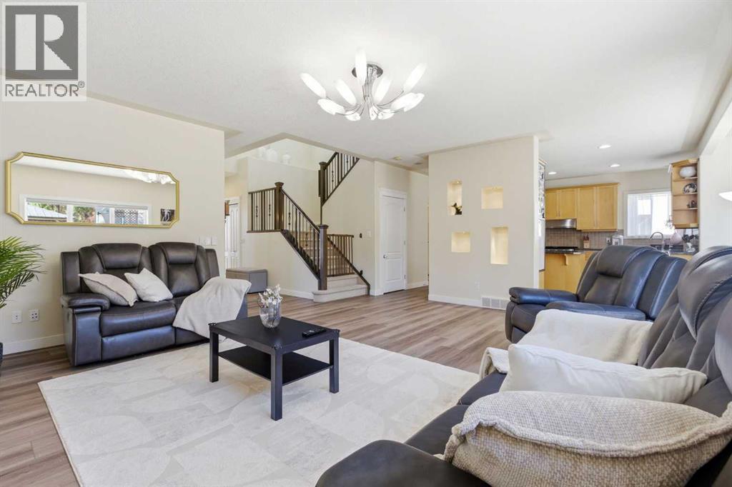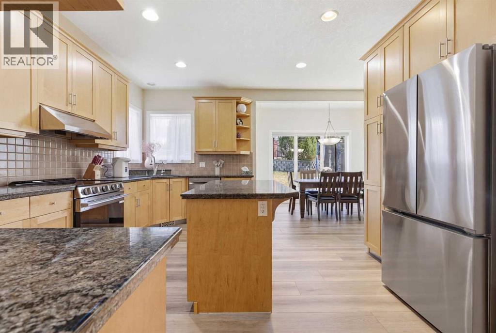 Located on a quiet street in the highly sought-after community of Royal Oak, this impressive two-story executive home Total living space of 3289 sqr.ft is must-see.From the moment you enter, you’ll notice the quality finishes throughout, including 9’ knockdown ceilings, rounded corners, brand new flooring, fresh paint, new appliances, and a striking combination of wrought iron and wood railings. The main floor features a bright, open-concept layout filled with natural light. A spacious front dining room offers flexibility and can easily function as a home office.The heart of the home is the expansive kitchen, complete with stainless steel appliances, granite countertops, extended cabinetry, and abundant workspace—perfect for both everyday living and entertaining. Adjacent is a generous breakfast nook and a welcoming family room with a cozy gas fireplace.A convenient 2-piece bath and a well-equipped laundry room with sink complete the main level.Upstairs, you’ll find a massive primary retreat with a private ensuite and plenty of space to unwind. Two additional bedrooms and a full 4-piece bathroom provide ample room for family or guests.The fully developed basement expands your living space with a large entertainment area, fourth bedroom, full bathroom, and a built-in home theatre system—ideal for movie nights.Step outside to enjoy the oversized composite deck, perfect for outdoor gatherings.Ideally located close to the new recreation Centre, schools, shopping, transit, and a wide range of amenities—this home offers exceptional value in a prime location. RMS MEASUREMENT BY FOOTHILLS MEDIA (id:63190)