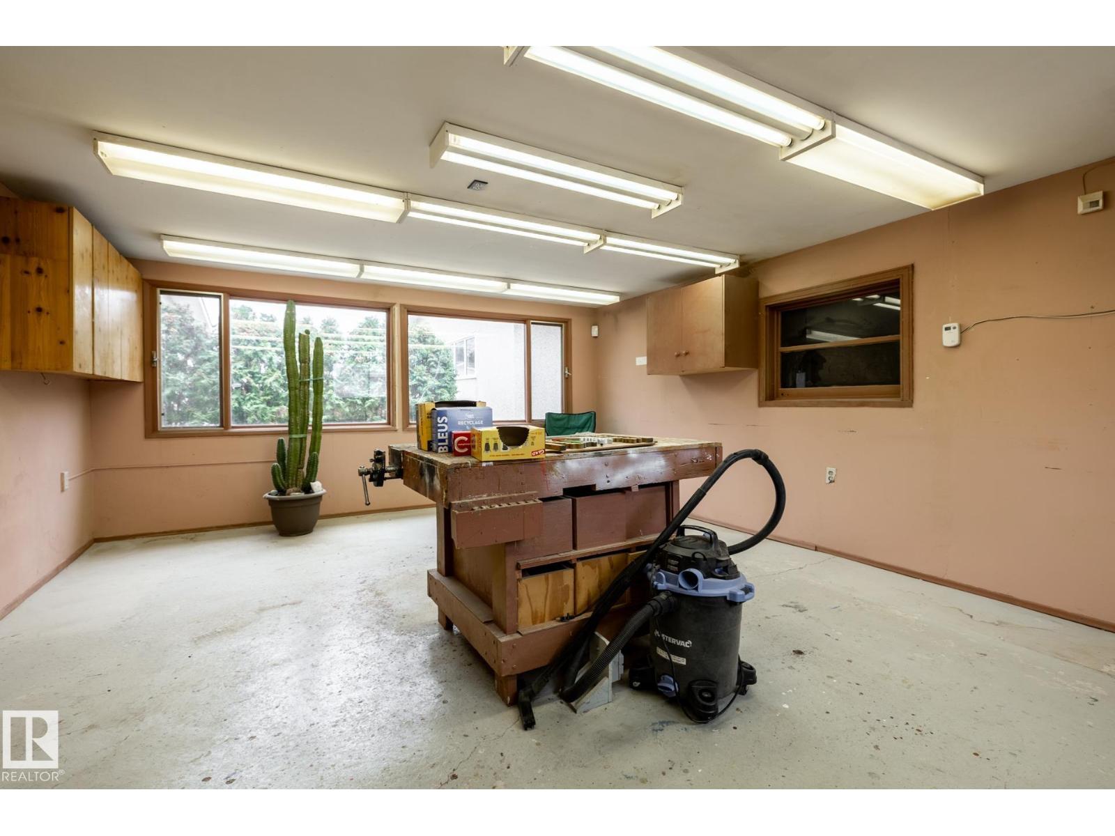 Welcome to this beautifully maintained open-beam bungalow in the heart of Kenilworth, perfectly situated on a large lot in a premium location close to parks and schools. Lovingly cared for by the same family since 1970, this home showcases true pride of ownership throughout. Inside, you’ll find stunning millwork, a cozy corner fireplace, and thoughtful upgrades that enhance both comfort and style while preserving the home’s character. Recent improvements include new shingles (2025), vinyl windows, an irrigation system (2024), and a new maintenance-free deck (2024) in the sunny west-facing backyard—perfect for relaxing or entertaining. The oversized 20’ x 38’ garage is a standout feature, complete with a separate, heated workshop or studio space—ideal for hobbyists or additional storage. The property also offers a large concrete RV pad for added convenience. This is a rare opportunity to own a solid, upgraded home in one of Edmonton’s most desirable mature communities. (id:63190)