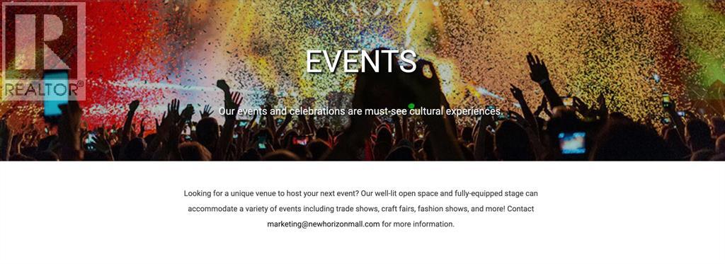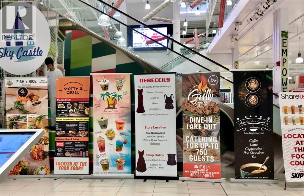 Lease it (MLS: A2122737) or Buy it (MLS: A2184299)!A rare opportunity to lease or purchase a Food Bar Unit (R03) at New Horizon Mall, just minutes away from Calgary and right beside CrossIron Mills.Highlights:Prime Location: Only 5 minutes’ drive from Calgary, New Horizon Mall is an architectural landmark near Balzac.Unit Size: 126 sq.ft., located immediately in front of the elevator on the 2nd floor food court – maximum visibility and foot traffic.Mall Features: Over 500 international vendors offering retail, restaurants, and services. Anchor tenants such as The Best Shop drive strong traffic.Entertainment Hub: Directly beside Sky Castle, a 34,000 sq.ft. family entertainment center that attracts Calgary families year-round.Convenience: Underground parking available for customers, especially during winter.Perfect Use:Snacks and drinks without heavy cooking, such as bubble tea, milk tea, coffee, smoothies, fruit drinks, ice cream, cupcakes, biscuits, or similar concepts.Interested:Don’t miss this rare chance to establish your business in the heart of New Horizon Mall’s food court! (id:63190)