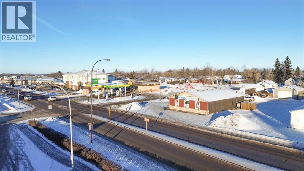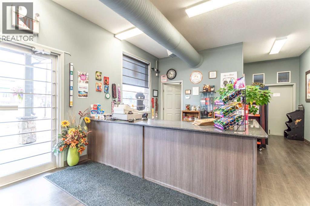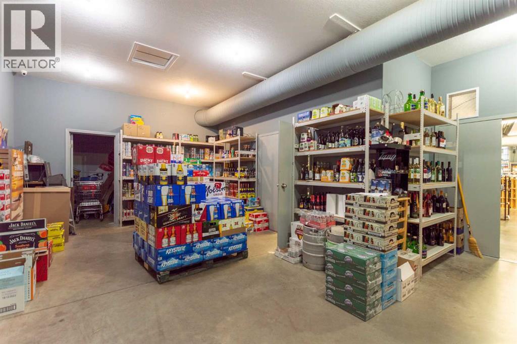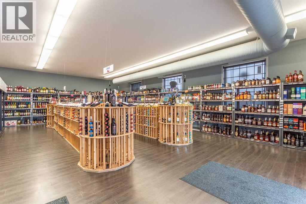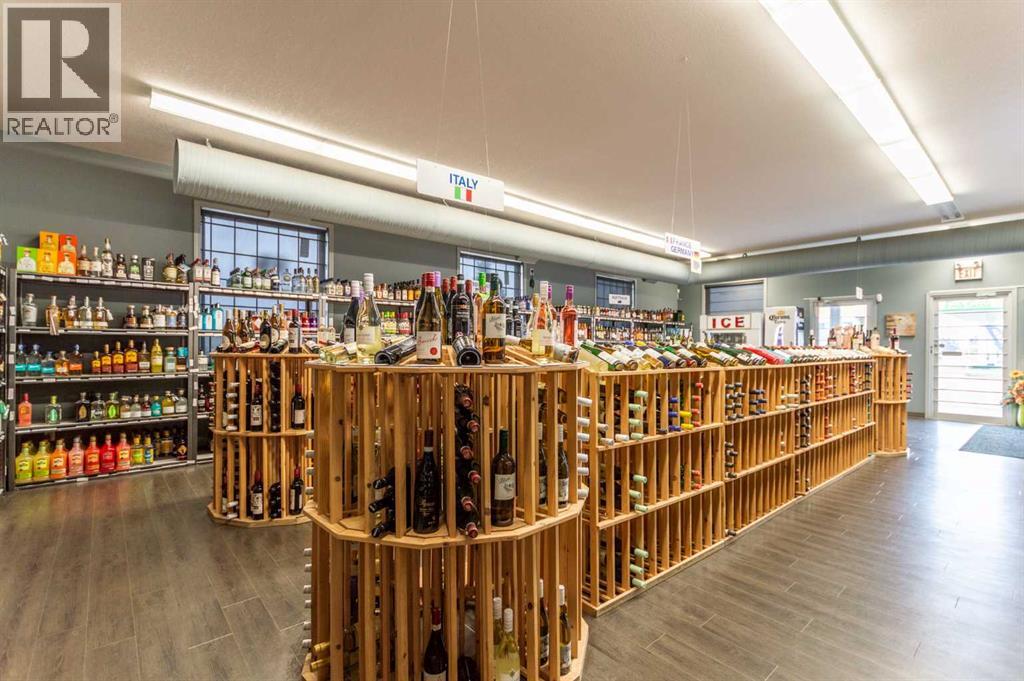 This is an awesome business opportunity for investors or entrepreneurs, right in the bustling town of Stettler, AB. This successful liquor store is complete with the building on a 100' X 150' lot, so you don’t have to rent. The building was constructed in 2014, and you won’t find a much better location. Situated right on the busy hiway 12, this lot has high exposure, both to local traffic and people just passing through. There is a large store front, with bright overhead lighting and durable flooring. The shelving is included and the custom-built wine shelving is a brilliant addition. The front desk is L-shaped and has plenty of display space on the counter and cabinets underneath. The walk-in cooler measures 23' x 20' There is an office directly behind the front desk, which also has a long work surface and cabinets. The back storage room has space for shelving and pallets. The washroom and mechanical room are accessed here as well as a door into the cooler making restocking easy. There are double doors opening up to the back of the lot for incoming shipments. There is also a security system, cash register, and everything you need to carry on with business. The exterior is attractive with a covered entry, rock along the bottom, and a sidewalk along the front. There is plenty of paved parking and there are access points off of hiway 12 and 60th street. There is a 14' x 32' garage for storage and there is a spot for a dumpster (fenced in on 3 sides). This business has been successful for many years and has a consistent customer base. (id:63190)