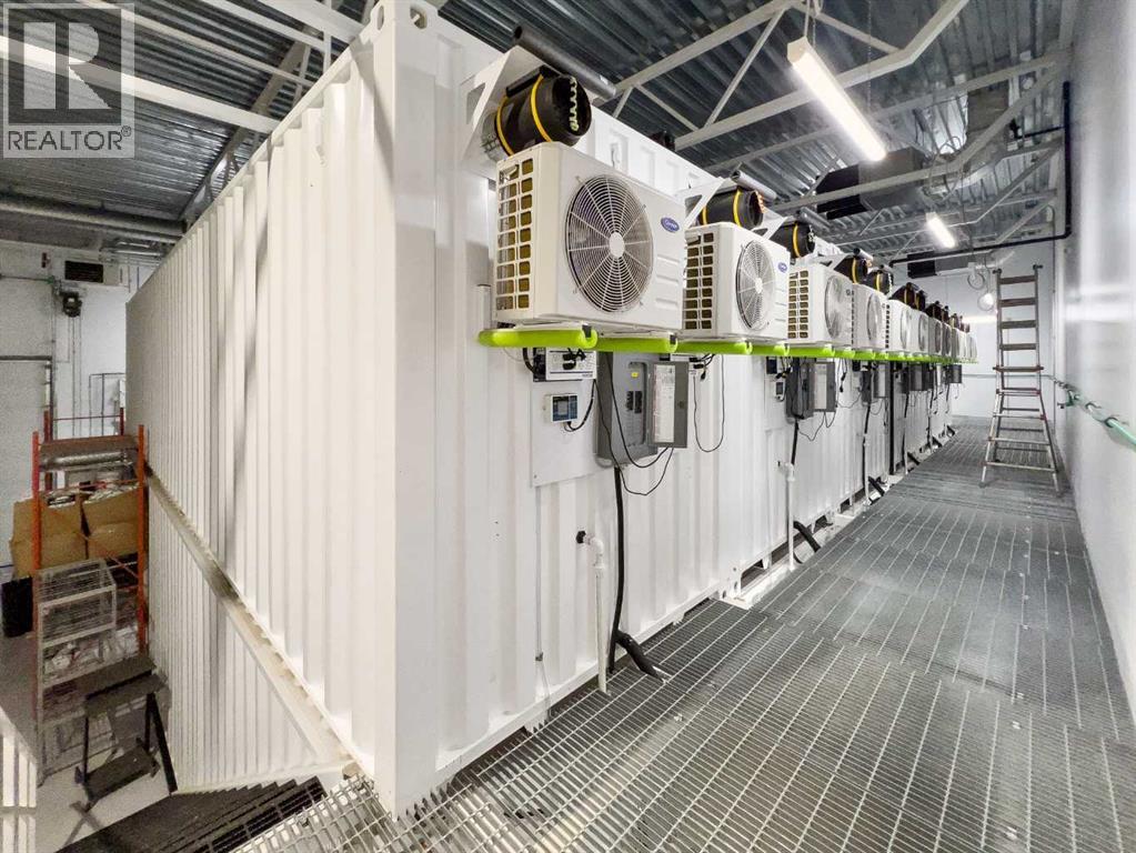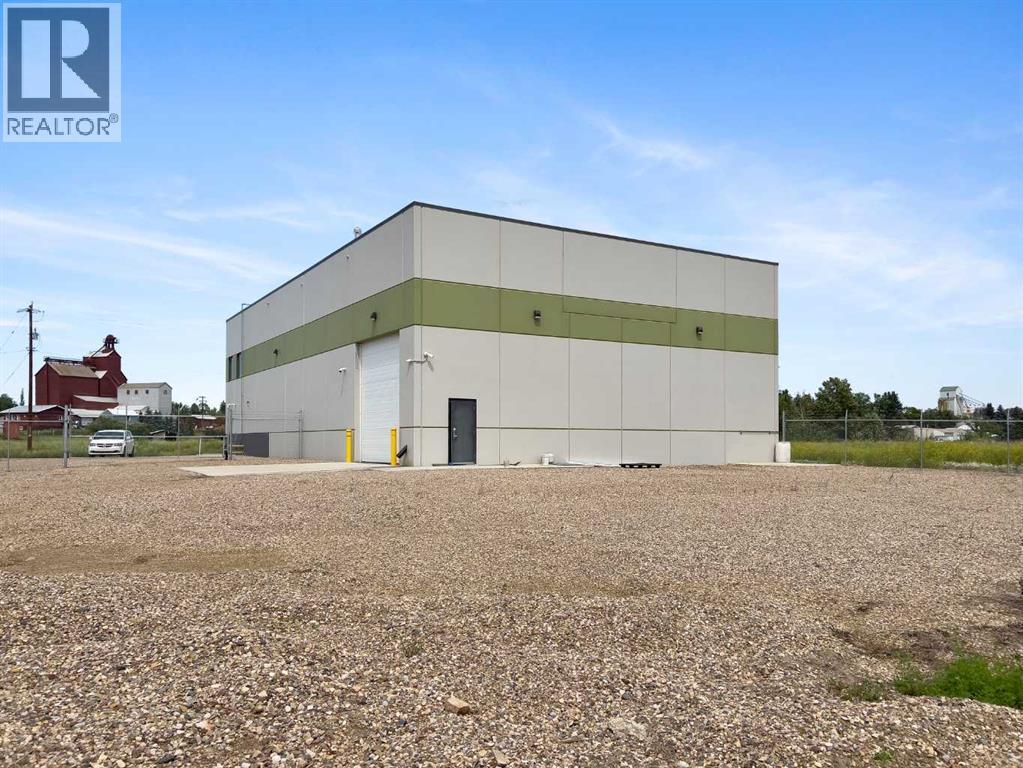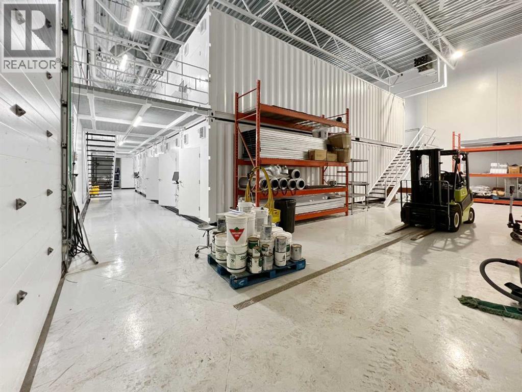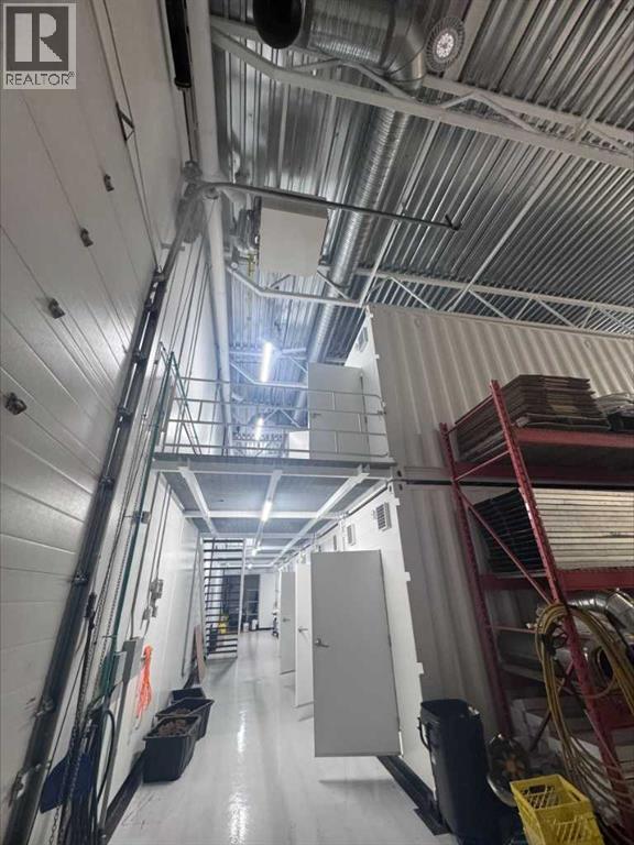 Prime Industrial Facility in Stettler’s East Industrial Area - Nestled in the vibrant community of Stettler, Alberta, this versatile industrial building is strategically positioned in the East Industrial area. Currently configured for indoor growing operations with multiple multi-level grow pods, the facility was originally designed as a micro-growing operation but built with exceptional adaptability for future business uses.The expansive main floor features an open-concept shop area complemented by a spacious upper mezzanine with direct yard access. The rear wall is engineered for straightforward modifications, including the addition of a large overhead door.Additional main-floor amenities include a well-appointed staff area with lockers, a fully equipped kitchen (complete with appliances), a bathroom with shower, and a dedicated server room for IT and security systems. Upstairs, a bright boardroom offers impressive views, alongside a separate bathroom and two private offices.This property boasts numerous high-value features, including a professionally monitored security and camera system, integrated water lines, three charcoal exhaust units, a large water tank, an industrial wash sink area, pressure washer, and chemical mixer. Ample outdoor space is available within the fully fenced yard for storage or additional operations.Designed for functionality and future potential, this exceptional facility must be viewed in person to fully appreciate its possibilities. Stettler, with a population of approximately 5,900 residents and a surrounding county of about 5,900, serves as the Heart of Alberta—centrally located and surrounded by numerous smaller towns and villages, offering a strong regional market and lifestyle. (id:63190)