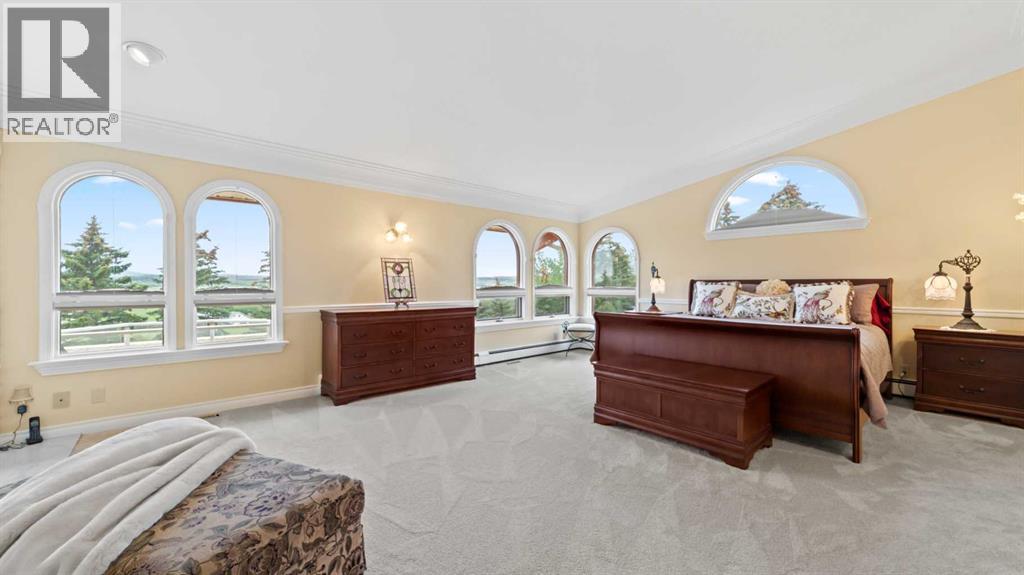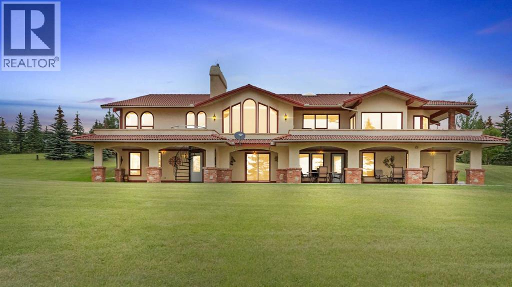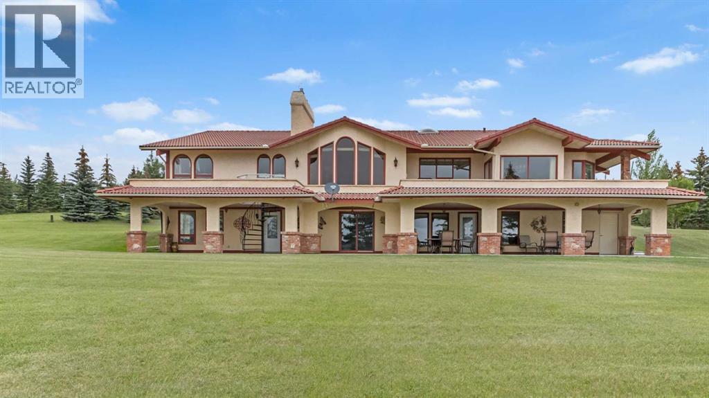 An exceptional opportunity to own nearly 20 acres just minutes from SW Calgary, Spruce Meadows, and the SW Ring Road, with breathtaking mountain views and room to grow. This property offers a rare combination of peaceful rural living, horse-ready infrastructure, and future development potential (subject to MD approval for subdivision).Ideal for equestrian enthusiasts, the land is cross-fenced into three separate pastures and includes a horse shelter, with plenty of space to expand. The custom-built walkout bungalow offers nearly 3900 square feet on the main floor and features 4 bedrooms, 3.5 bathrooms, a gourmet kitchen, curved staircase, vaulted ceilings, skylights, and 3 fireplaces—an elegant, spacious home designed for comfort and entertaining.Enjoy the convenience of a heated triple-attached garage plus a separate 3-car detached garage, ideal for vehicles, a workshop, or potential conversion into a barn. The walkout lower level is partially finished and offers flexible space, including the option to develop a self-contained living space.Whether you're seeking space for horses, investment potential, or simply a private retreat close to the city, this unique property delivers incredible value and versatility. Don’t miss this chance to own in the foothills with views, privacy, and potential. (id:63190)