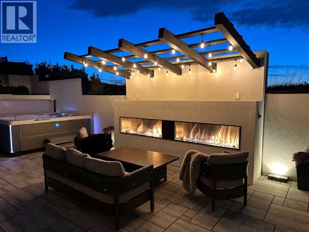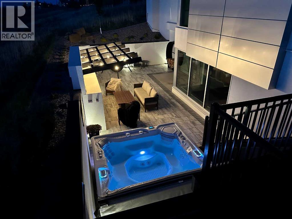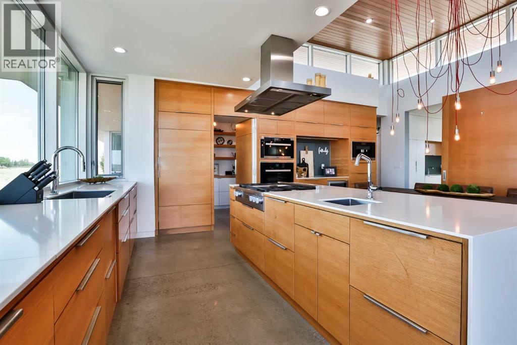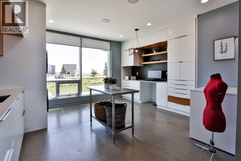 This property is as close to *Selling Sunset* as you'll find in Southern Alberta! This sprawling modern bungalow will capture your attention with the breathtaking view of the coulee in the distance. Stepping through the impressive wood pivot door, you know you're in for a treat. The main floor features 14-foot ceilings, complemented by floor-to-ceiling triple-pane commercial glass windows that will leave you speechless! The open-concept layout seamlessly combines the dining, living, and kitchen areas, with polished concrete floors being warmed by light wood cabinetry. The sleek white, quartz countertops, showcase your kitchen and island area, with windows that create a delightful connection between your indoor and outdoor spaces. The impressive appliance package, featuring a gas cooktop, a cabinet-paneled oversized fridge, a built-in microwave and oven, and a wine fridge. A coffee lover's dream, a built-in Miele espresso machine rivals even the best cafés. A cleverly hidden pantry door adds an extra touch of seamlessness! The living room is anchored by an oversized wood-burning fireplace, transom windows fill the space with natural light. There is an office with stylish floating shelves sits off of the Living room. The primary suite, features floor-to-ceiling windows that wrap the corner, providing spectacular morning & sunset views right from your bed. The walk-around closet is a shopper's dream, while the bright and airy ensuite features double vanities and a luxurious steam shower. Off the kitchen lies a spacious laundry/all-purpose room perfect for sewing or supervising homework while you prepare dinner. In the east wing, you’ll find three spare bedrooms. One has its own ensuite bathroom, while the other two share a Jack and Jill bathroom with a beautifully tiled shower, double vanities, and a skylight that invites natural light. Continuing down the hallway, another floor-to-ceiling glass panel reveals your very own gymnasium, measuring an impressive 32 x 40 fee t with 20-foot ceilings, complete with built-in basketball hoops, pickleball court & 3 wide closet for organizing all your sports gear. Floating wood stairs with striking black railings lead you to the basement living room, perfect for movie nights, and entertaining with your side bar. With large windows typical of a walkout basement, this space feels open and bright, completed by a half bath. Outside the gym exit, is a newly installed large sunken patio that blends with the home’s aesthetic. Complete with double gas fireplaces, a pergola, and oversized hot tub. The main patio off the kitchen features a covered deck, built-in speakers, a gas fire pit, and views that are unmatched in all of Southern Alberta. Equipped with cutting-edge technology, most lights, blinds, heating, cooling, and music can be controlled via a control panel or your phone—an upgrade valued at $100,000! The home also offers both forced air and indulgent in-floor heating. Call your REALTOR® for a private viewing today! (id:63190)