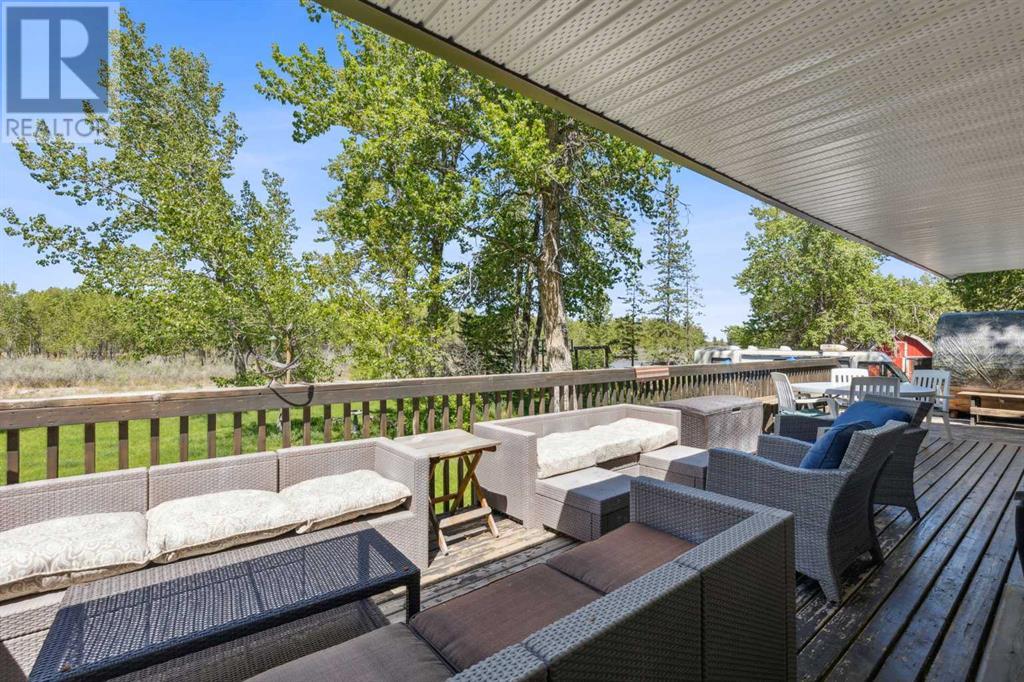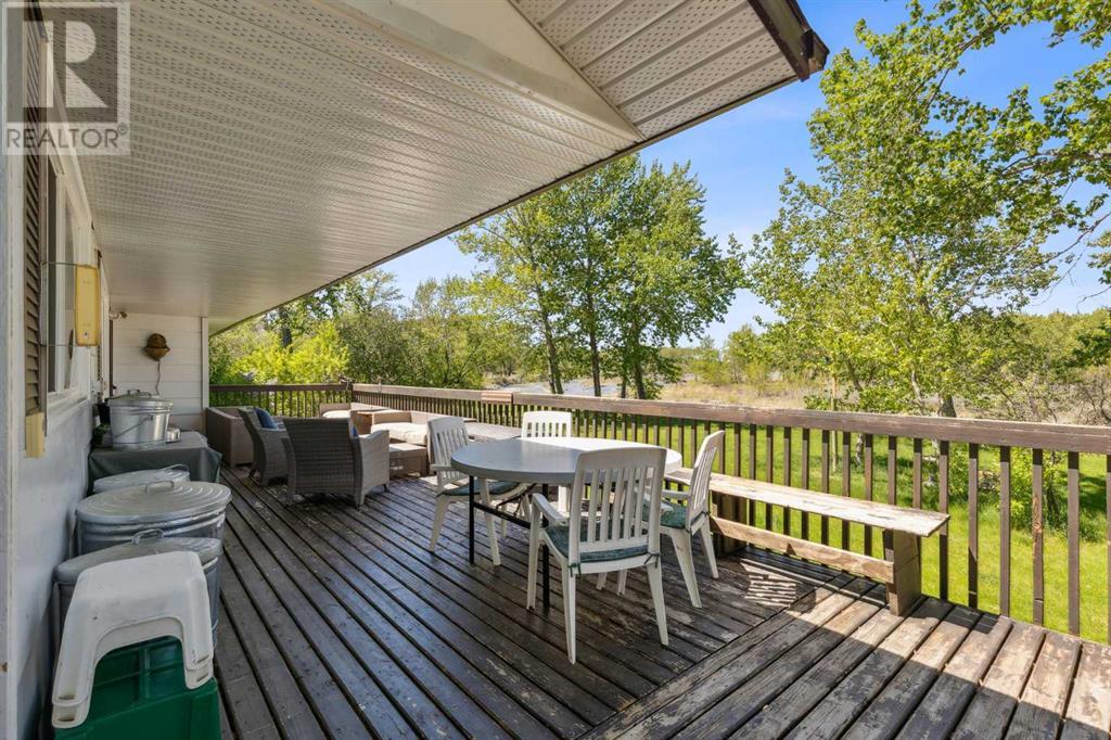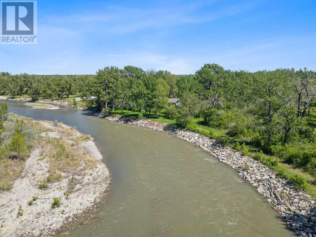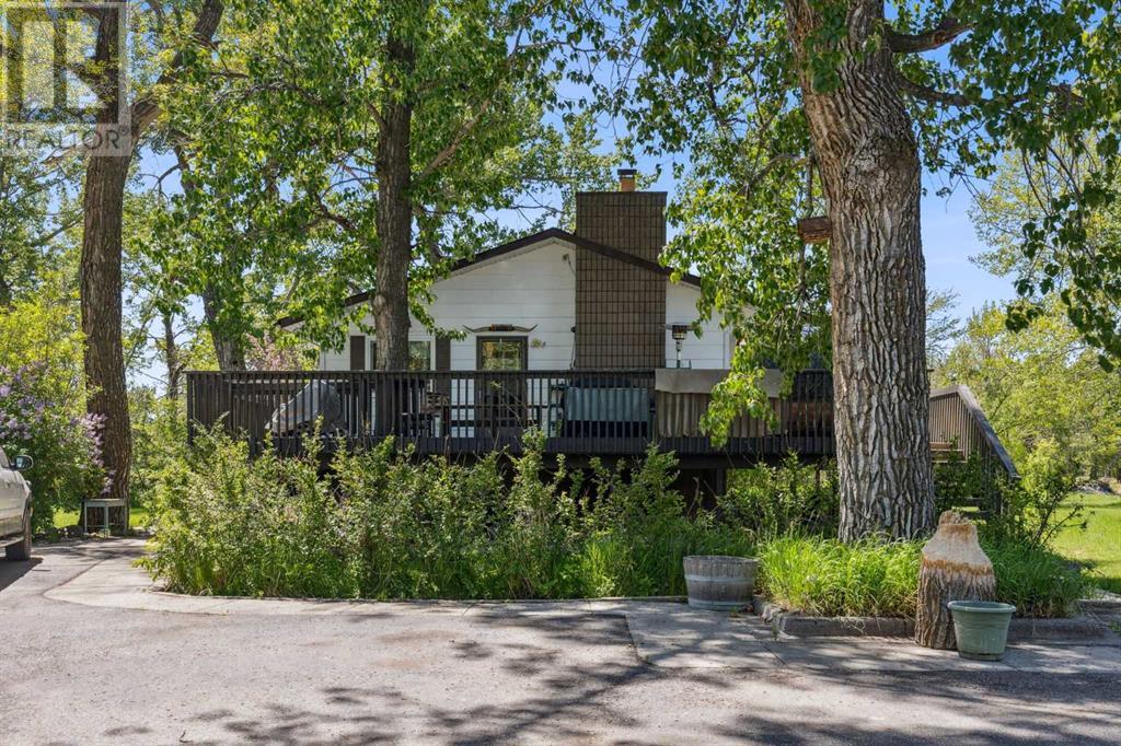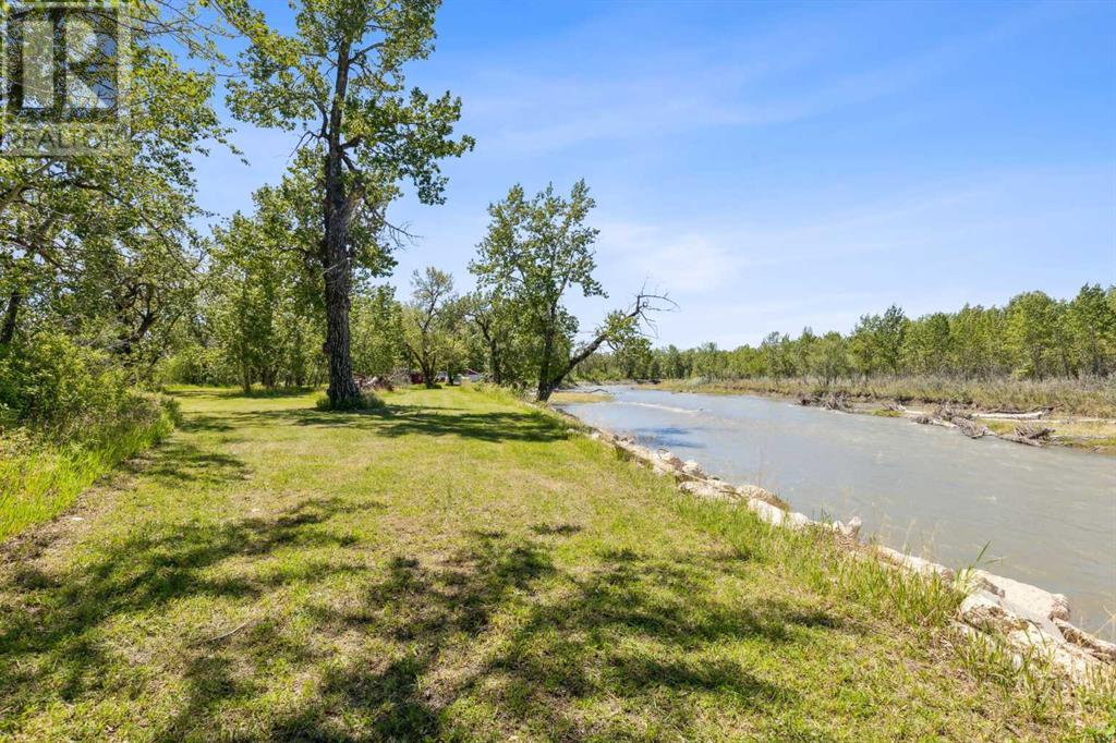 Discover the perfect blend of tranquility and recreation just outside of town with this exceptional property, set on 10 beautifully staked acres with 1,200 feet of private riverbank. This unique retreat offers year-round serenity and a wealth of outdoor activities, including swimming, snorkeling, tubing, and canoeing in the summer, as well as snowshoeing in the winter.The property sits 18 feet above the flood barrier berm in SW High River, ensuring safety and peace of mind. The basement experienced about 3 feet of water and river mud in 2013, but it was fully remediated, making it ready for your personal touch. The main house is a charming raised bungalow featuring 1,385 sq ft of comfortable living space, including 3 bedrooms and 1.5 bathrooms. It boasts an original kitchen with updated appliances, new windows, and a spacious living area. Step through the dining room access door onto a massive 1,300 sq ft deck, designed for relaxation while you listen to the soothing sounds of the river and the gentle rustle of trees. Unwind in the inviting cedar sauna, perfect for enjoying after a long day. Recent updates include new soffits and eavestroughs, replaced in 2022. Embrace the bounty of nature with chokecherry trees, saskatoon berries, raspberry bushes, a pear tree, an apple tree, ornamental cherries, and rhubarb flourishing on the property. The greenhouse, complete with blueberries, strawberries and edible cherries, and the garden is currently thriving with potatoes, chives, and asparagus. Additional features include a detached double garage next to the house, a small workshop behind the garage, and a larger 22.11'x22.11' shop with electricity. The owner has taken tremendous care and maintenance to riprap the riverbank to create stability and security. He planted willows as well to further stabilize the soil. This property is truly one-of-a-kind! Although you sit on the outside of town within 5-10 minutes you have access to the hospital, grocery stores, banking and any thing else you need. Schedule a showing today to experience the beauty and potential for yourself! (id:63190)