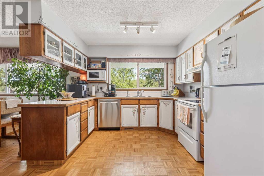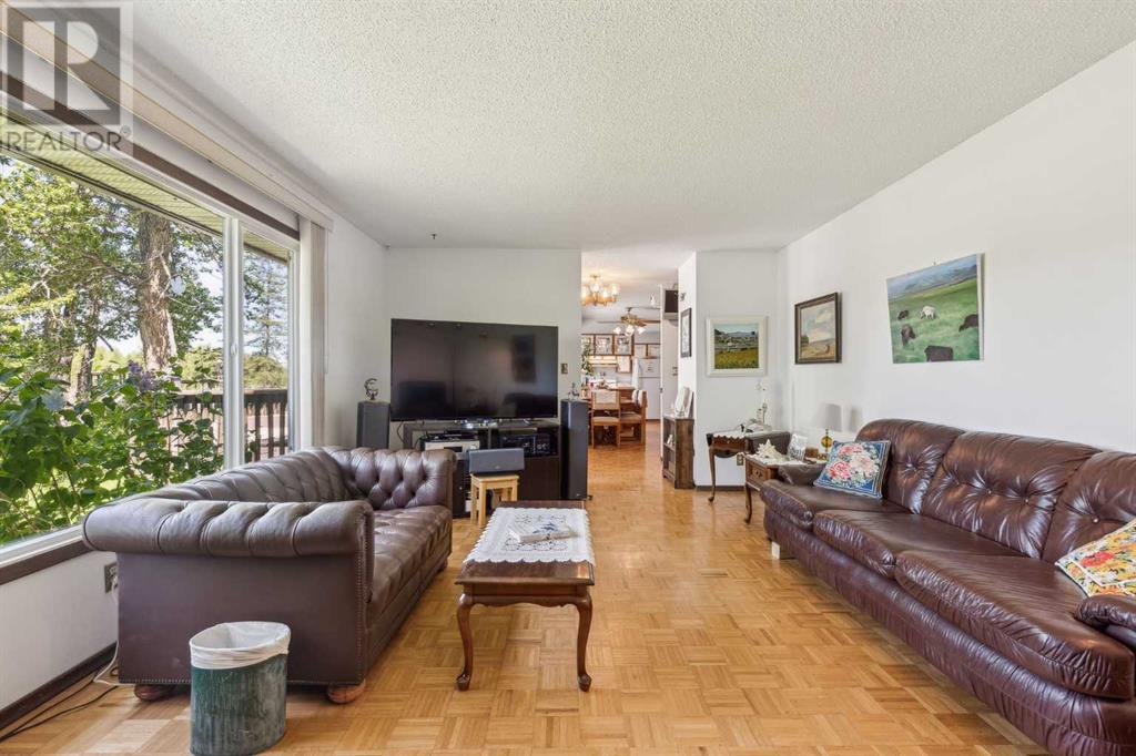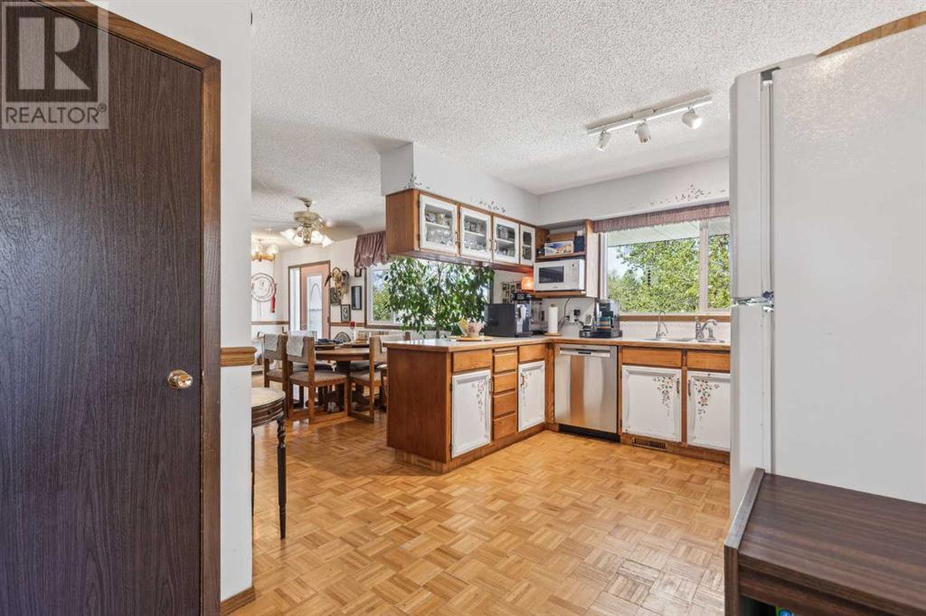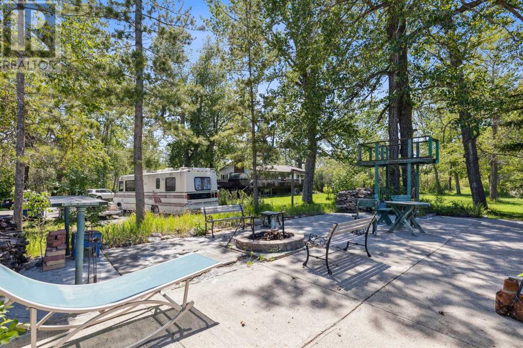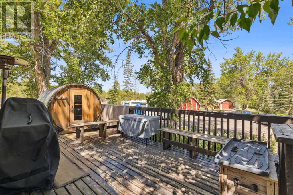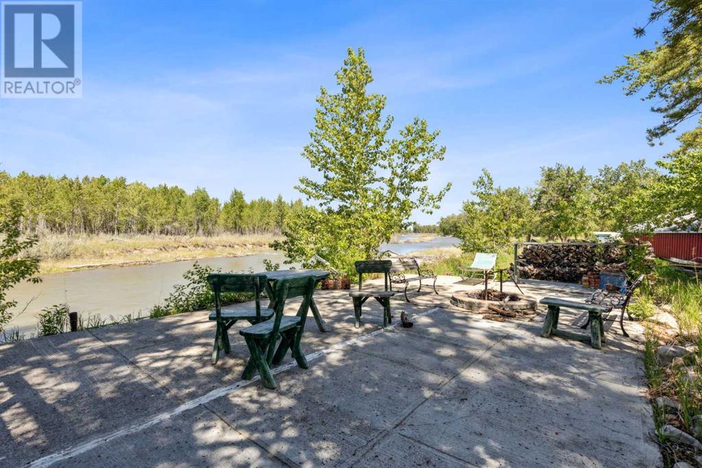 Discover the perfect blend of tranquility and recreation just outside of town with this exceptional property, set on 10 beautifully staked acres with 1,200 feet of private riverbank. This unique retreat offers year-round serenity and a wealth of outdoor activities, including swimming, snorkeling, tubing, and canoeing in the summer, as well as snowshoeing in the winter.The property sits 18 feet above the flood barrier berm in SW High River, ensuring safety and peace of mind. The basement experienced about 3 feet of water and river mud in 2013, but it was fully remediated, making it ready for your personal touch. The main house is a charming raised bungalow featuring 1,385 sq ft of comfortable living space, including 3 bedrooms and 1.5 bathrooms. It boasts an original kitchen with updated appliances, new windows, and a spacious living area. Step through the dining room access door onto a massive 1,300 sq ft deck, designed for relaxation while you listen to the soothing sounds of the river and the gentle rustle of trees. Unwind in the inviting cedar sauna, perfect for enjoying after a long day. Recent updates include new soffits and eavestroughs, replaced in 2022. Embrace the bounty of nature with chokecherry trees, saskatoon berries, raspberry bushes, a pear tree, an apple tree, ornamental cherries, and rhubarb flourishing on the property. The greenhouse, complete with blueberries, strawberries and edible cherries, and the garden is currently thriving with potatoes, chives, and asparagus. Additional features include a detached double garage next to the house, a small workshop behind the garage, and a larger 22.11'x22.11' shop with electricity. The owner has taken tremendous care and maintenance to riprap the riverbank to create stability and security. He planted willows as well to further stabilize the soil. This property is truly one-of-a-kind! Although you sit on the outside of town within 5-10 minutes you have access to the hospital, grocery stores, banking and any thing else you need. Schedule a showing today to experience the beauty and potential for yourself! (id:63190)