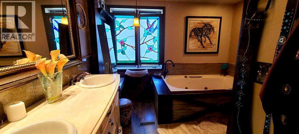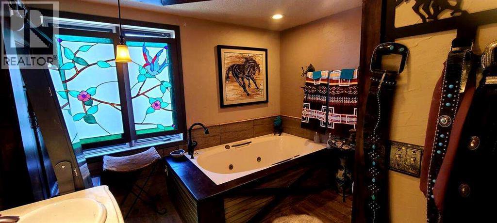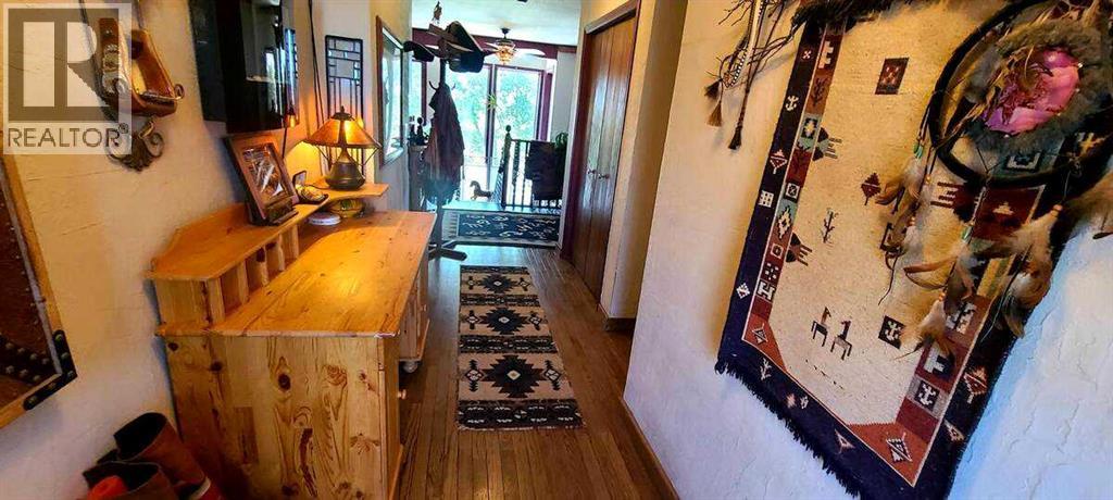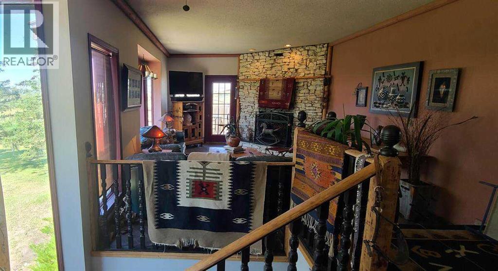For more information, please click the "More Information" button. This awesome piece of Country property has the Potential To Subdivide or redesignate to commercial or maintain Agriculture status. Within the Wheatland County west Highway 1 area structure plan and only minutes from the De Havilland Field aircraft manufacturing facility project. Live the country life in this comfortable country home with 60 acres that has a creek flowing through or purchase as a holding property with options to redesignate or subdivide for future business opportunities upon County approval. Located close to all amenities and main highway just west of Strathmore and 20 minutes to Calgary. Only 1/2 km off of Highway 1.Currently runs as a horse and cattle ranch with 50 acres of grazing land. It has a creek running through the coulee with a dugout. There is a hay field plus native grass used for grazing. The ranch also has a 900 sq ft 5 stall barn with water hydrant and electricity also shelters, corrals and is fenced and cross fenced. The home is an upgraded raised bungalow with a walkout basement with in-floor heating and wood stove, plus 3 bedrooms, 4-piece bathroom and family room all on lower level. The house has nearly 3000 sq ft of fully developed and usable living space main level is open concept kitchen, dining room and living room with 2 bedrooms a 4-piece bathroom and a 6-piece ensuite and a walk-in closet in master. Huge decks on north, south and east sides. It has much more such as mountain views, incredible sunsets and a treed yard. Great water, newer septic tank, hot water tank, pressure tank and boiler tank. Beautiful home! (id:63190)