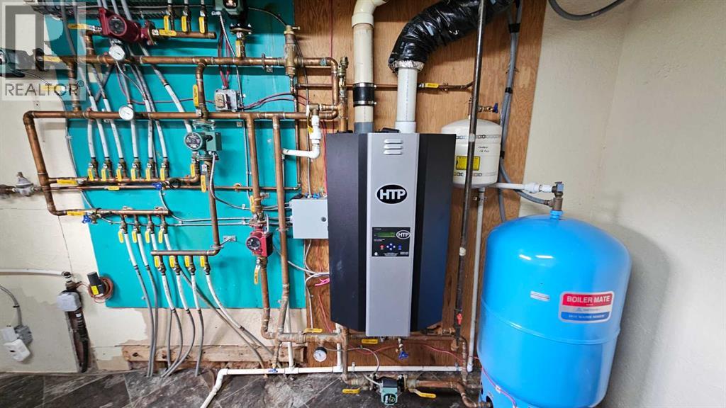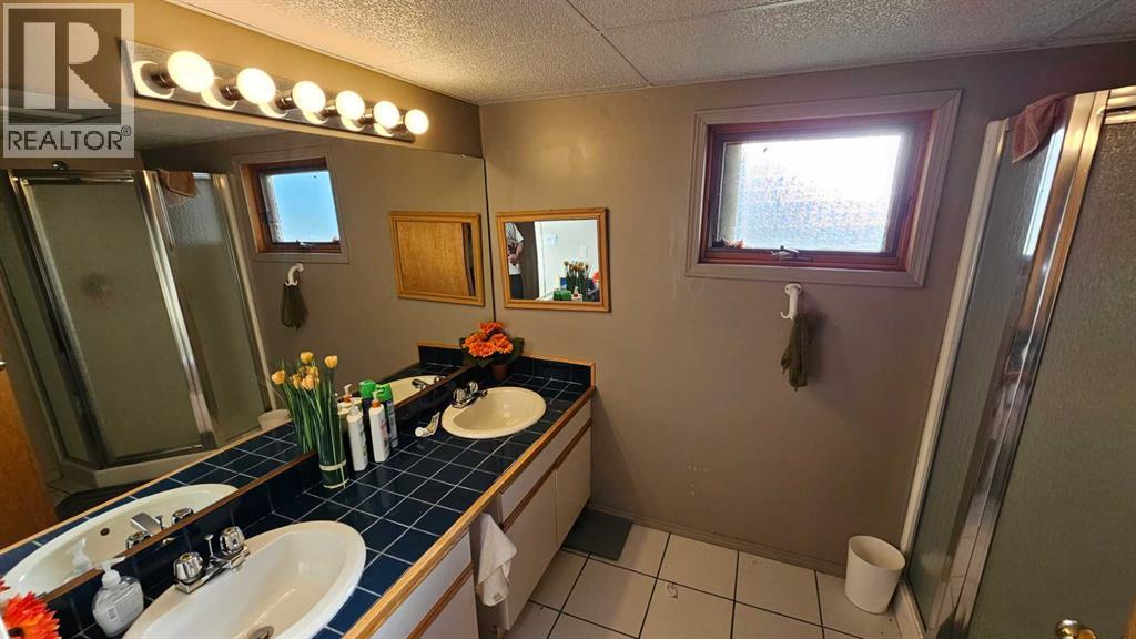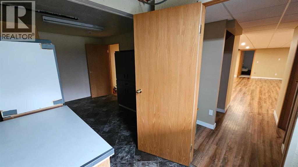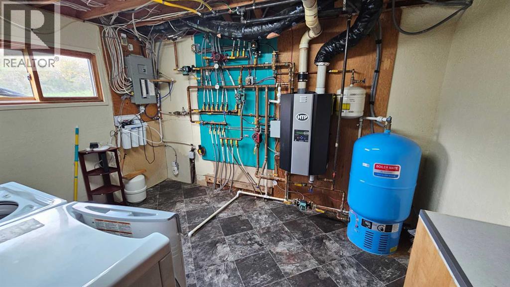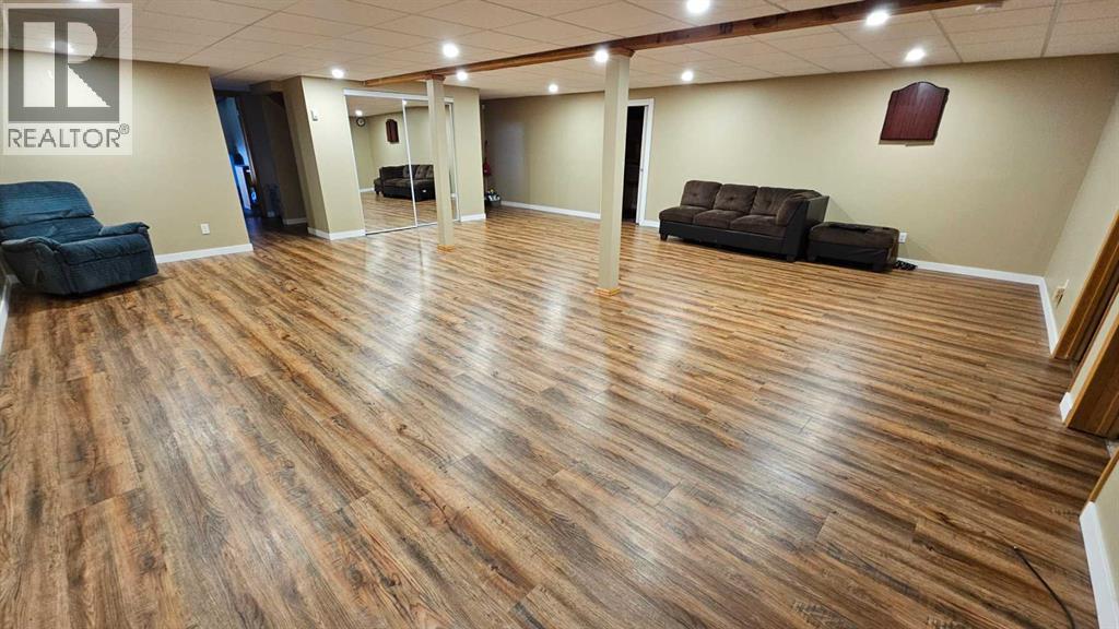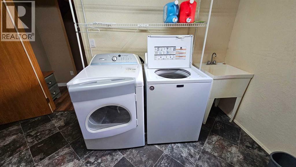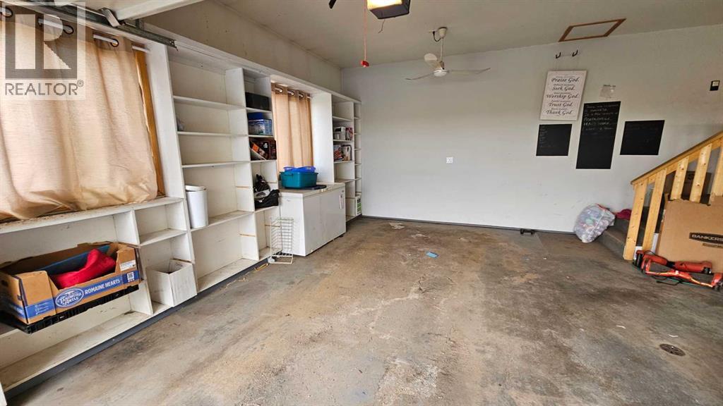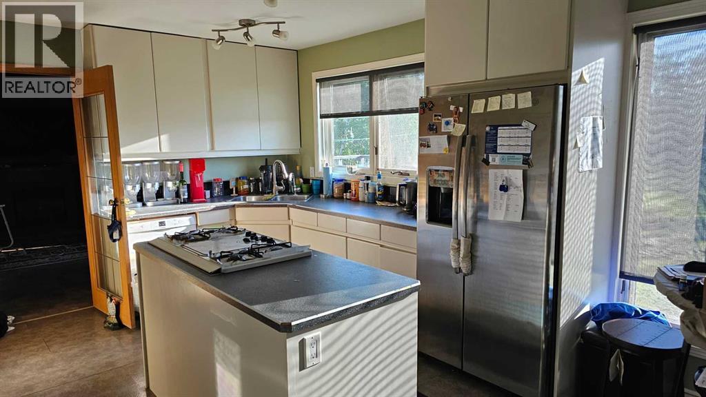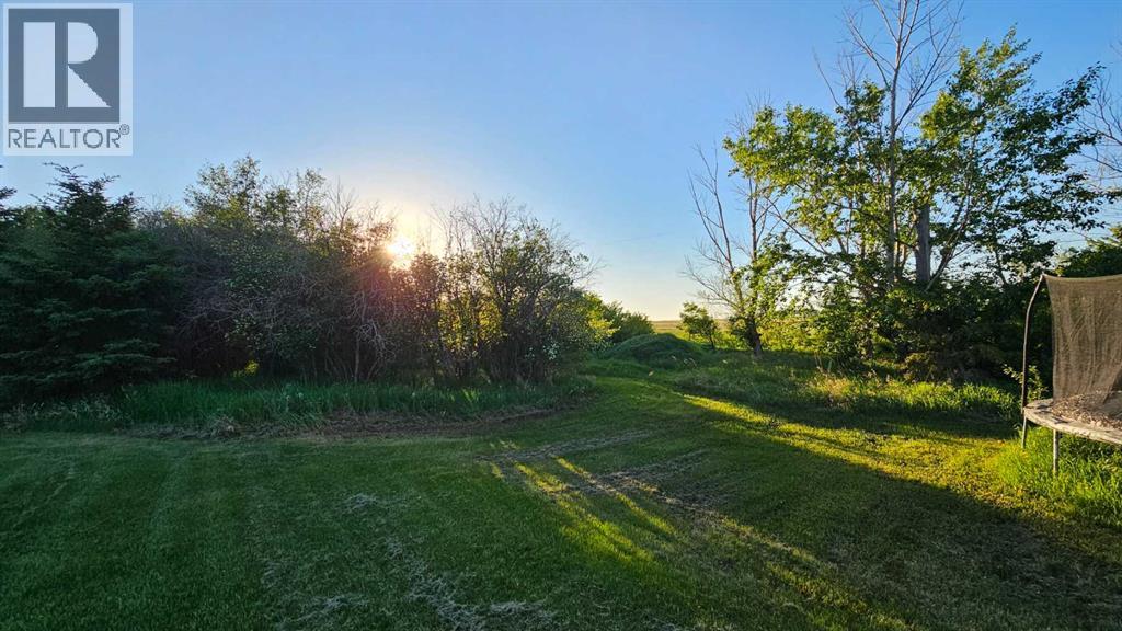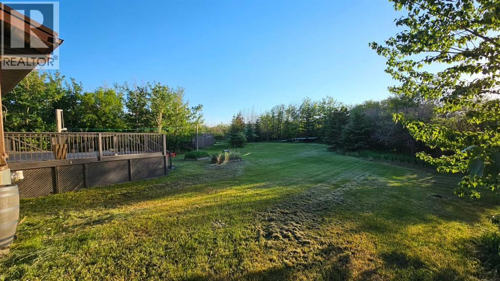 Welcome to Coronation, this 3.21 acre parcel is situated on the north west side, still within the town limits, north of the hospital. There are two parcels, sold together, one with the house -1.09 acres, beautiful landscaping and shrubbery and second lot with a fully fenced 2.12 acre lot with page wire fencing around numerous trees, comes with the 2 metal sea cans and a garden shed, all are included. . This beautiful home is a 1600 plus sq ft bungalow, with metal roof, wood looking(composite) siding, attached double heated garage and a front deck that has stone and rock accents and the overhanging roof. This custom built 1992(approx) home, has 5 bedrooms, three bathrooms and a den that faces east to watch the sunrise and the beauty that lies outside. It also has a large living room with vaulted ceiling(14ft) and a cozy kitchen with an eating area. Finally there is a separate dinning room just off the kitchen area. The wood windows in this home are extra large and plentiful. These add an abundance of light into the home. The west ones also include a large set of patio doors off the living room onto the large west deck. There has been new vinyl flooring put in throughout the upstairs. Downstairs is the large rumpus room, with newer flooring, 2 comfortable bedrooms, a four piece bathroom, loads of storage in the cold room and the utility room, along with washer and dryer and the heating system that is run by the on demand heater as the house has radiant heat throughout the entire building(both floors). Off the living room is a large 20x20 ft deck plus a 12 x 12ft attached deck facing out towards the west. There is a fenced dog run and plenty of room for those who want a garden. With so much potential and an abundance of space this is a one of a kind home to invest in. (id:63190)