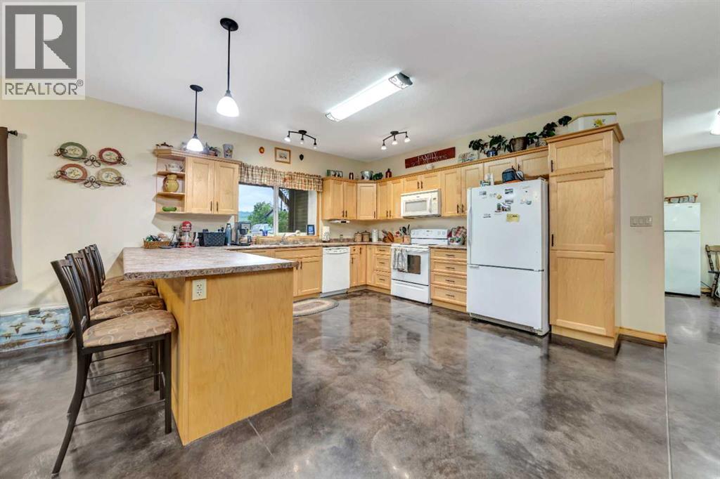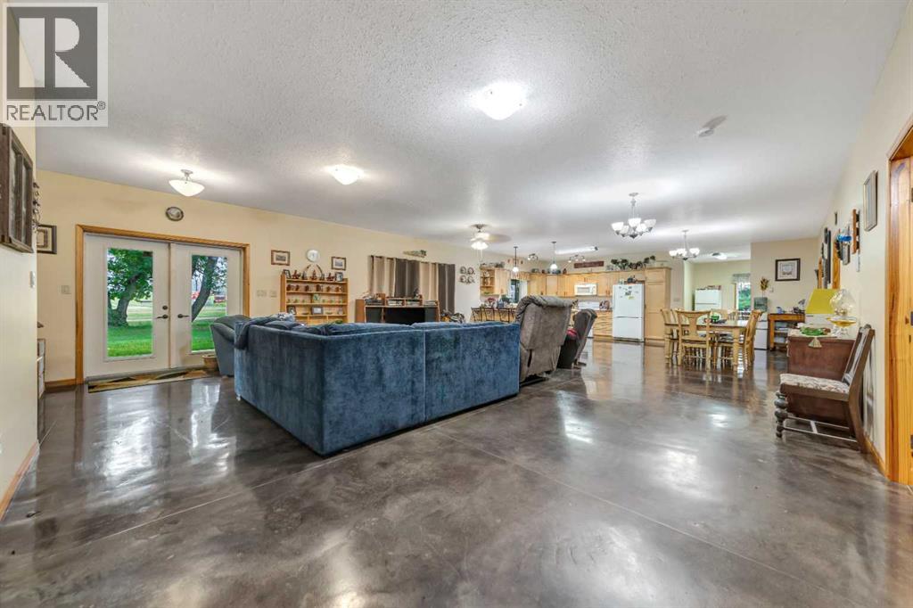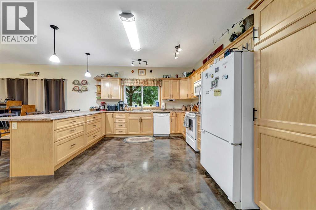 Turnkey ranch on 557 acres, located 25 KM northeast of Marwayne, AB. This property offers approximately half cultivated land and half pasture, making it ideal for supporting a livestock operation. The 2010-built bungalow provides a spacious, single-level, open-concept layout with 2,712 sq ft of living space. Constructed with ICF for energy efficiency and durability, the home features infloor heating throughout its acid-wash concrete floors, supplemented by a wood stove. The exterior is low maintenance with vinyl siding and a metal roof. The house has three bedrooms, two full bathrooms, 36” doors, and 9’ ceilings for accessibility and comfort. The main shop offers a 40’ x 40’ heated area, plus a 20’ x 40’ annex for additional flexibility, with 12’ walls allowing ample space for various uses. The property also includes a barn plus several outbuildings ready to use. Utilities include reliable natural gas service and a 36” bored well with plastic cribbing, tested in August 2024, producing 10 GPM. For more details and a comprehensive information package, please contact the listing office. (id:63190)