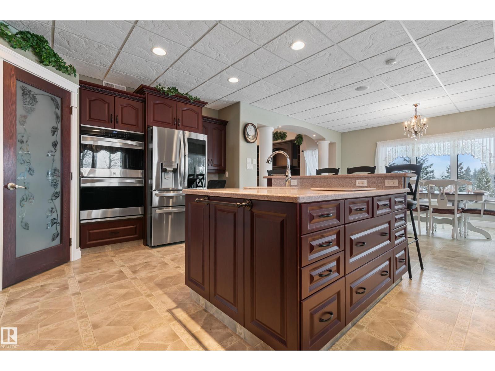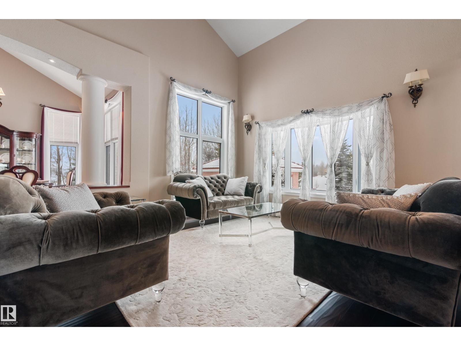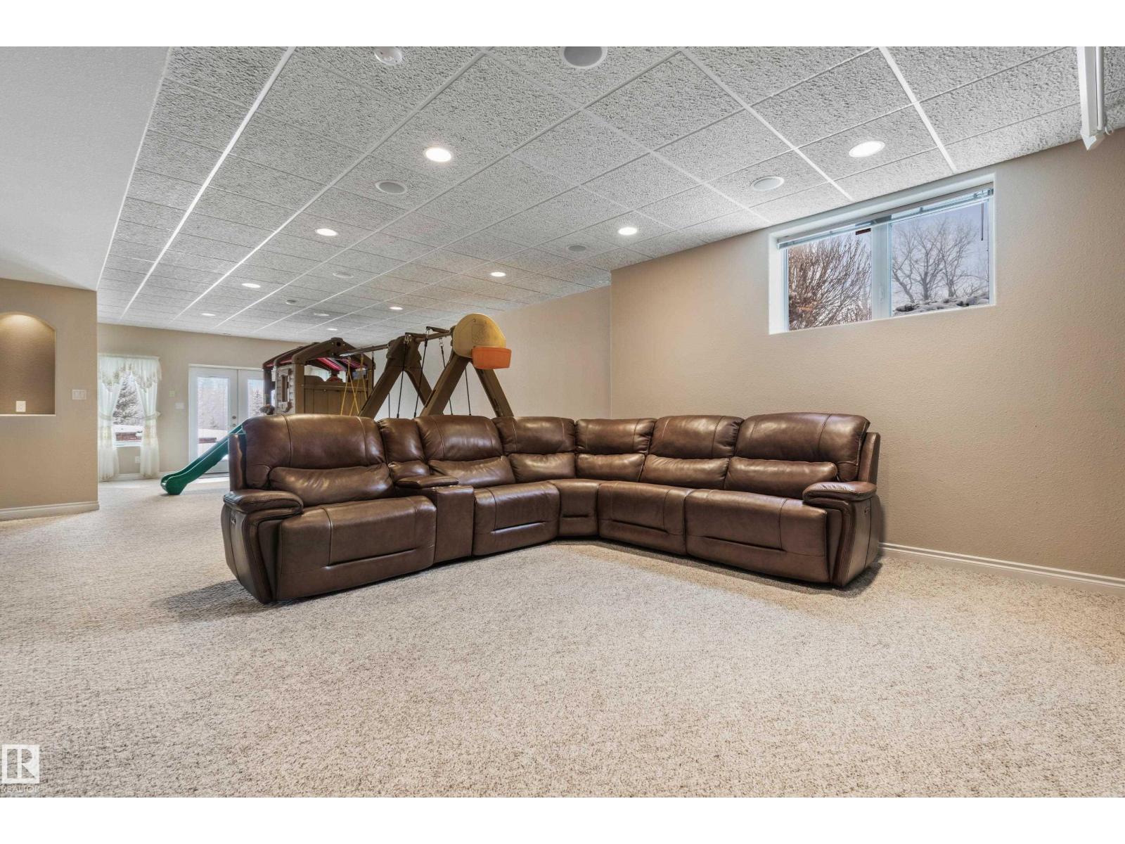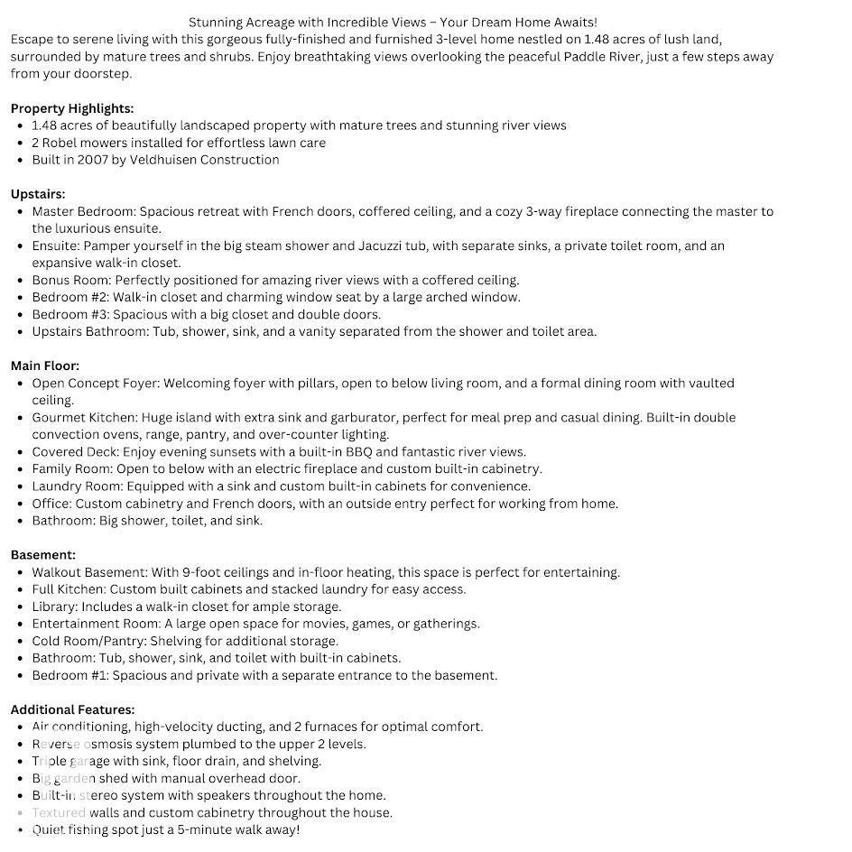 This EXECUTIVE RIVERFRONT 2-storey with all the extras you could imagine, is situated just on the outskirts of Barrhead. Enjoy 5851 sqft of total living space incl 4 bdrms & 4 baths. Quality Veldhuisen Construction home with concrete tile roof, extreme energy efficiency, tons of exposed aggregate concrete with indoor -outdoor entertainment areas. It boasts 19-foot ceilings in two main areas, along with multiple vaulted and coffered ceilings. Experience fantastic riverfront views with the charm of country living, plus town water-sewer. Features include robotic mowers and a private basement suite with a separate entrance. The grand front entry showcases a granite floor and pillars. Amazing views with lots of windows from both floors. Full walkout basement, and great river fishing! Many upgrades in 2019. Price includes most furniture and contents, making this a move-in-ready home for those seeking luxury, comfort, and privacy. It's spotless and waiting just for you! For DOLLHOUSE VIEW click on BROCHURE. (id:63190)