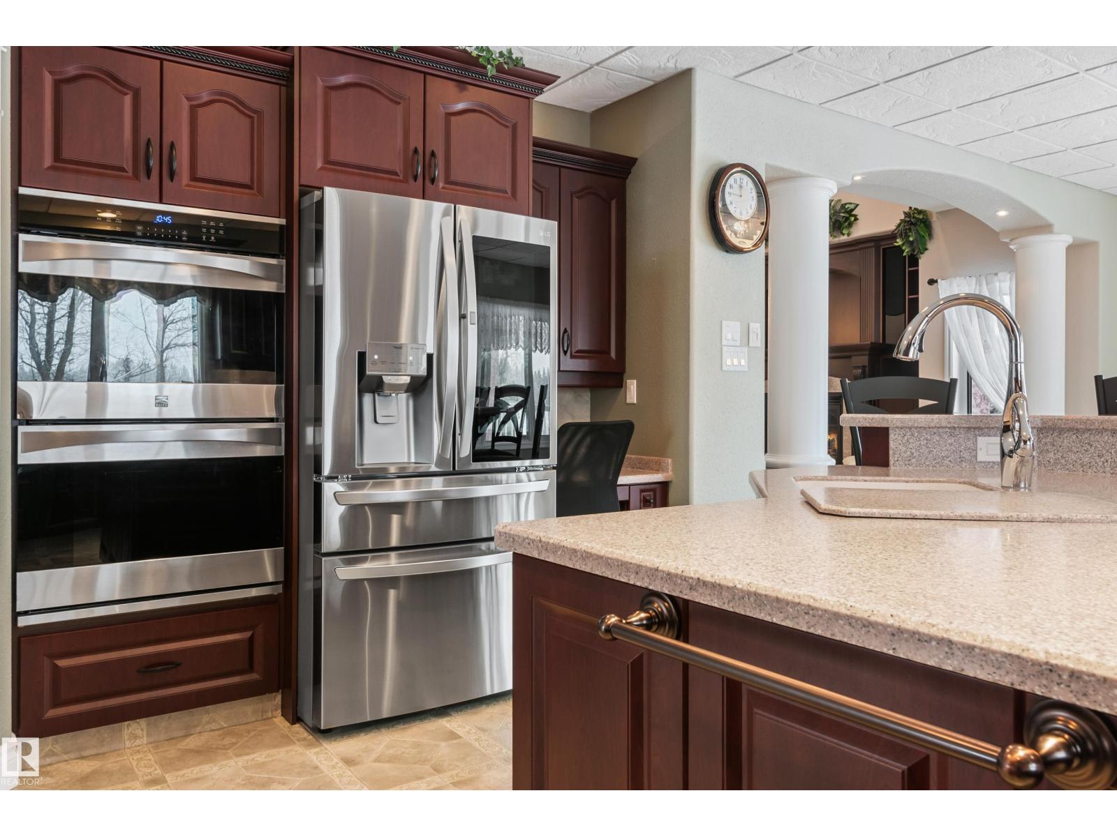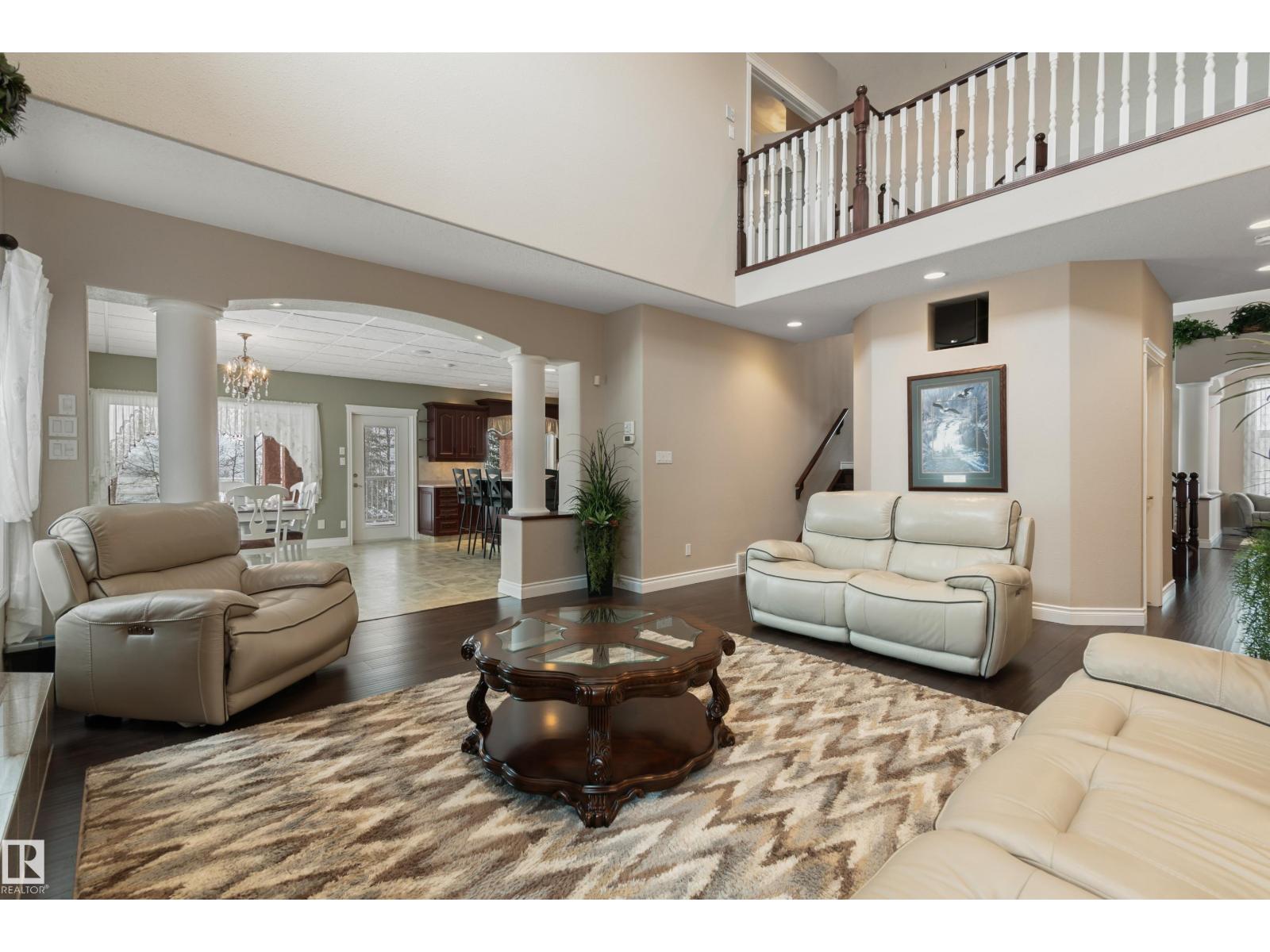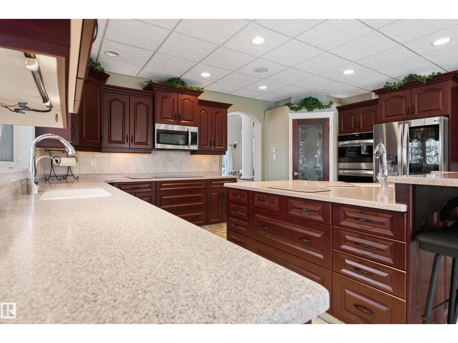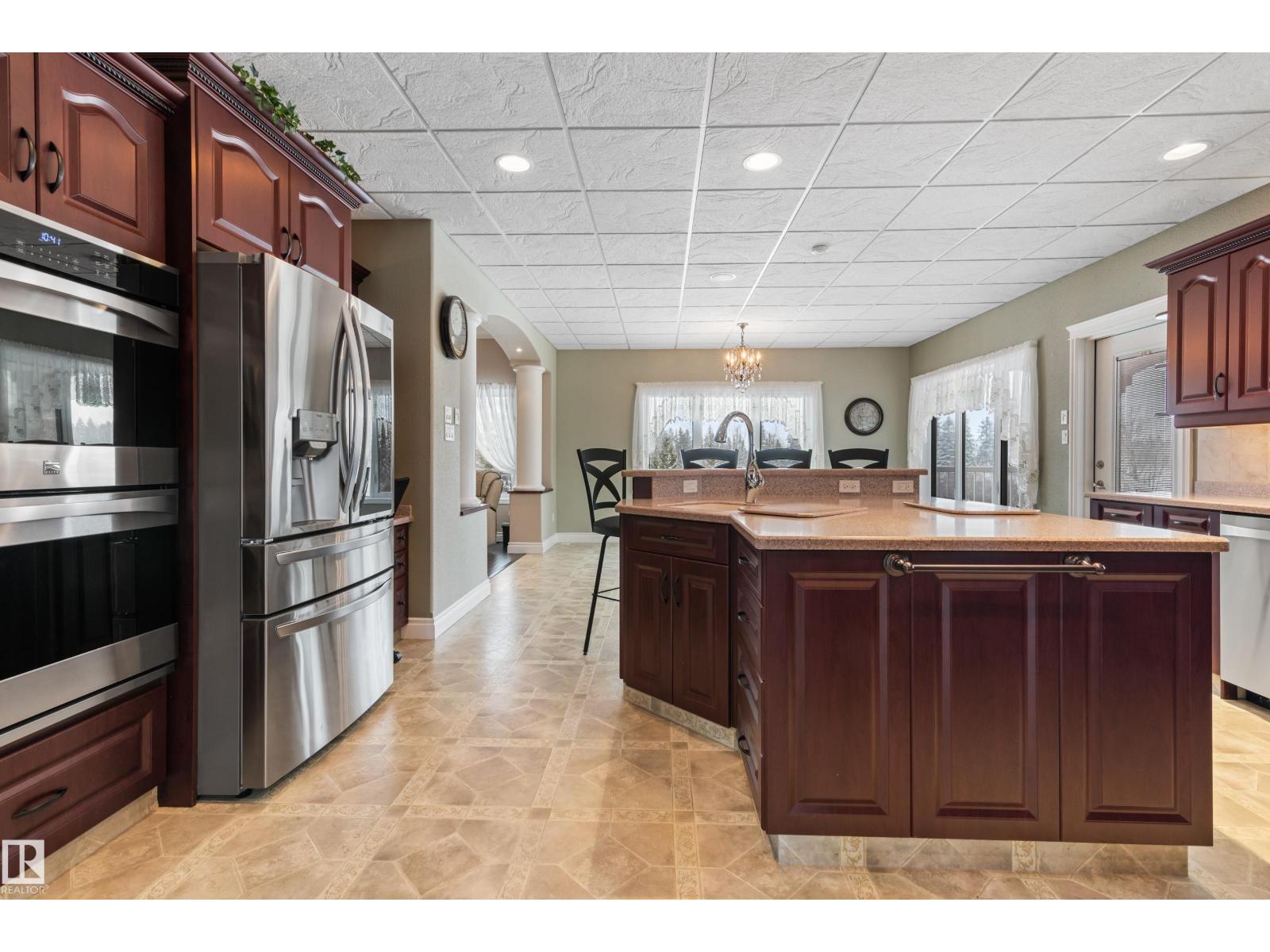 This EXECUTIVE RIVERFRONT 2-storey with all the extras you could imagine, is situated just on the outskirts of Barrhead. Enjoy 5851 sqft of total living space incl 4 bdrms & 4 baths. Quality Veldhuisen Construction home with concrete tile roof, extreme energy efficiency, tons of exposed aggregate concrete with indoor -outdoor entertainment areas. It boasts 19-foot ceilings in two main areas, along with multiple vaulted and coffered ceilings. Experience fantastic riverfront views with the charm of country living, plus town water-sewer. Features include robotic mowers and a private basement suite with a separate entrance. The grand front entry showcases a granite floor and pillars. Amazing views with lots of windows from both floors. Full walkout basement, and great river fishing! Many upgrades in 2019. Price includes most furniture and contents, making this a move-in-ready home for those seeking luxury, comfort, and privacy. It's spotless and waiting just for you! For DOLLHOUSE VIEW click on BROCHURE. (id:63190)