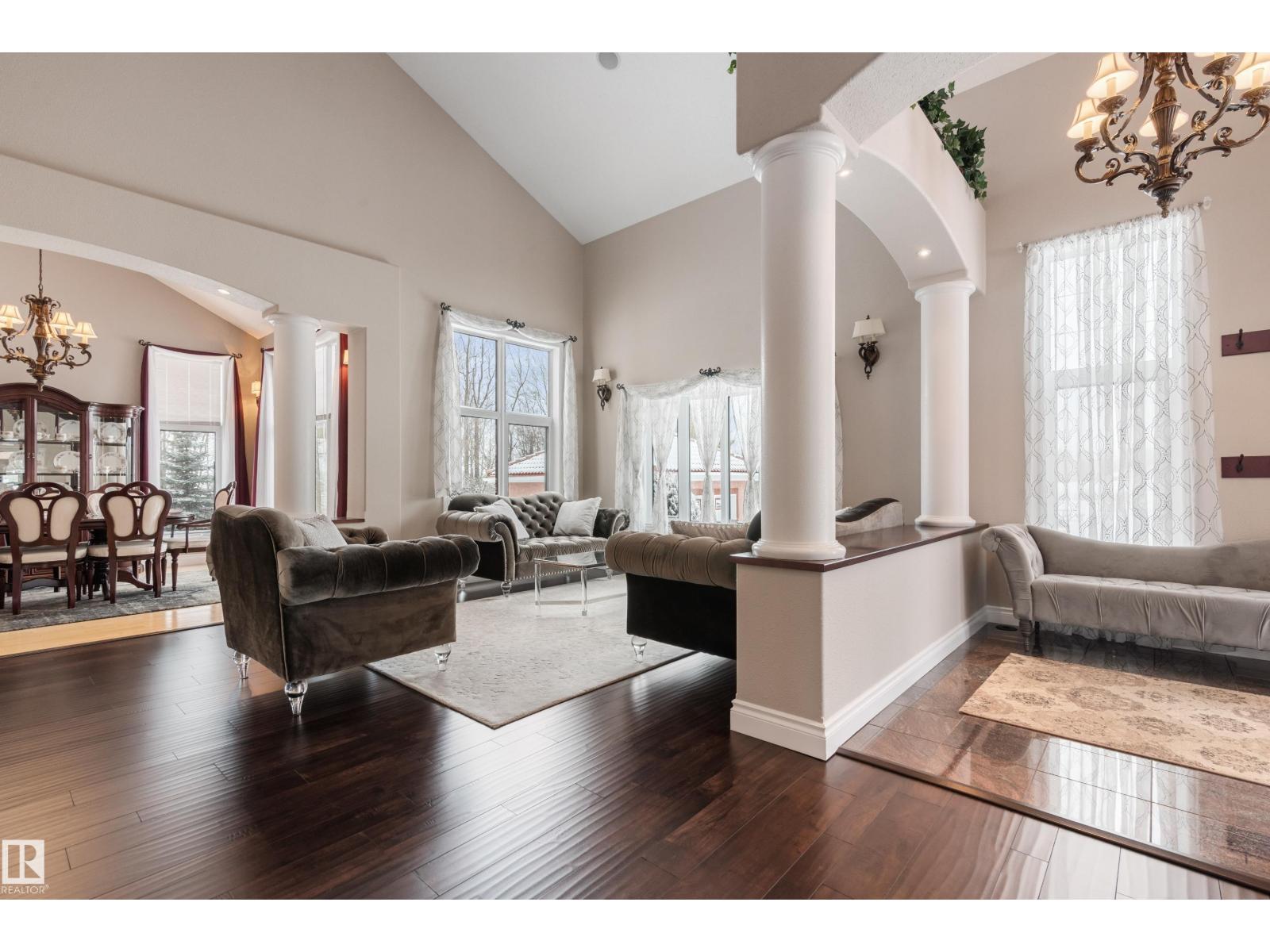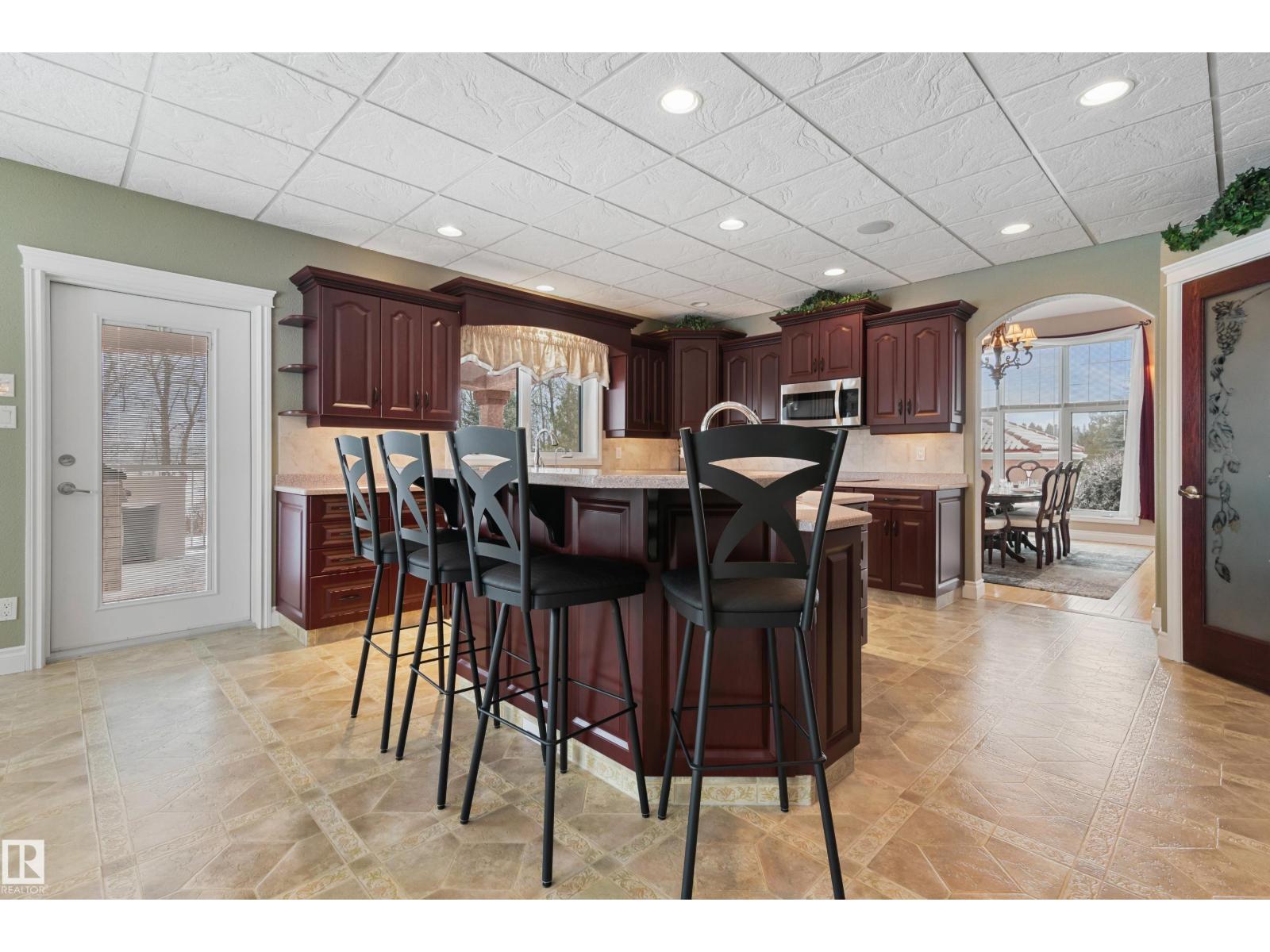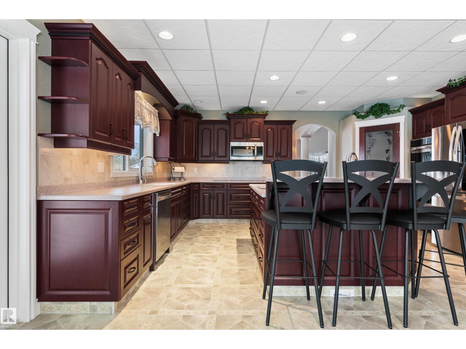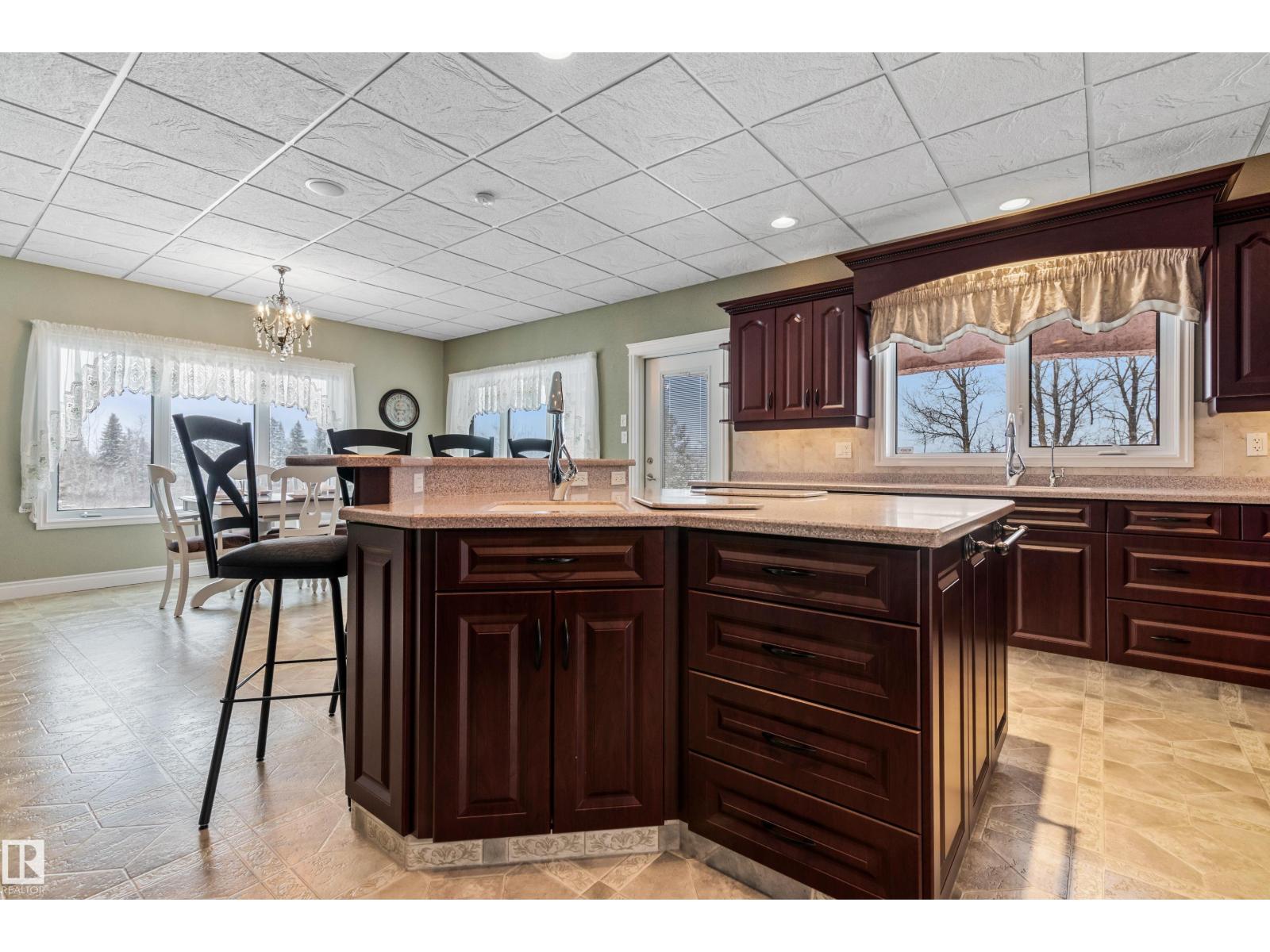 This EXECUTIVE RIVERFRONT 2-storey with all the extras you could imagine, is situated just on the outskirts of Barrhead. Enjoy 5851 sqft of total living space incl 4 bdrms & 4 baths. Quality Veldhuisen Construction home with concrete tile roof, extreme energy efficiency, tons of exposed aggregate concrete with indoor -outdoor entertainment areas. It boasts 19-foot ceilings in two main areas, along with multiple vaulted and coffered ceilings. Experience fantastic riverfront views with the charm of country living, plus town water-sewer. Features include robotic mowers and a private basement suite with a separate entrance. The grand front entry showcases a granite floor and pillars. Amazing views with lots of windows from both floors. Full walkout basement, and great river fishing! Many upgrades in 2019. Price includes most furniture and contents, making this a move-in-ready home for those seeking luxury, comfort, and privacy. It's spotless and waiting just for you! For DOLLHOUSE VIEW click on BROCHURE. (id:63190)