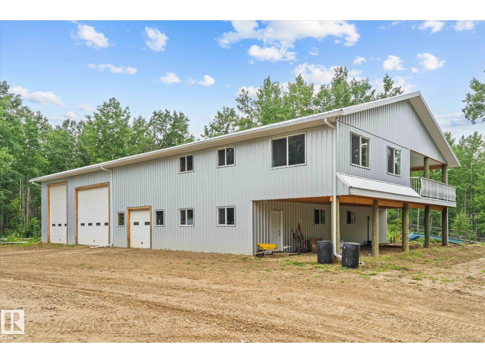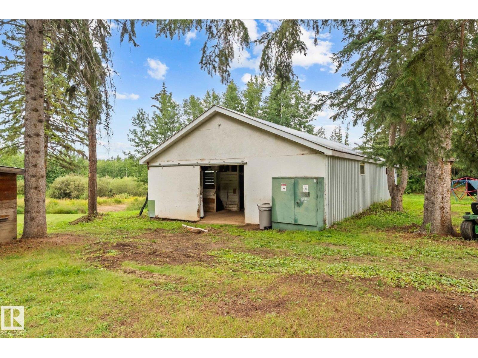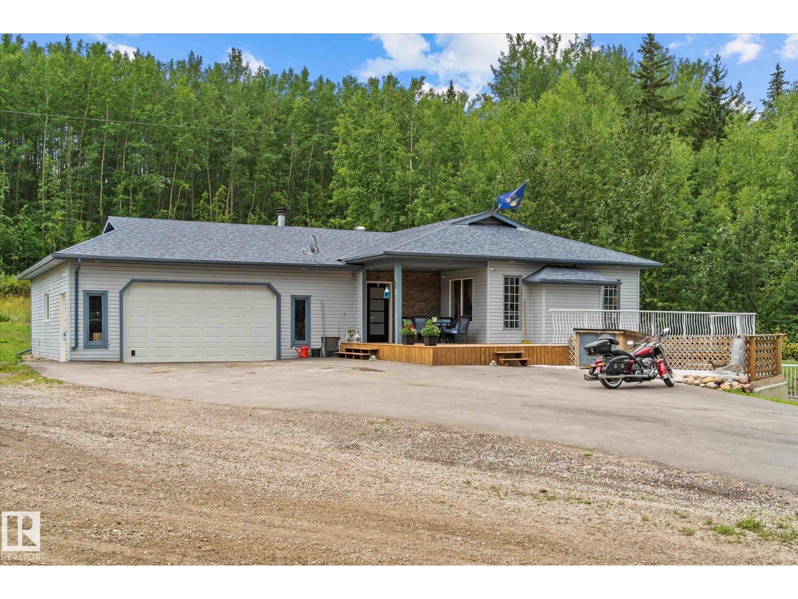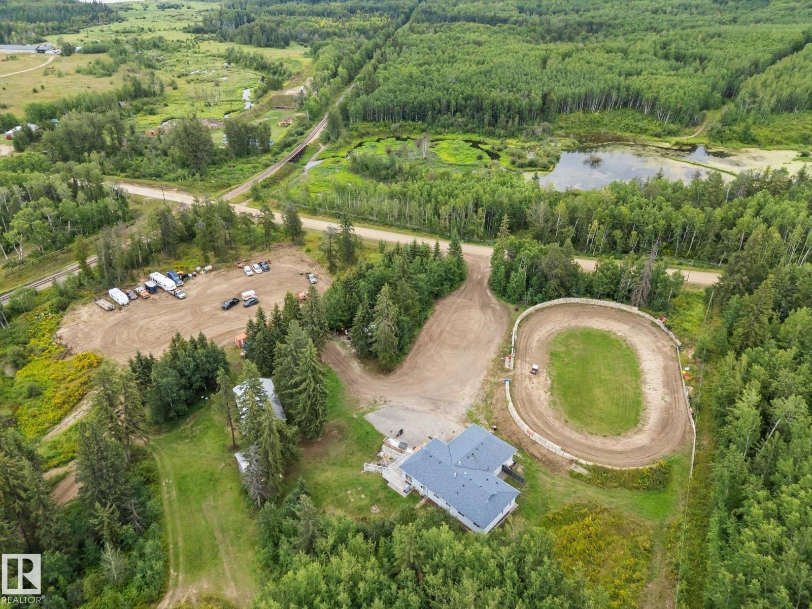 A Rare opportunity for large or multi-generational families looking for a place to build a legacy —this fully serviced 60 acre treed property offers unmatched flexibility & scenic views & wildlife at your door. The custom walkout bungalow features an 4 Bed & 3 bath custom designed layout with 9 ft ceilings, ideal for large family living. A massive heavy duty shop with 3 bay doors, large yard parking yard & 200 amp service includes a roughed-in multi-level residence & is perfect for extended family or business income potential. The barn with stalls, tack area & the arena is just perfectly placed in the front yard. Enjoy 10 km of groomed private trails, two driveway accesses, & a peaceful country setting. Serviced with 2 drilled wells and systems to both home and shop. Located just 20 minutes north of Stony Plain, this property delivers modern space, versatile use, & incredible value—something rarely found in today’s market. (id:63190)