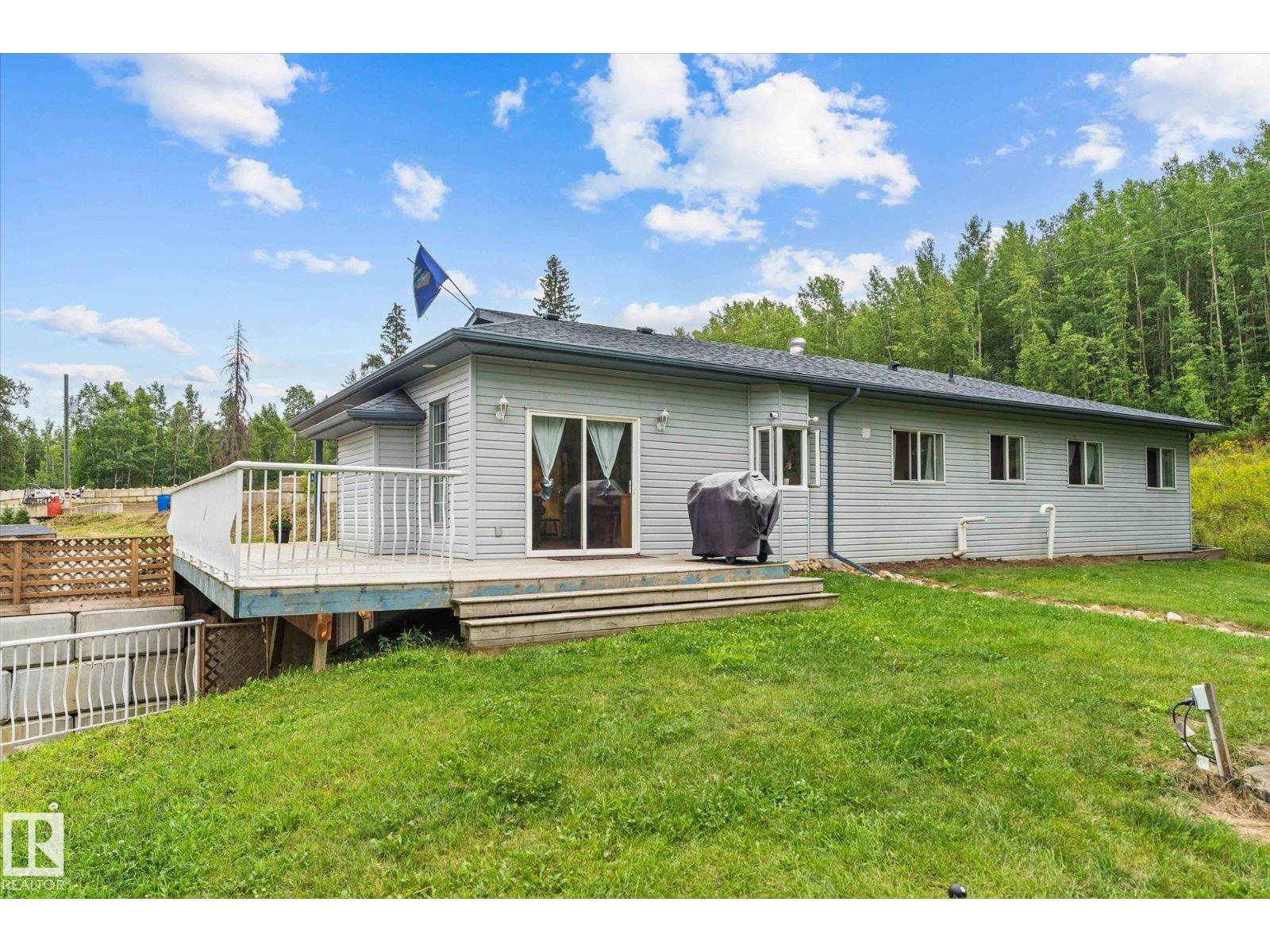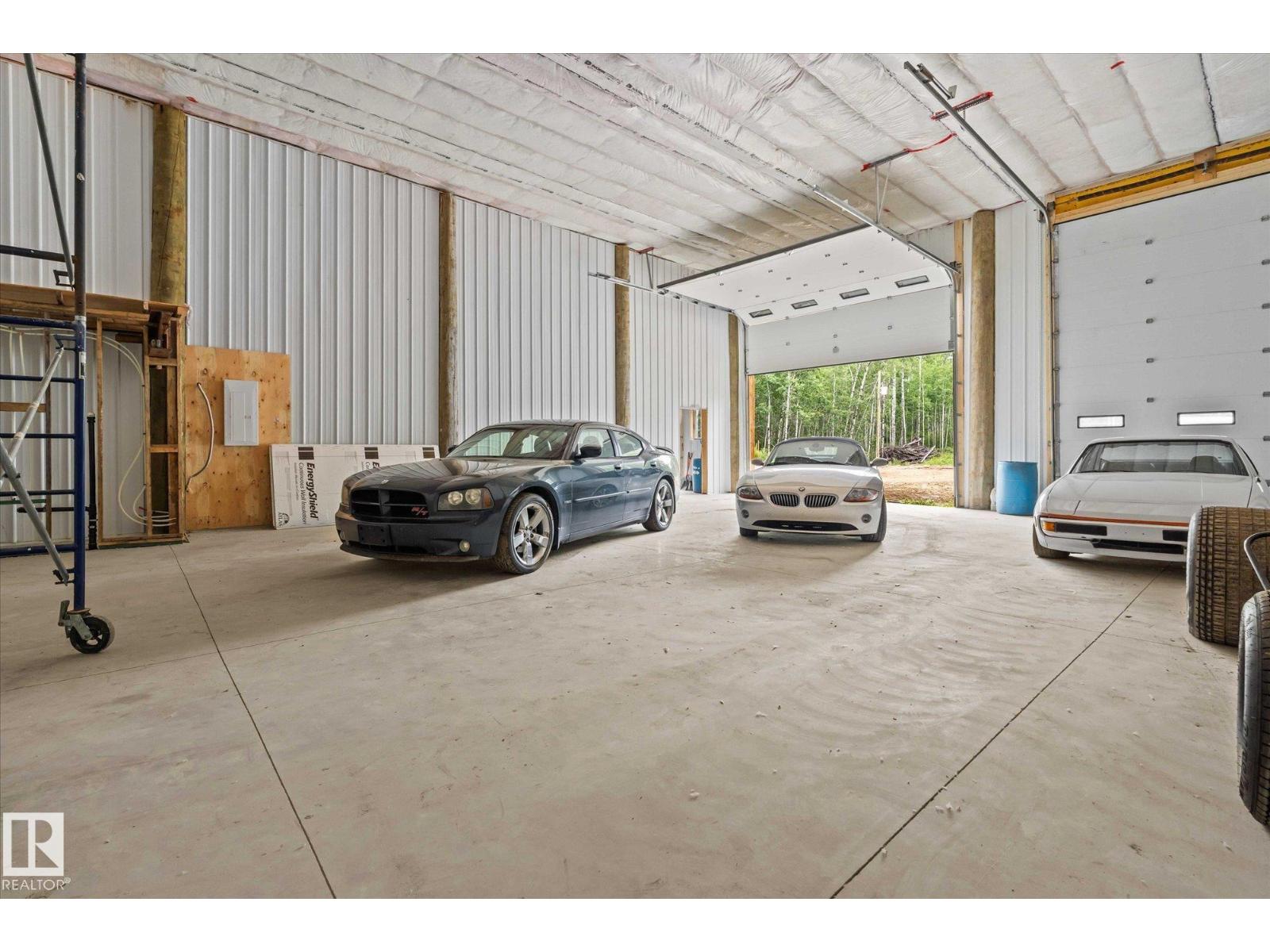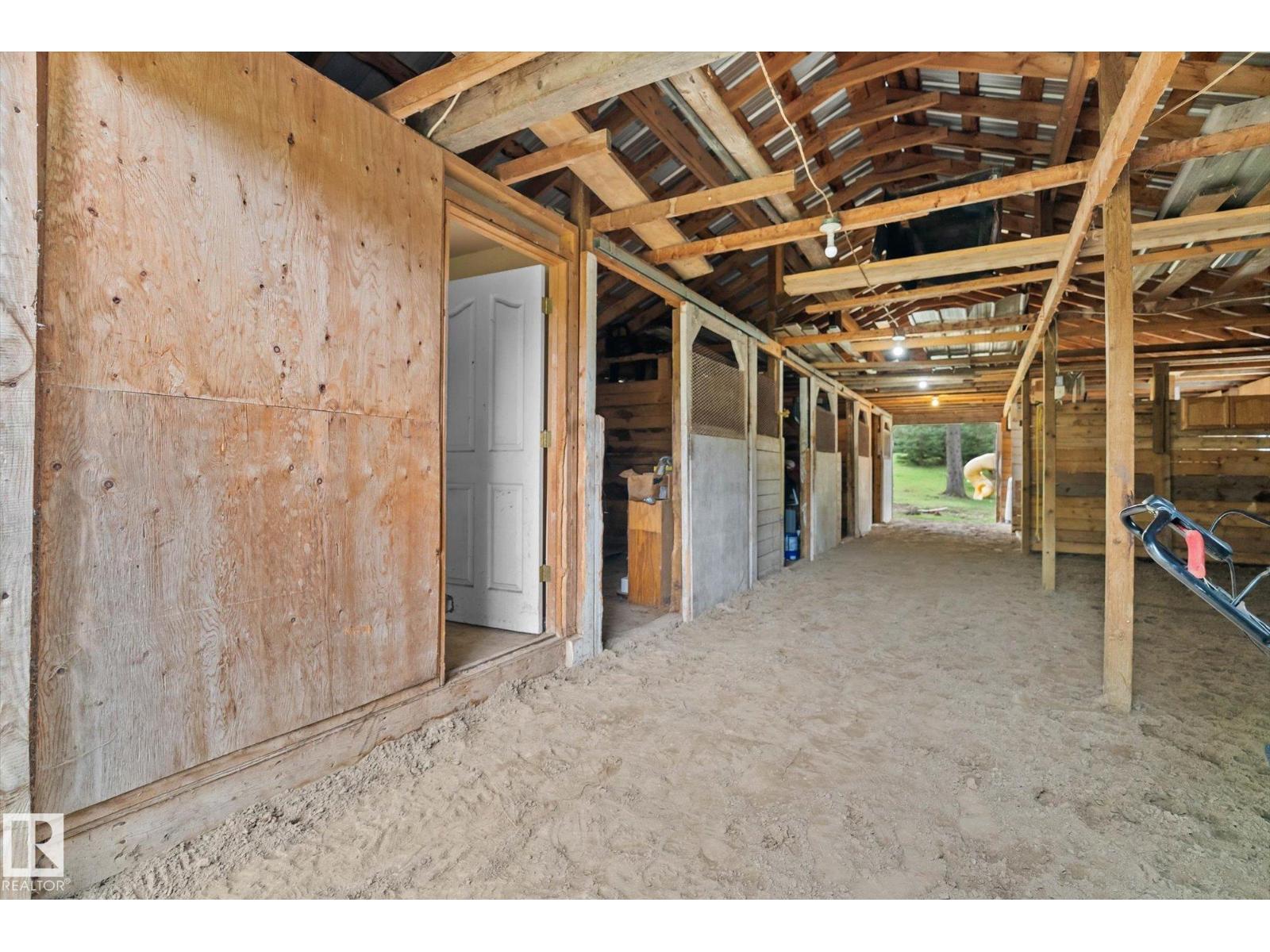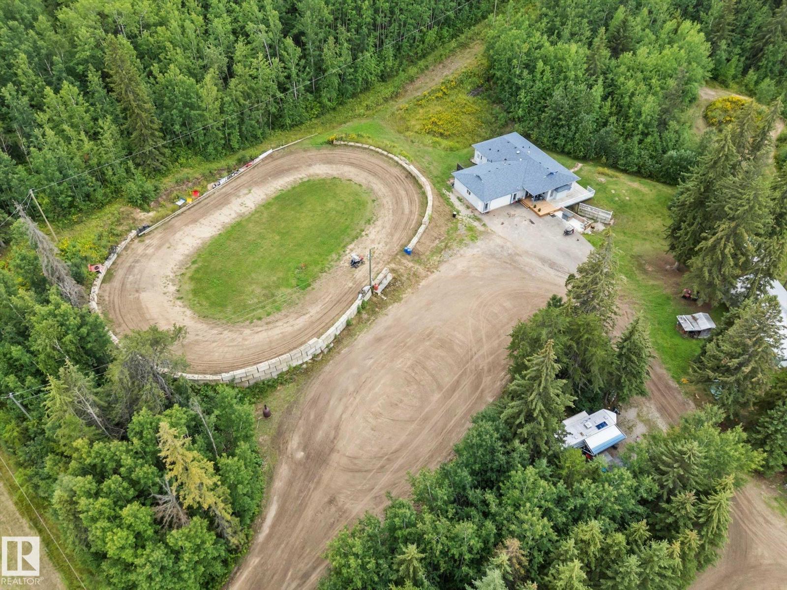 A Rare opportunity for large or multi-generational families looking for a place to build a legacy —this fully serviced 60 acre treed property offers unmatched flexibility & scenic views & wildlife at your door. The custom walkout bungalow features an 4 Bed & 3 bath custom designed layout with 9 ft ceilings, ideal for large family living. A massive heavy duty shop with 3 bay doors, large yard parking yard & 200 amp service includes a roughed-in multi-level residence & is perfect for extended family or business income potential. The barn with stalls, tack area & the arena is just perfectly placed in the front yard. Enjoy 10 km of groomed private trails, two driveway accesses, & a peaceful country setting. Serviced with 2 drilled wells and systems to both home and shop. Located just 20 minutes north of Stony Plain, this property delivers modern space, versatile use, & incredible value—something rarely found in today’s market. (id:63190)