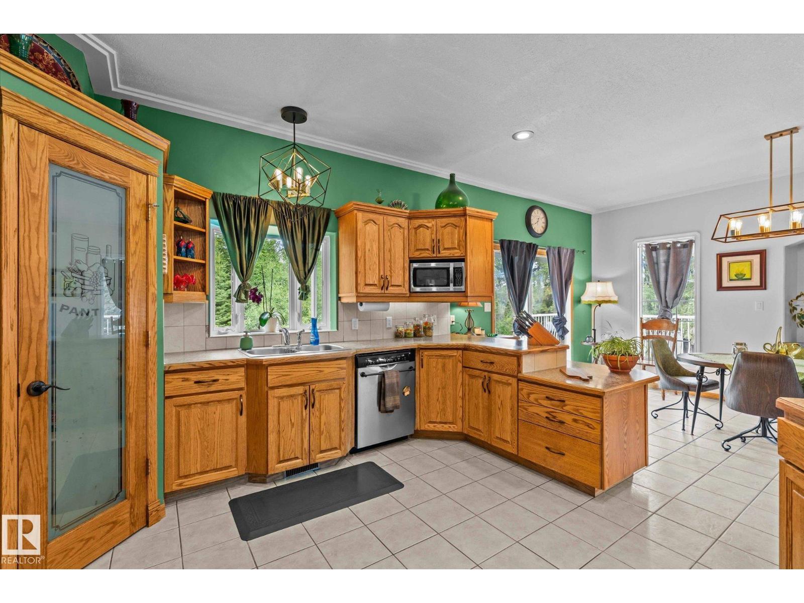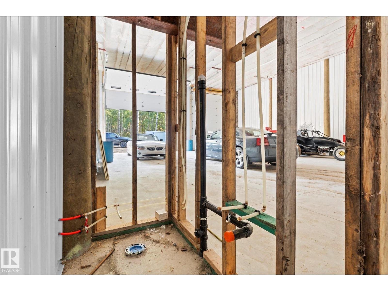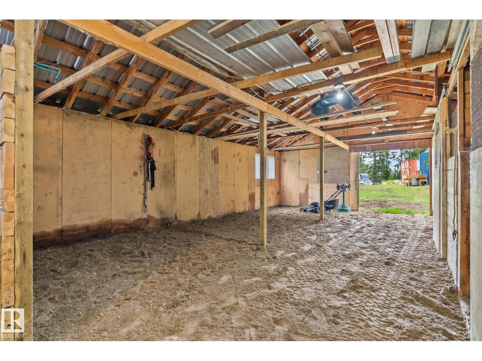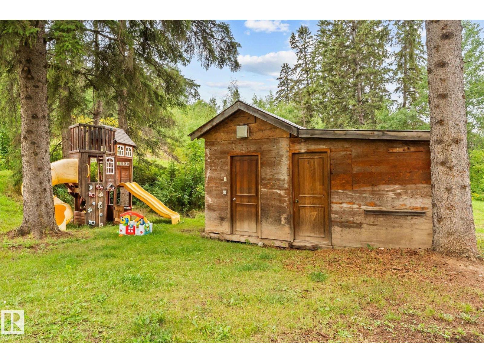 A Rare opportunity for large or multi-generational families looking for a place to build a legacy —this fully serviced 60 acre treed property offers unmatched flexibility & scenic views & wildlife at your door. The custom walkout bungalow features an 4 Bed & 3 bath custom designed layout with 9 ft ceilings, ideal for large family living. A massive heavy duty shop with 3 bay doors, large yard parking yard & 200 amp service includes a roughed-in multi-level residence & is perfect for extended family or business income potential. The barn with stalls, tack area & the arena is just perfectly placed in the front yard. Enjoy 10 km of groomed private trails, two driveway accesses, & a peaceful country setting. Serviced with 2 drilled wells and systems to both home and shop. Located just 20 minutes north of Stony Plain, this property delivers modern space, versatile use, & incredible value—something rarely found in today’s market. (id:63190)