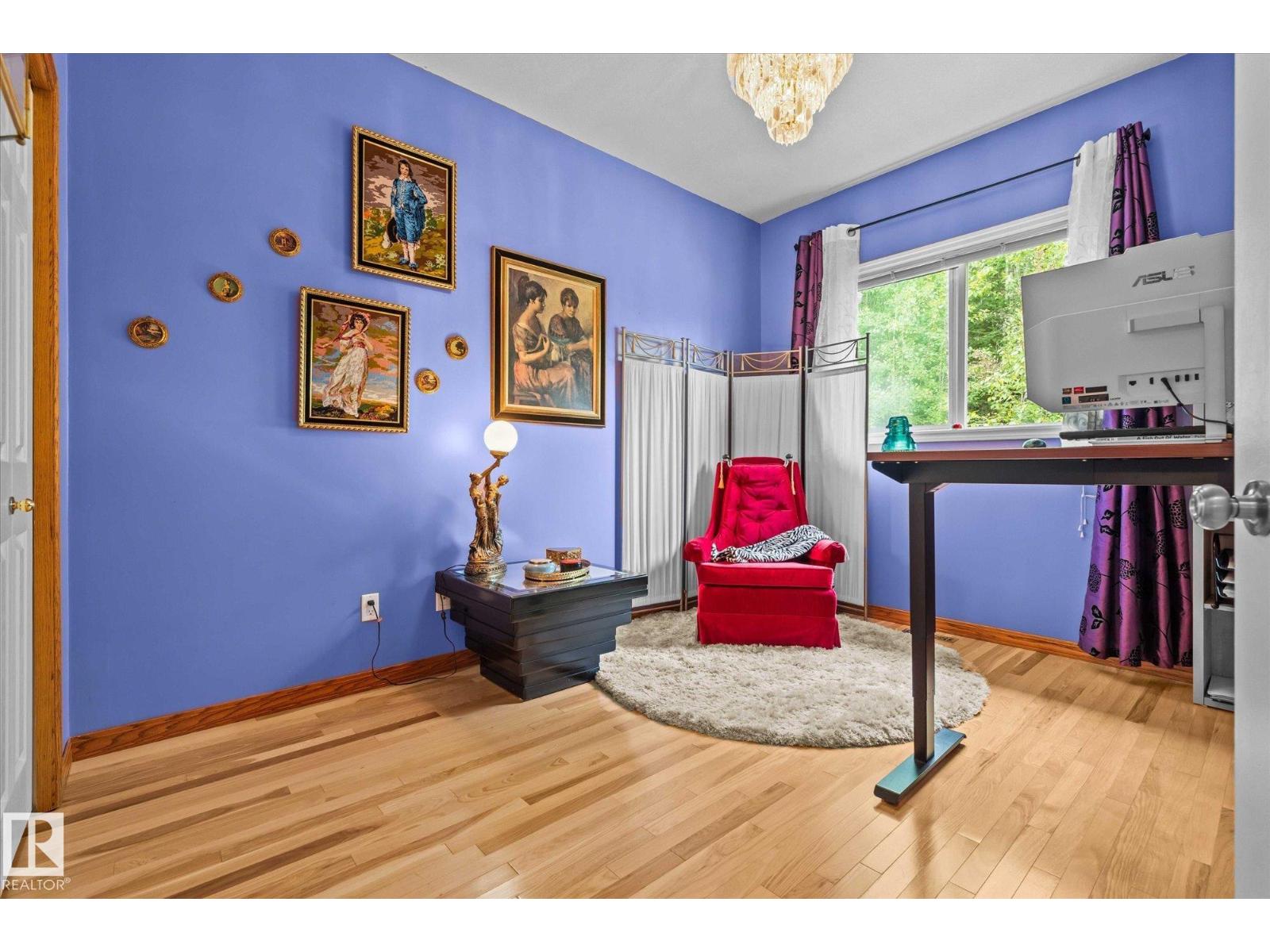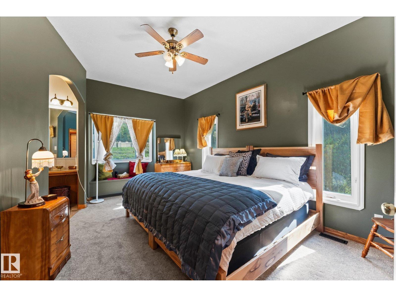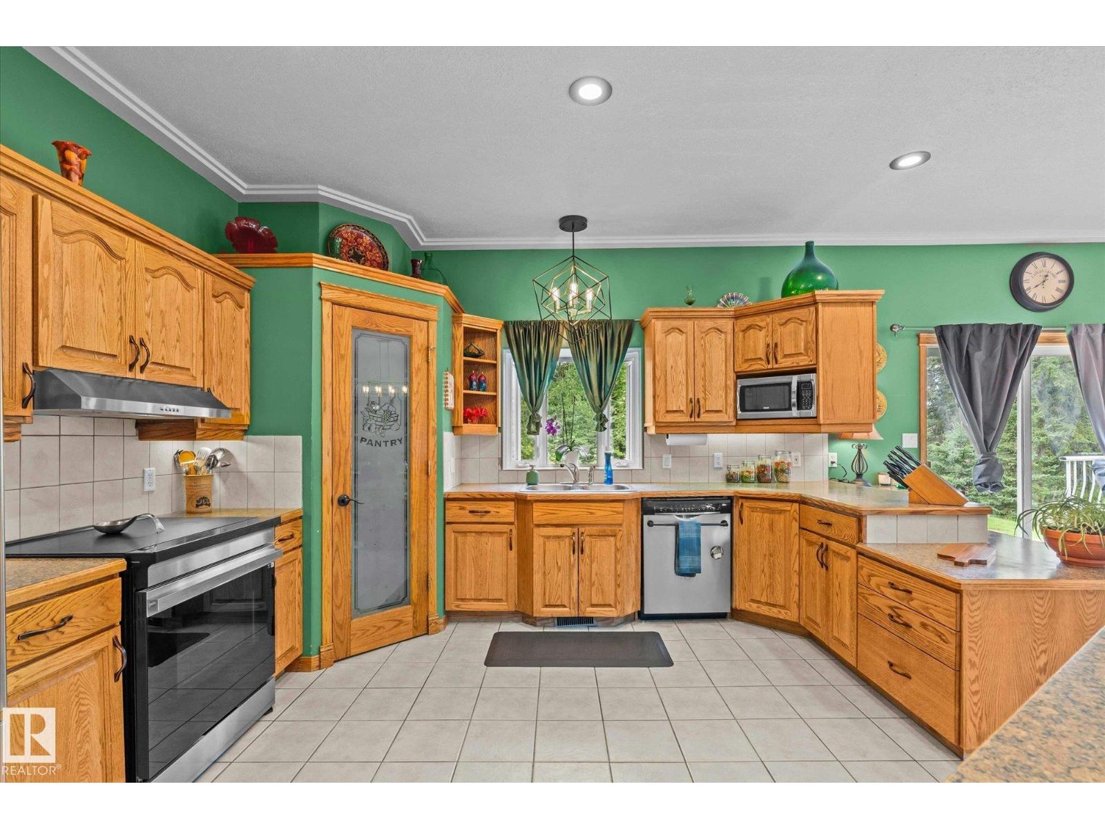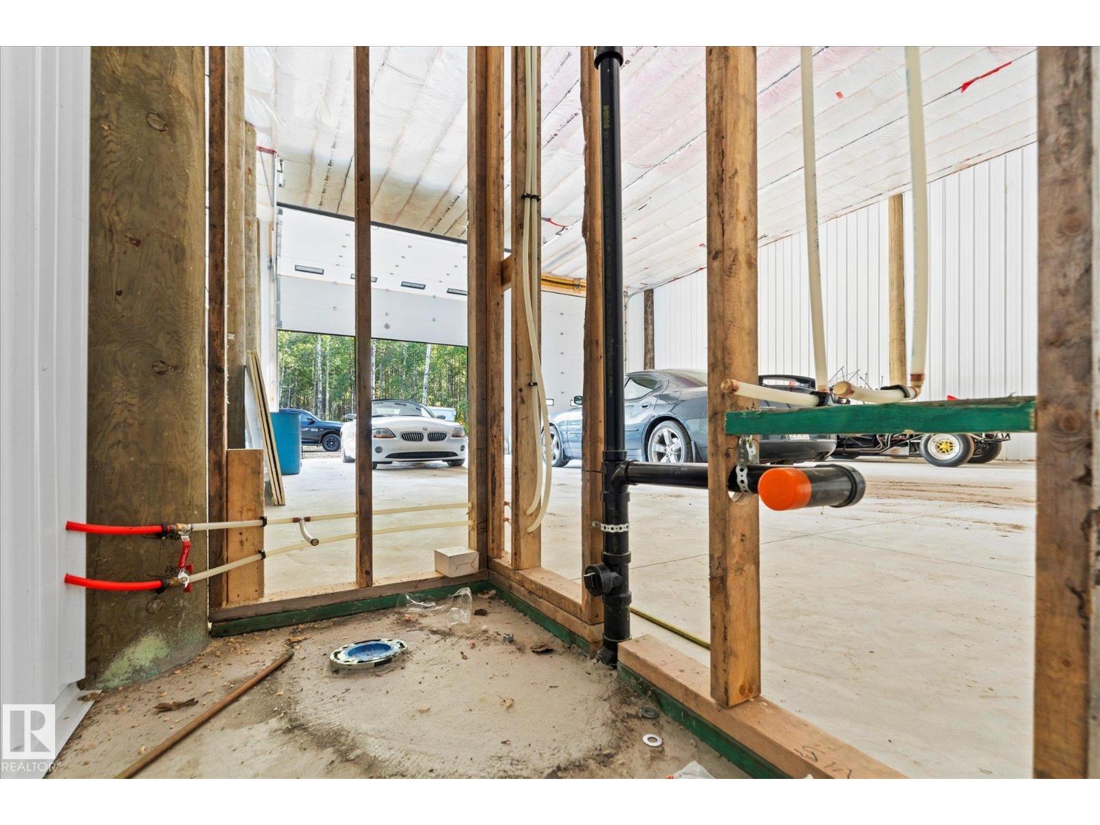 A Rare opportunity for large or multi-generational families looking for a place to build a legacy —this fully serviced 60 acre treed property offers unmatched flexibility & scenic views & wildlife at your door. The custom walkout bungalow features an 4 Bed & 3 bath custom designed layout with 9 ft ceilings, ideal for large family living. A massive heavy duty shop with 3 bay doors, large yard parking yard & 200 amp service includes a roughed-in multi-level residence & is perfect for extended family or business income potential. The barn with stalls, tack area & the arena is just perfectly placed in the front yard. Enjoy 10 km of groomed private trails, two driveway accesses, & a peaceful country setting. Serviced with 2 drilled wells and systems to both home and shop. Located just 20 minutes north of Stony Plain, this property delivers modern space, versatile use, & incredible value—something rarely found in today’s market. (id:63190)