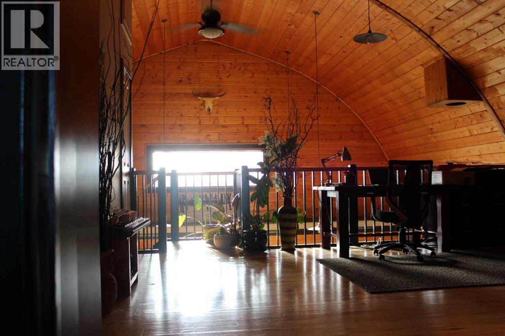 Discover the perfect blend of space, comfort, and functionality ideal for families, or anyone seeking a peaceful retreat. Step inside this spacious three-bedroom, two-bathroom arch-rib home and immediately feel at ease. The open-concept main floor features high ceilings, expansive windows, and a bright, welcoming layout. The large kitchen, family and dining area offer plenty of room for everyday meals or entertainment. French doors open to the south-facing back deck, perfect for sunset barbecues and outdoor gatherings. Upstairs, the primary bedroom impresses with a walk-in closet, five-piece bathroom and a private balcony where you can enjoy stunning country views and your morning coffee or evening unwind. A bonus loft area with railings overlooks the lower level, adding a touch of charm and versatility. Two additional bedrooms, family room and a full bathroom complete the main level. Past updates include newer windows, metal siding, French doors on the south side, updated kitchen cabinets, and a Blaze King wood stove in the entryway. The home has been exceptionally maintained and shows pride in ownership throughout. The impressive 30 x 50 metal-clad shop is fully equipped with in-floor heat, a mezzanine, and two powered overhead doors-ideal for business use, projects or extra parking space. Additional outbuildings include a long cabin sauna with cedar finishings, a shed with attached pole sheds on each side, a cedar greenhouse, and a Sea-Can building set up with radiant heat system, optional to connect. This property is connected to a water co-op system and features an outdoor wood boiler that can heat both the house and shop, if connected. The beautifully landscaped yard includes a garden area, creating a picturesque country setting. A true real gem-perfect for raising a family, running a home business, or simply enjoying the quiet beauty of country living. Note: This property is in the process of having the subdivision completed. Everything is a pproved, just waiting for transfer. Taxes to be determined once the subdivision is final. (id:63190)