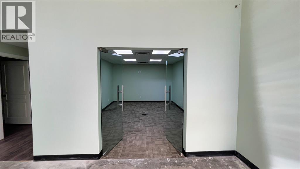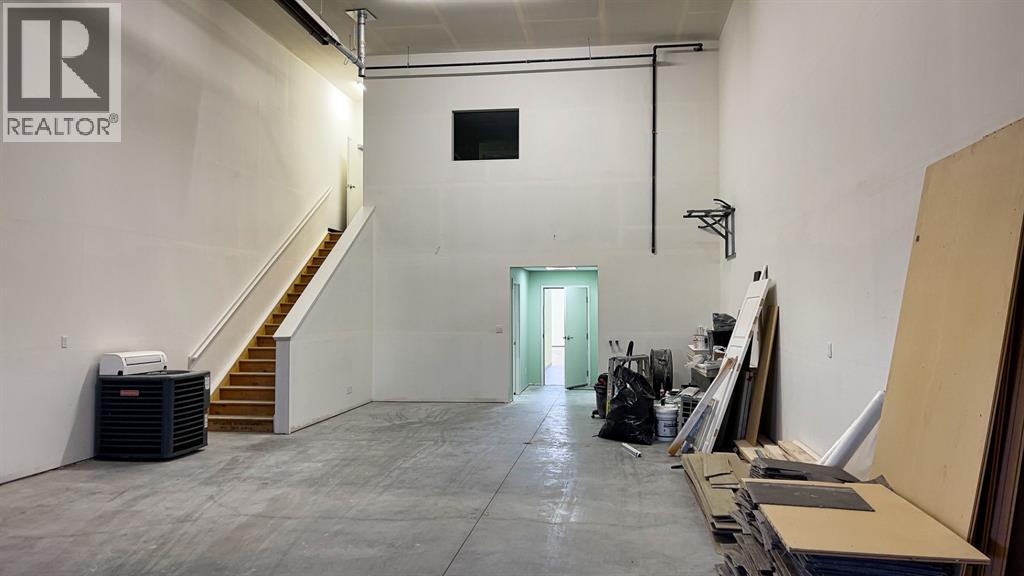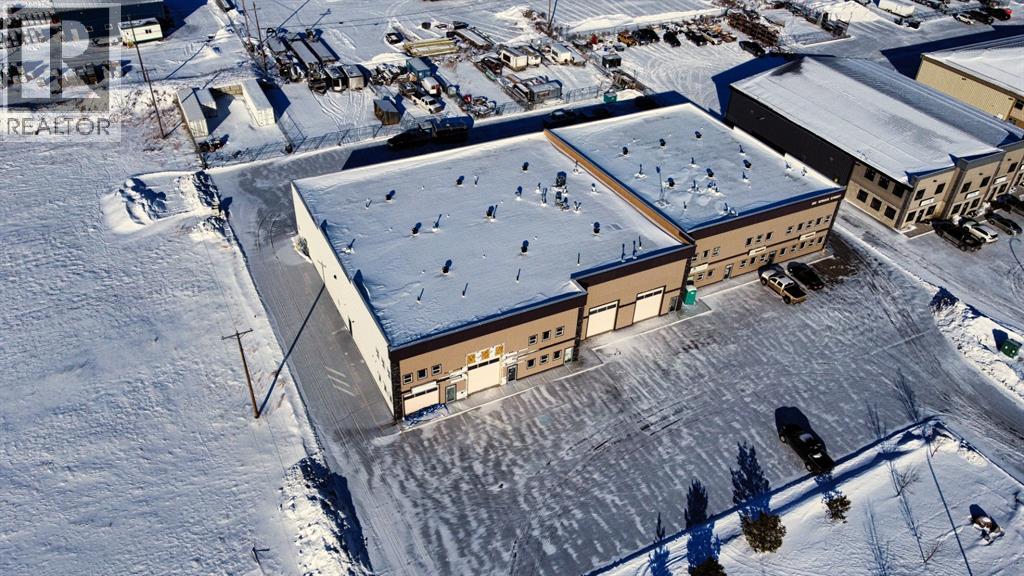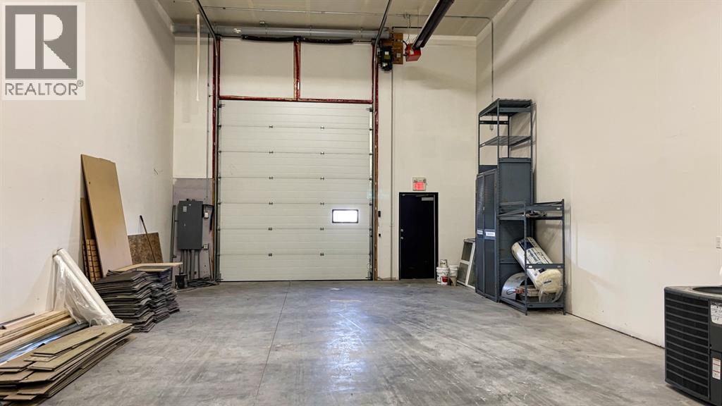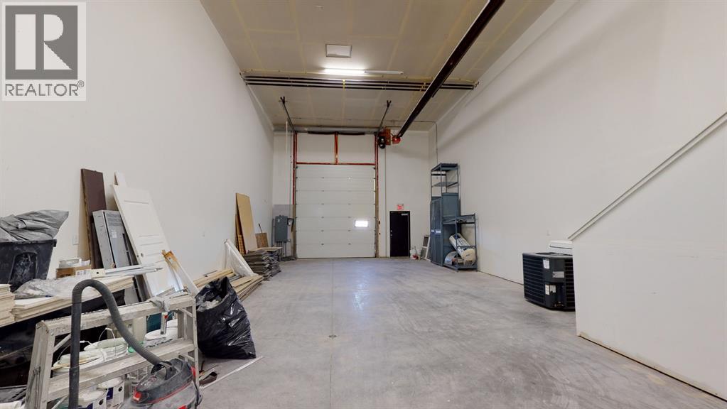 Currently leased until March 14, 2028 to a low impact tenant-6.4% cap rate. (Fenced storage compound does not form part of this lease and could possibly be leased to generate additional income to increase cap rate to over 7.5%, or used for storage for buyer.). Ideal south side location in Piper Creek Industrial park, just south of the Westerner grounds/Centrium. This building was constructed in 2015 and shows near new, with a 2751 sq. ft. footprint (Condo plan measurement) and 3332 total developed space (Interior measurements) including mezzanine with exterior fenced storage compound. This incredible space has both a front drive 14 ft. overhead door and a rear drive 14 ft. overhead door with two separate bays and office space in the centre. The possibilities are endless, as the front could be used as a show room or additional shop space, or could be sub-let to a tenant. Also ideal deal for the hobbyist or business owner that desires some extra space for a man cave. Both the front and back shop/showroom spaces have overhead radiant heat, front bay is 24'x 34', rear bay is 24'x55'. The office mezzanine has force air. The upper mezzanine consists of two offices, a bathroom and a kitchen room. The lower central space below the mezzanine has another large room ideal for show room/reception or office space, plus two additional rooms that could be used for storage or small office and another bathroom. Front bay flooring has been left bare concrete as the new owner may decide they want carpet for a showroom, epoxy, paint, or leave as is, The front parking area is paved as well as the rear access and parking. (id:63190)