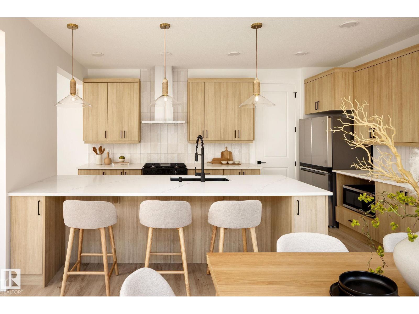 Stunning home in desirable Keswick. A double attached garage and grand open-to-above foyer set the tone for this light-filled, contemporary haven. The open main level features a chef’s dream kitchen with warm light-wood cabinetry, 3cm quartz countertops, gas line to the stove, walk-in pantry and seamless access to the garage. Upstairs, a bright flex space anchors the perfect family layout—complete with convenient laundry, a chic main bath, media room and 3 bedrooms. The elevated primary suite impresses with a vaulted ceiling, spa-inspired 5pc ensuite with freestanding tub, double sinks, tiled shower, private water closet, and a generous walk-in closet. $5,000 appliance credit included. PRE SALE, estimated start January- tentative completion June/July. Photos & VT from a showhome (same model) & may differ; interior colors are not represented, upgrades may vary, NO FIREPLACE, no appliances. (id:63190)