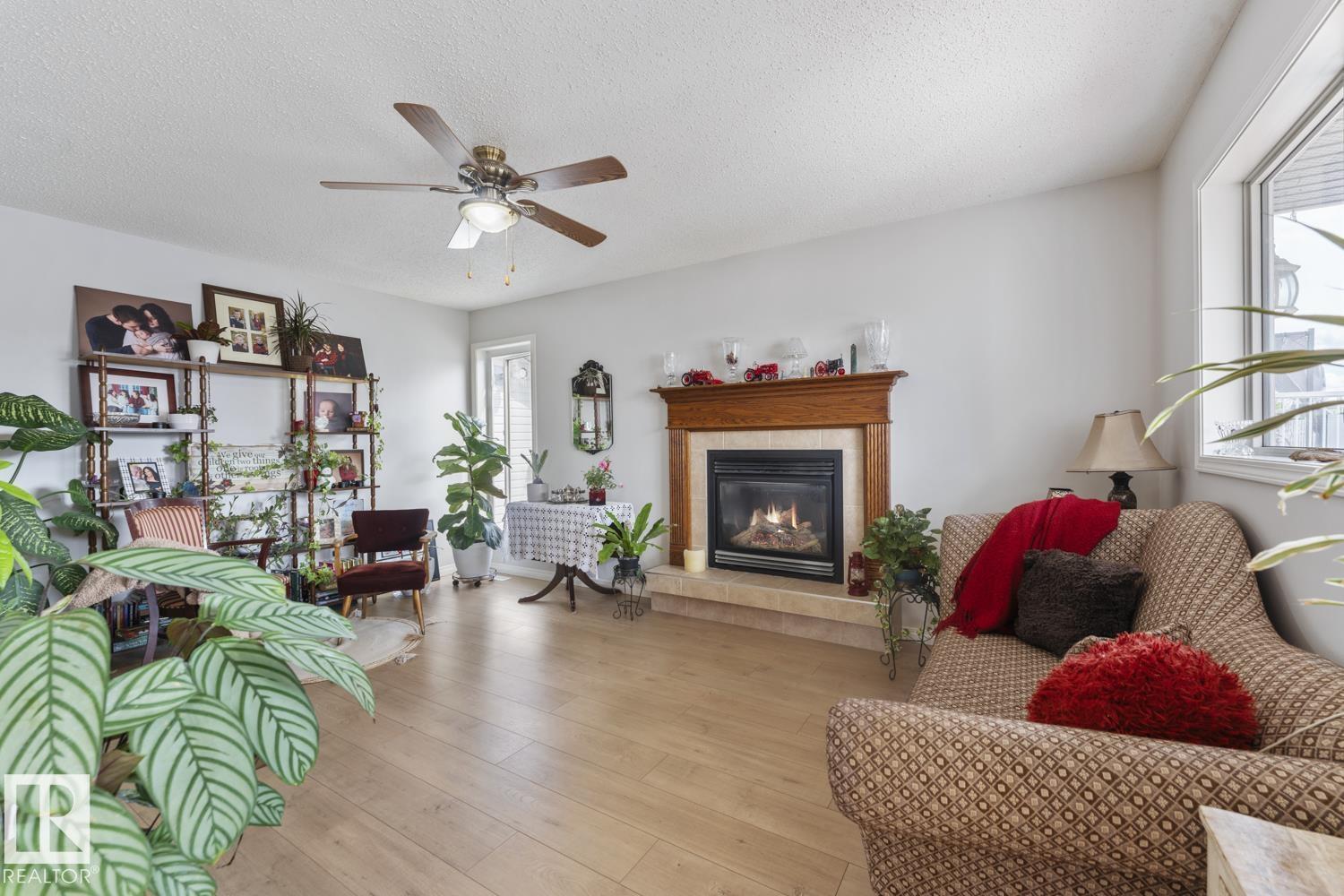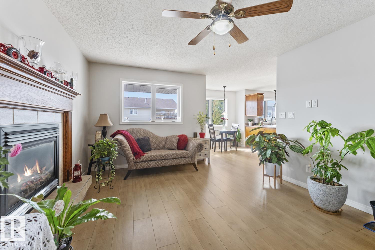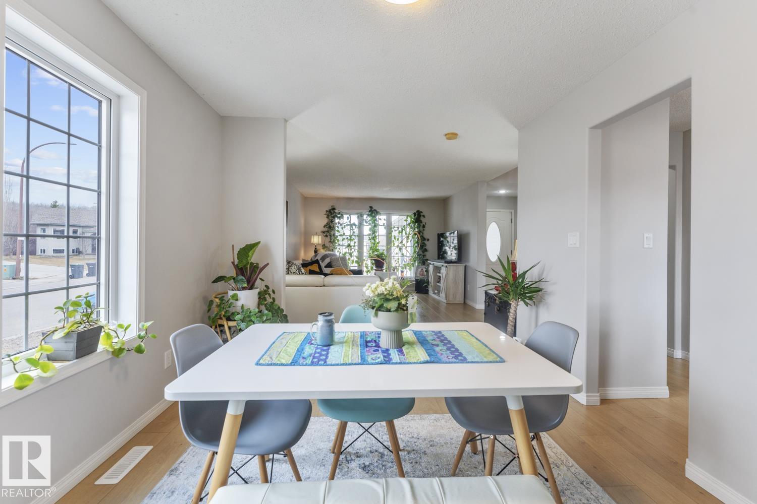 Great family home in the prime location of Lakewood Estates, just a stone's throw from the lake and MD Park. This property boasts a heated triple garage and a oversized driveway, all situated on a corner lot. The home has nice curb appeal, featuring a covered entry and a welcoming front porch. Inside, you'll find a spacious entrance, fresh paint throughout and new flooring on the main level. Enjoy a formal living and dining area, as well as a cozy family room with gas fireplace and an eat-in kitchen perfect for casual gatherings. The kitchen is equipped with ample cabinetry and counter space, complemented by large windows that overlook the fully fenced backyard, which includes a deck with N/G hookup, shed & firepit Area. Upstairs, you will find 2 large bedrooms and a 4pc bathroom and a generous primary bedroom includes a ensuite bathroom with a soaker tub and shower. The basement is currently unfinished, presenting tons opportunity for you to create your ideal space. (id:63190)