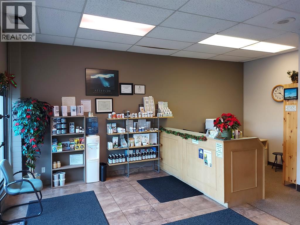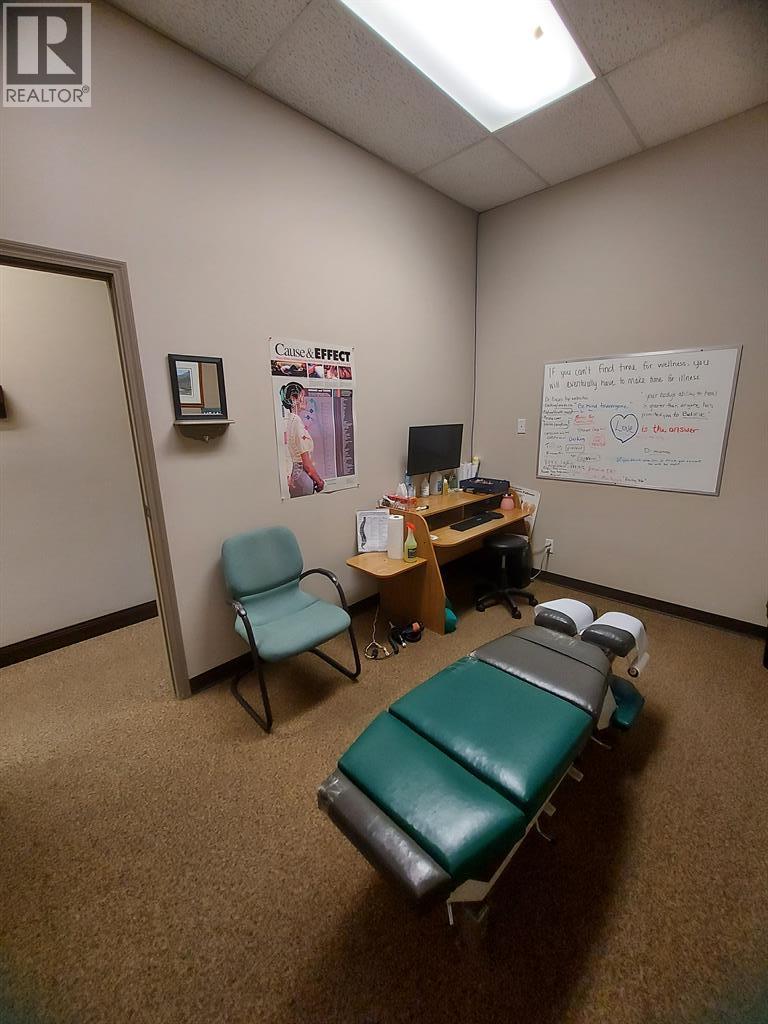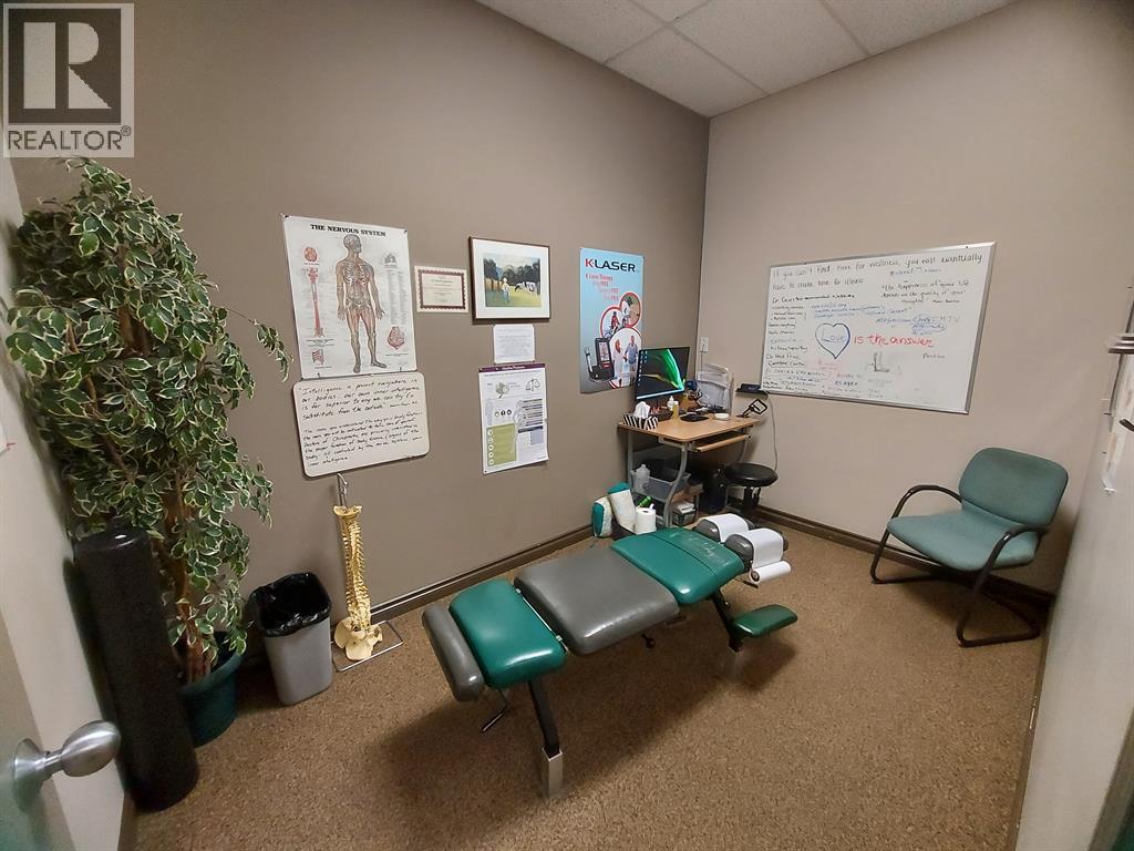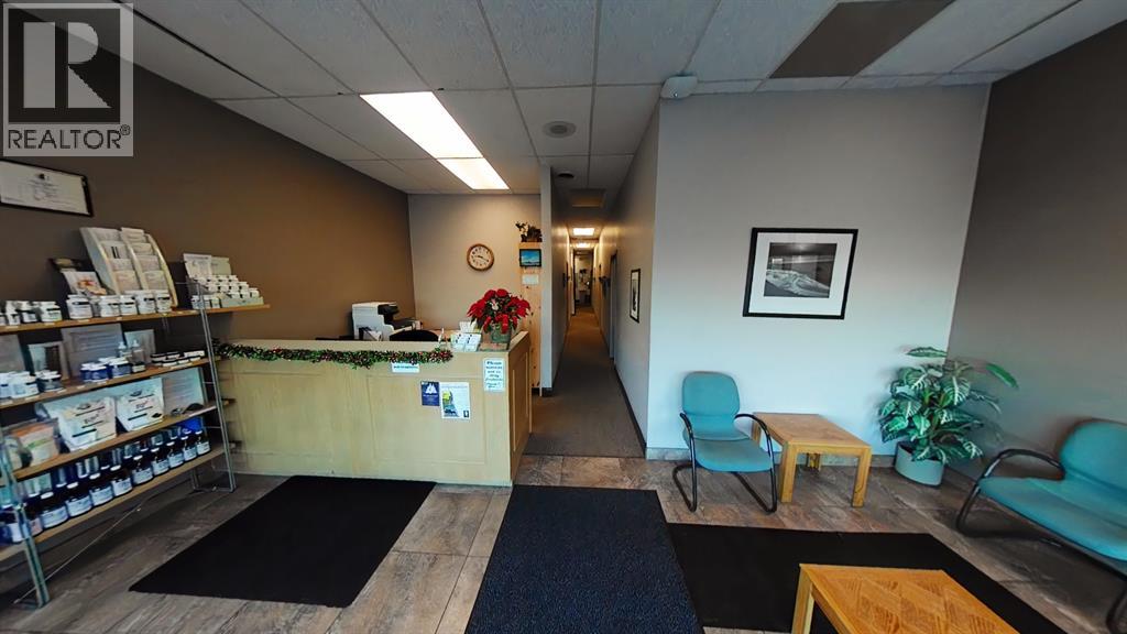 This 1,400 SF unit, located in busy Pines Plaza, is currently being used as a Chiropractic office. The space features an open reception area with a built-in desk, two private offices, six treatment rooms, a storage closet, and one washroom. The reception area has large windows that bring in plenty of natural light. Common paved parking is available in the front of the unit. This location offers high visibility from Gaetz Avenue, with thousands of cars passing by daily. The property is professionally managed by Sunreal Property Management. Additional Rent is estimated at $9.54 per square foot for the 2025 budget year. (id:63190)