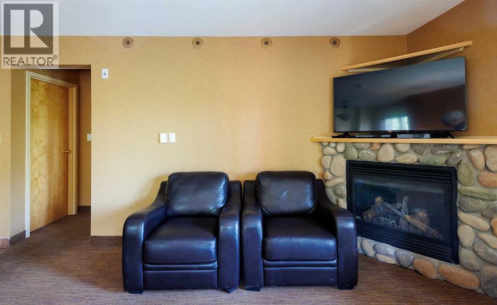 MOTIVATED SELLERS!!! Nestled quietly in the beautiful Cypress Hills, Elkwater is a year-round recreational garden of delights. Only a 40-minute drive from Medicine Hat, this flourishing resort oasis offers an abundance of vacation activities: boating, water skiing, fishing, biking, golf and hiking in the summer; skating, downhill and x-country skiing in the winter. This impressive 1,122 sq.ft. 2 bedroom / 2 bath condo is located in Elkwater Lake Lodge, which offers a delightful restaurant, pool, hot tub, fire pit and room service. The main unit boasts the popular open floor plan, which is awash in natural light flooding in from the numerous windows. A fully stocked kitchen offers an abundance of cupboards, an upgraded double sink and high-end faucet, and the 2-seat island and countertops have been re-done in granite. A separate dining area abuts a spacious living room, which comfortably sits 6 people and features a river stone gas fireplace. A generous wraparound deck (with gas hookup) is accessed via the living room and affords a quiet, relaxing retreat to "chill out" and take in the wooded views. A large bedroom and a 4-piece bathroom with a soaker tub completes the main unit. The adjoining studio suite, which also has a separate entrance, offers a spacious bedroom (kingsize bed) with access to a private deck, along with a coffee bar, mini-fridge, microwave and sink, and a 3-piece bath. This ideally located condo is only a short walk to the downtown marina, sandy beach, lake, restaurant and popular cafe. Priced ridiculously below assessed value, this is a solid investment opportunity for a single family or even as a group venture. Furthermore, this Phase 1 condo is part of a revenue generating rental pool. Owner is allowed 120 days usage throughout the year with the remaining time available in the rental pool. THE OWNER RECOUPS 60% OF ANY RENTAL REVENUE, WHICH BASICALLY PAYS THE MONTHLY CONDO FEES AND ELECTRIC BILL. It comes with all the appliances and is fully furnished. This "must see" property is an all-season getaway at a very affordable price! (id:63190)