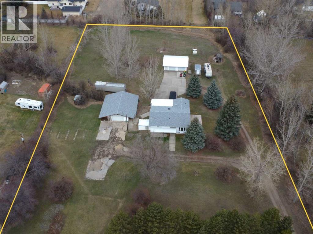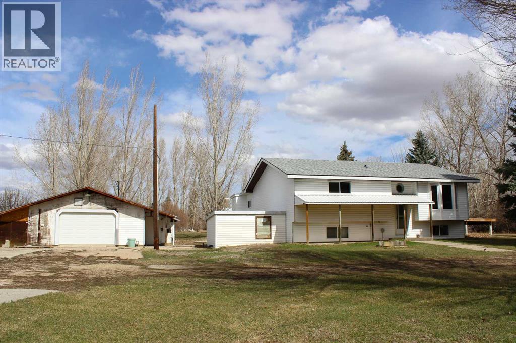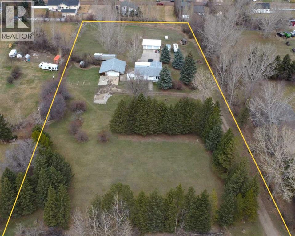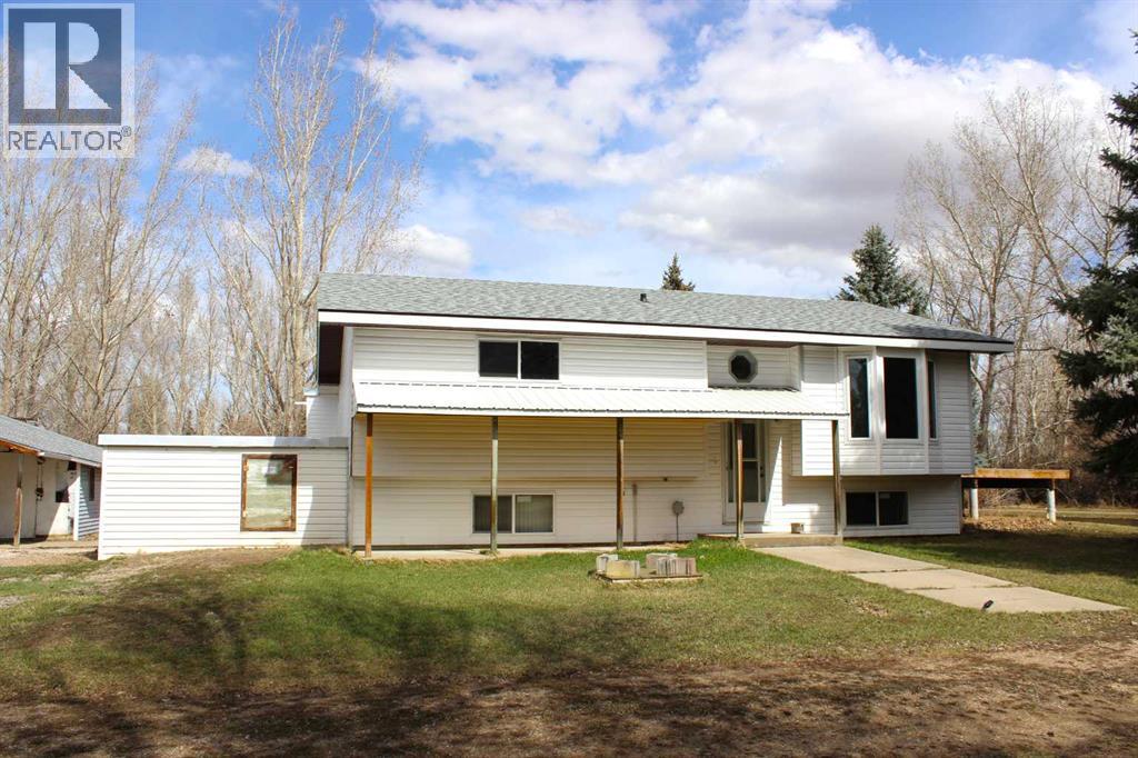 ACREAGE LIVING MEETS URBAN CONVIENIENCE. Tucked away on 3.6 acres of gorgeous treed land, this cozy bi-level home gives you the best of country living just steps from the city. The main floor features a bright updated kitchen, newer modern wood-grain flooring, and updated bathrooms—all designed for comfortable, and everyday living. With two bedrooms and a welcoming layout, the home feels peaceful and practical. An area suitable for a future primary ensuite bathroom! A fully framed, basement, ready for your personal touch and design. The property shines outdoors too: a detached double garage (32' x 28'), plus a single heated garage with workshop space (24' x 44'), provide room for vehicles, projects, and storage. Whether you’re looking to garden, explore, or simply enjoy the shade of your own mature trees, this acreage offers space to breathe while staying close to everything you need. Call today, and discover for yourself. (id:63190)