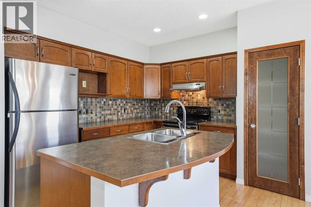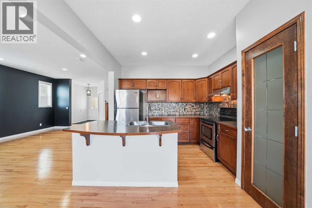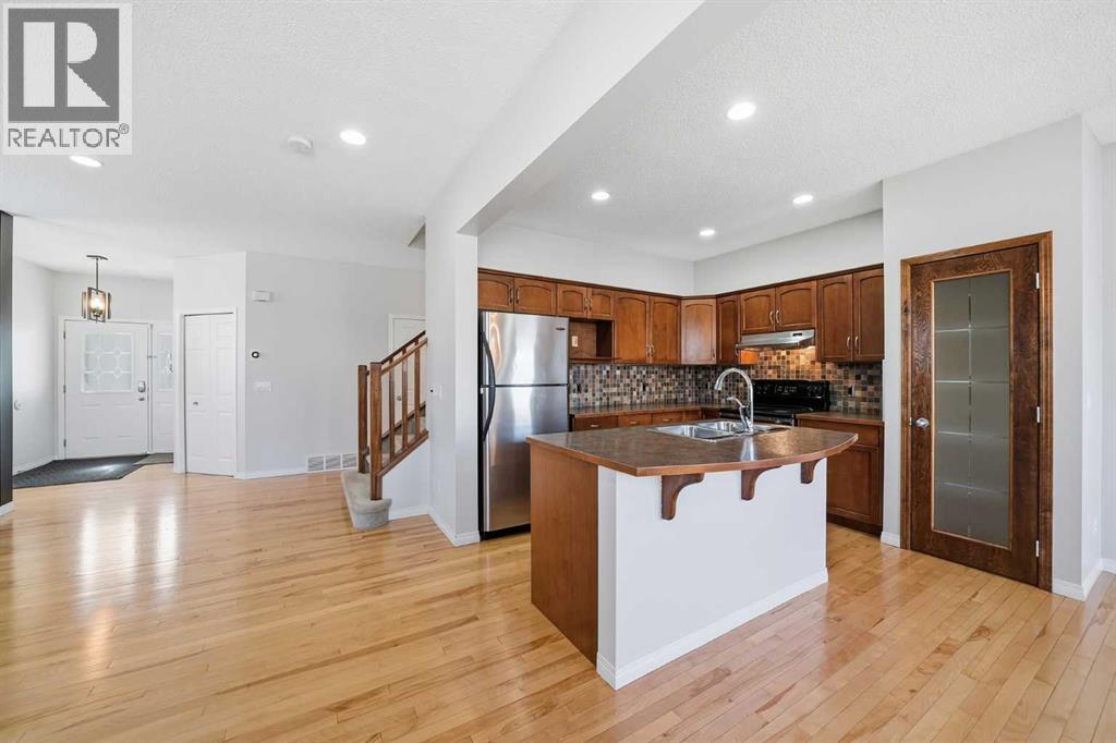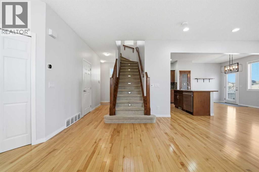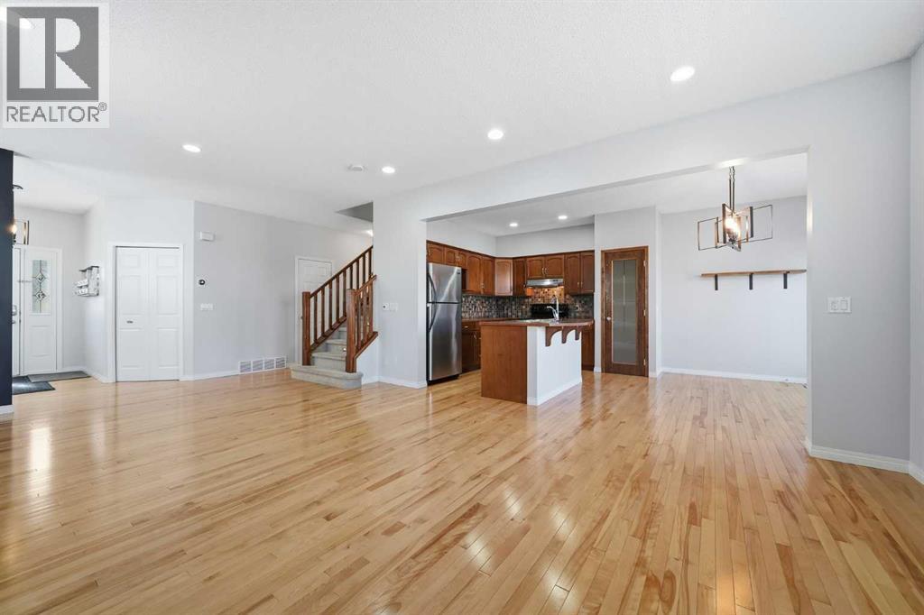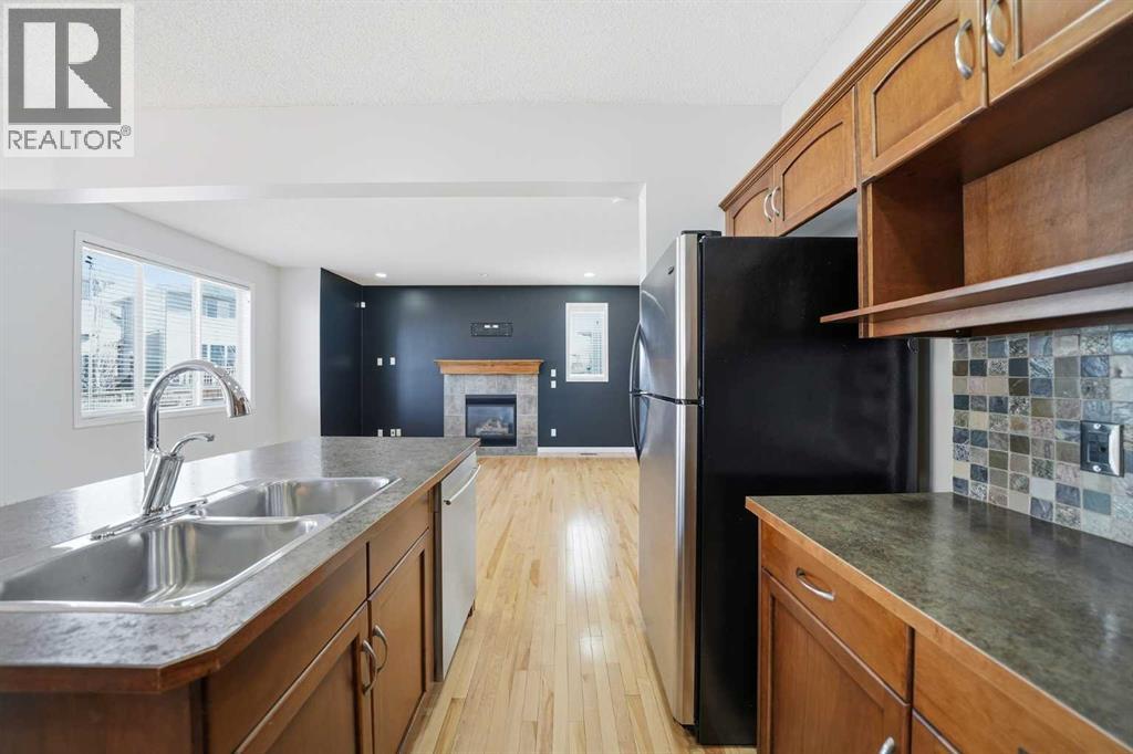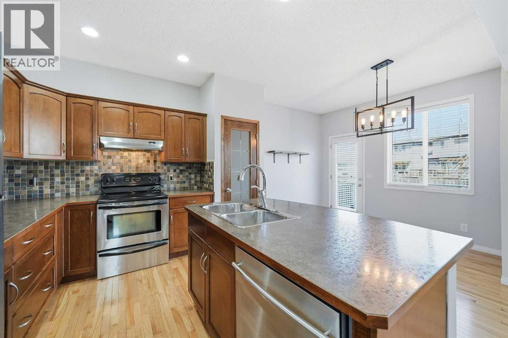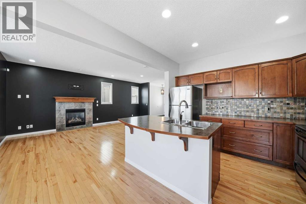 Welcome to 155 Cimarron Grove Circle, tucked away on a quiet street in the popular community of Cimarron. This well-designed 4-bedroom, 4-bathroom home offers the perfect blend of style and functionality. With real hardwood flooring, comfy carpet, and tiled bathrooms, this family home is sure to impress.The main floor features a bright, open-concept layout. The kitchen showcases maple cabinetry, Stainless steel appliances and a natural slate backsplash, flowing seamlessly into the inviting living room, complete with a cozy gas fireplace. A convenient 2-piece bathroom finishes off this level.Upstairs, the spacious primary bedroom includes a generously sized ensuite, creating a private retreat. Upper-floor laundry adds great convenience. 3 additional bedrooms, a bonus room/loft, and a 4-piece main bath complete the second level!The fully finished lower level offers even more living space with a large family room and another 4-piece bathroom. The heated double garage ensures year-round comfort.Outside, enjoy the sun on the large deck overlooking the ample pie-shaped yard—perfect for kids, gardening, or a future firepit area. With back-lane access, there’s room to store extra toys if needed.This beautifully designed home also features central air conditioning, offering everything you need in a fantastic location. (id:63190)