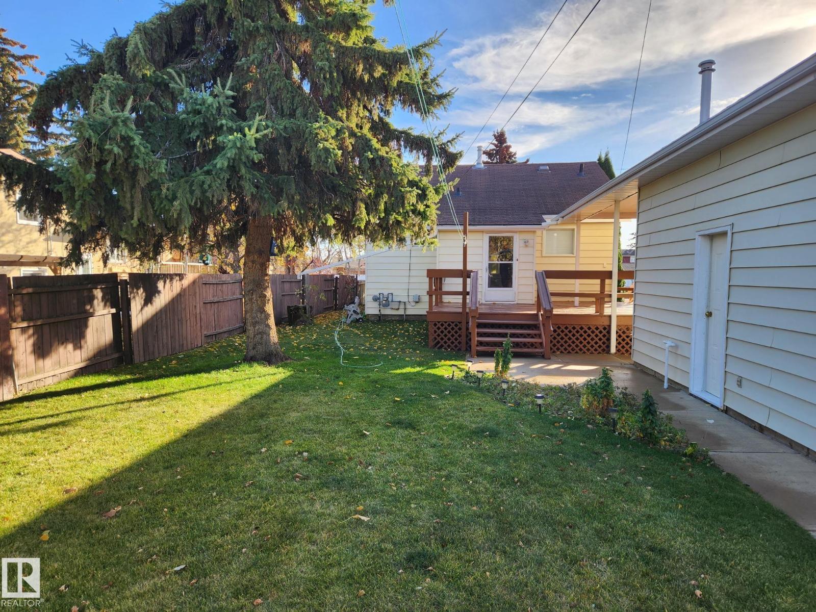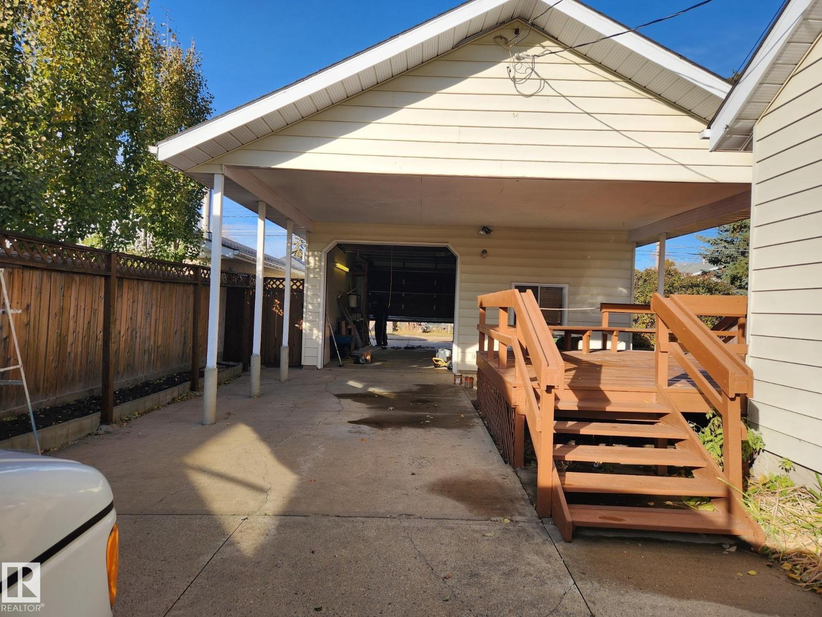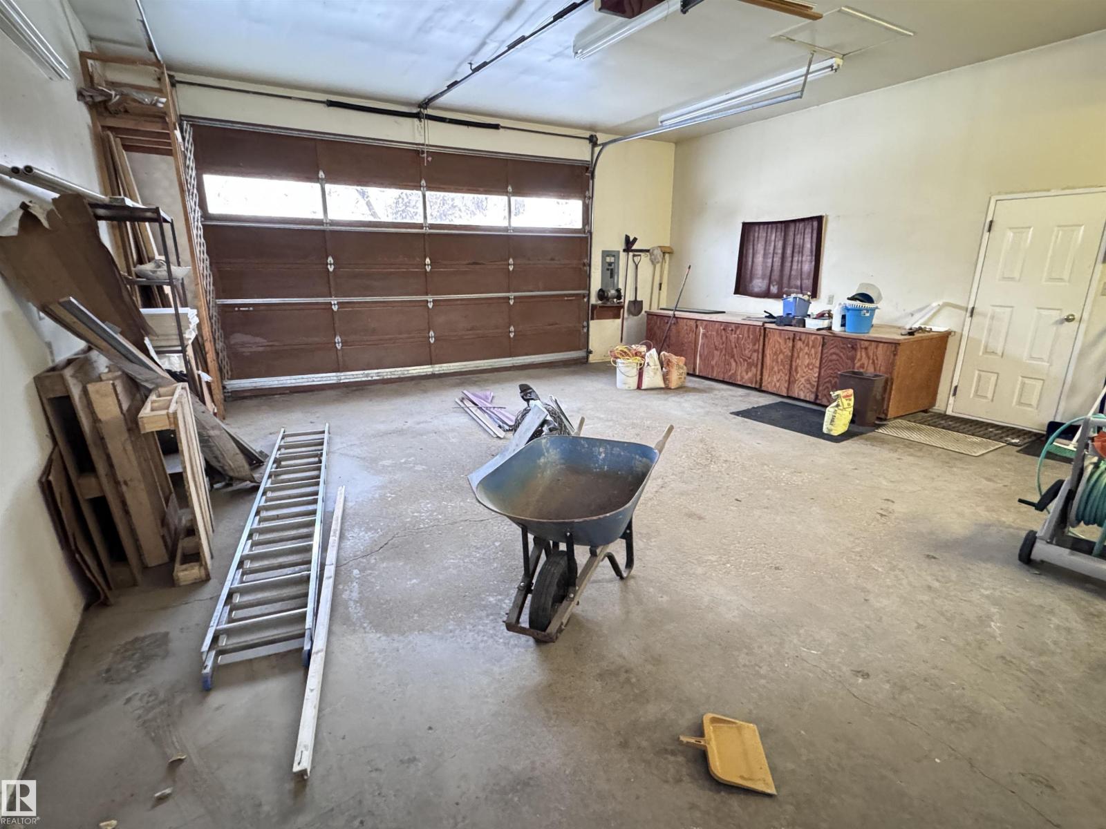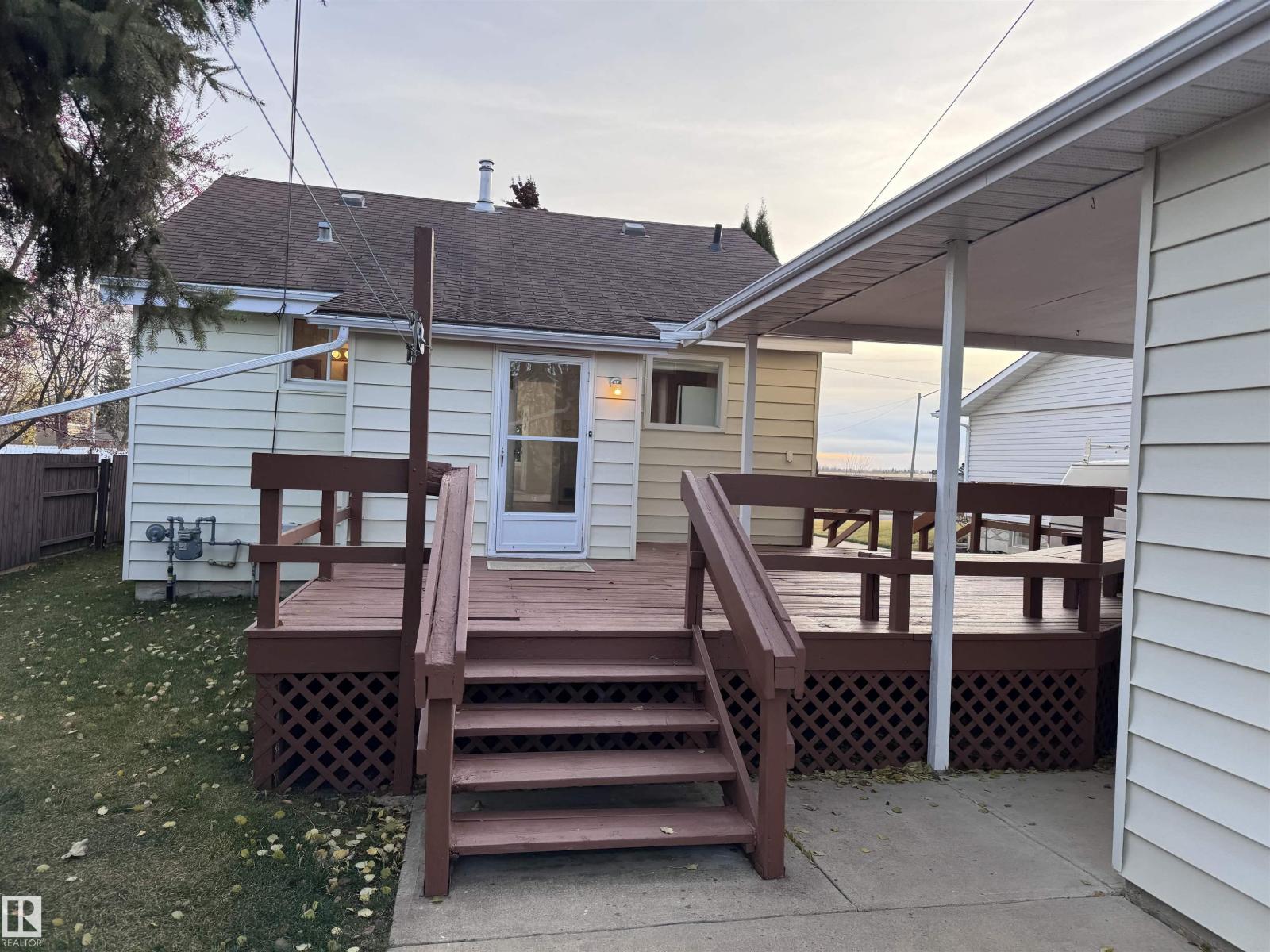 Tidy and full of character is this 900 sq.ft. bungalow in the fabulous Southview area of Westlock. Oak kitchen cabinets with sunshine box light & built-in microwave. Bright living room is right-sized & has a garden window. 2+2 bedrooms. Bright front den. Main floor laundry at rear entrance. Full bathroom is attractively appointed & has a jet-soaker tub. Basement features a 3-piece bathroom, rumpus room, 2 bedrooms & storage. Massive 26x24 heated, lined, 12' high wall, 10' high doors garage with carport on the front of it. Overhead doors on front and rear of garage (drive right through). Covered deck is large and will be repaired to ensure the next summer BBQ is enjoyable. Super-sized driveway in front, plus double parkpad at rear. 2 blocks to downtown core. 2 blocks to Westlock Rotary Spirit Centre (multi-plex sports facility). Close to schools, playground & grocery store. 2012 Hot Water Tank, Newer HE furnace. (id:63190)