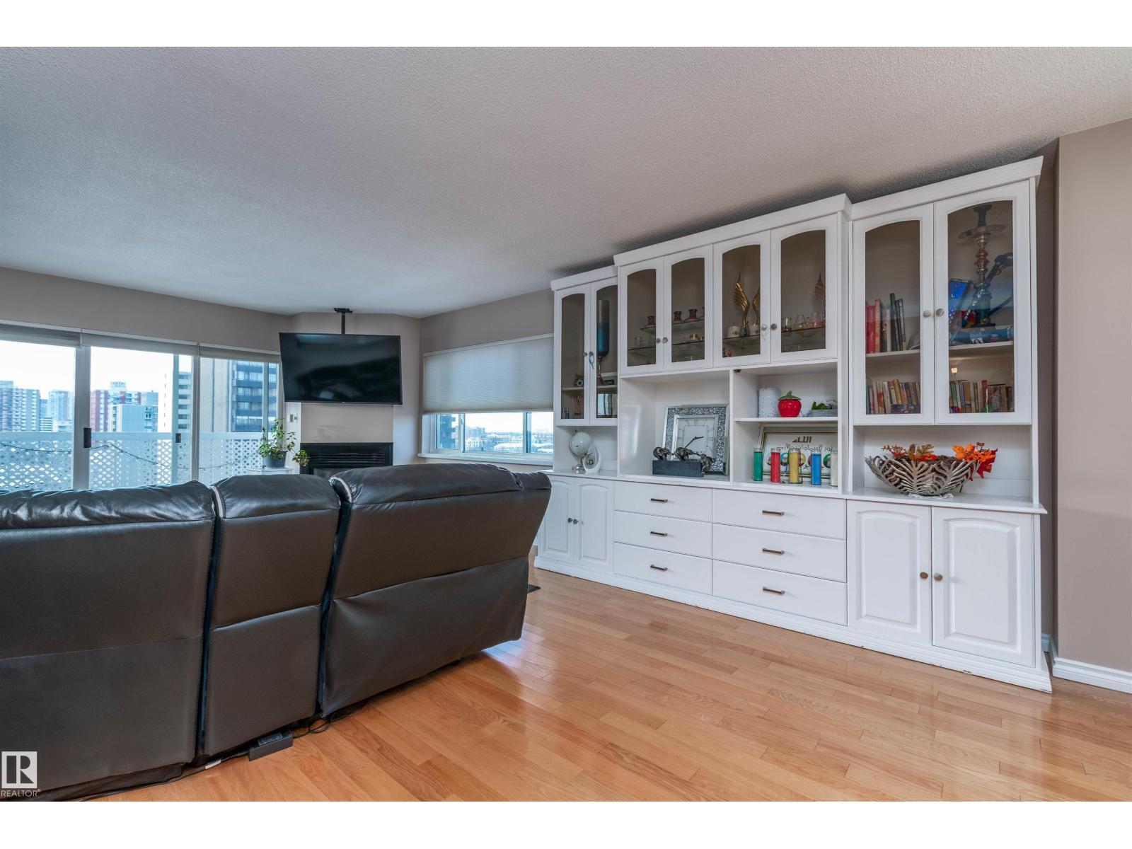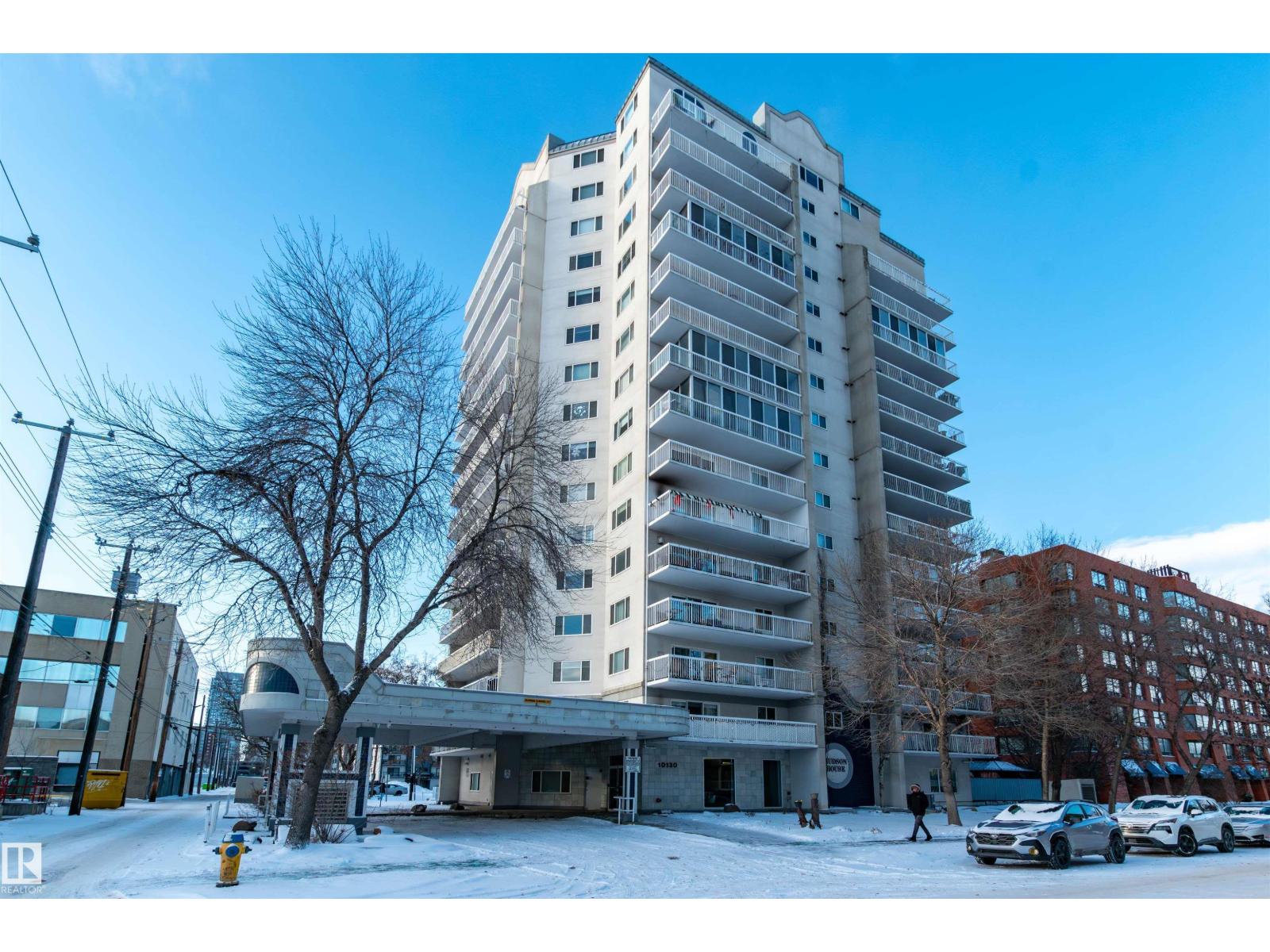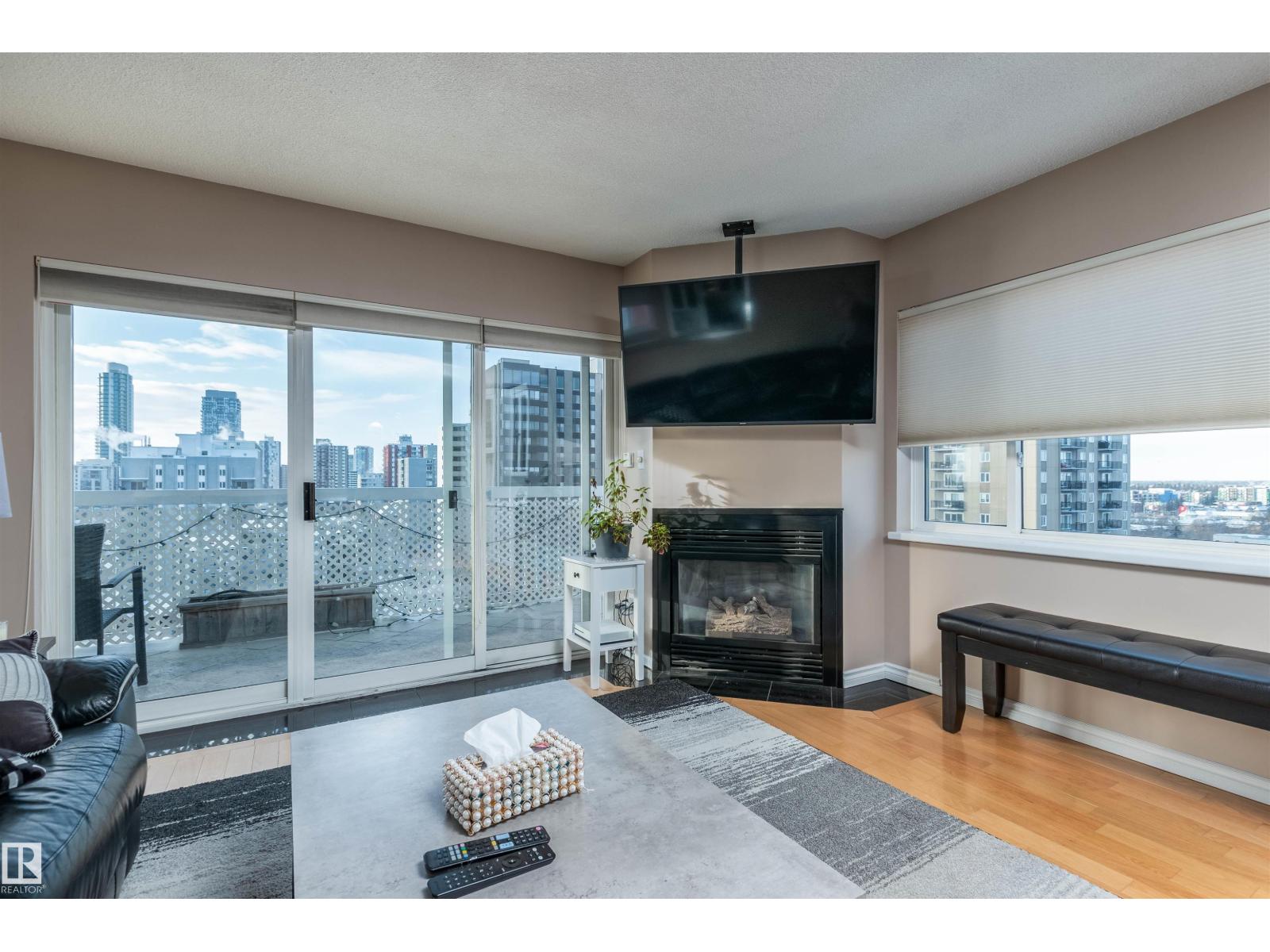 Enjoy the TREELINE & CITY VIEWS from this UPGRADED 2 bedroom condo in Hudson House! Prime location and value with immediate possession available! Only steps from Jasper Avenue and close to various restaurants & cafes, shopping, transit, The River Valley, ICE District, MacEwan University and the U of A. This beauty offers 1172 square feet, lovely kitchen with Newer countertops & stainless steel appliances. Generous dining area & a very spacious and bright living room with engineered hardwood floors, wall unit & gas fireplace for those cozy winter nights. The Primary Bedroom features its own private 3 piece ensuite. Full bathroom and convenient in-suite laundry as well. Enjoy the north & west exposures plus your balcony has a natural gas hook up for bbq outlet. TWO TITLED UNDERGROUND PARKING STALLS! #79 & #95 on P2. A/C through the furnace. Professionally managed building with great amenities including a social room, exercise room, sauna & guest suite. AMAZING VALUE! Visit REALTOR® website for information. (id:63190)