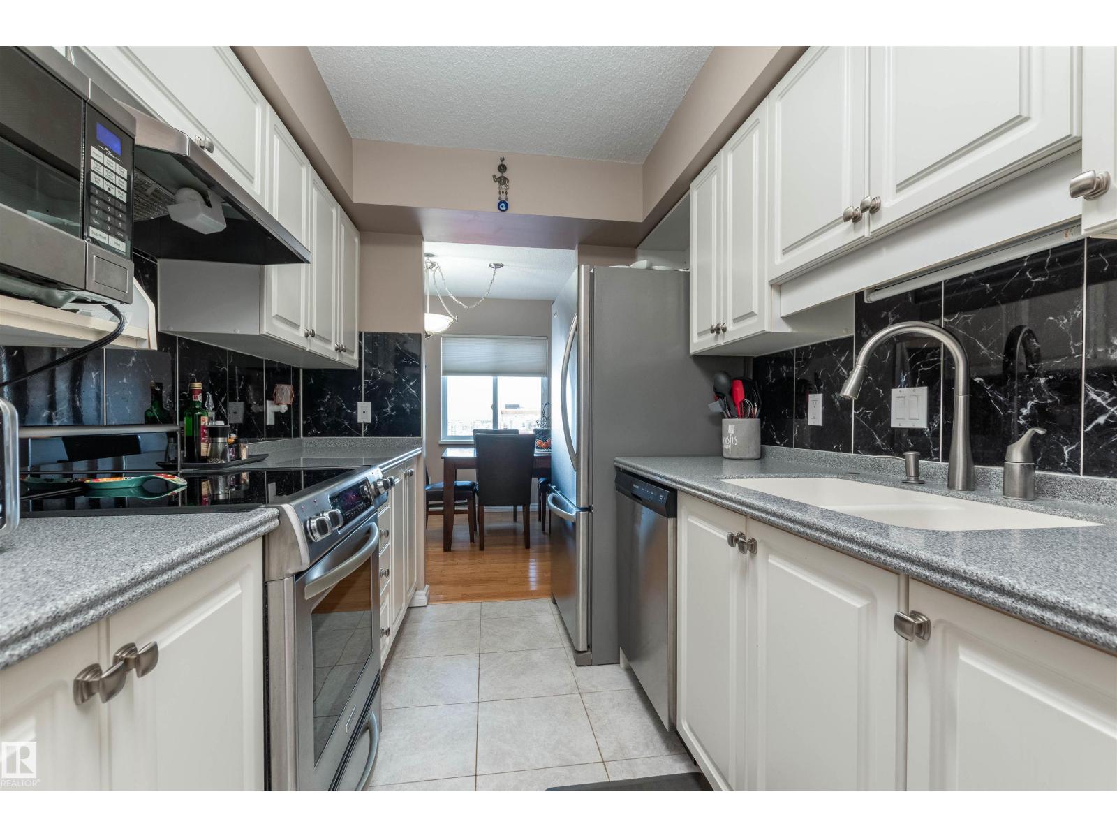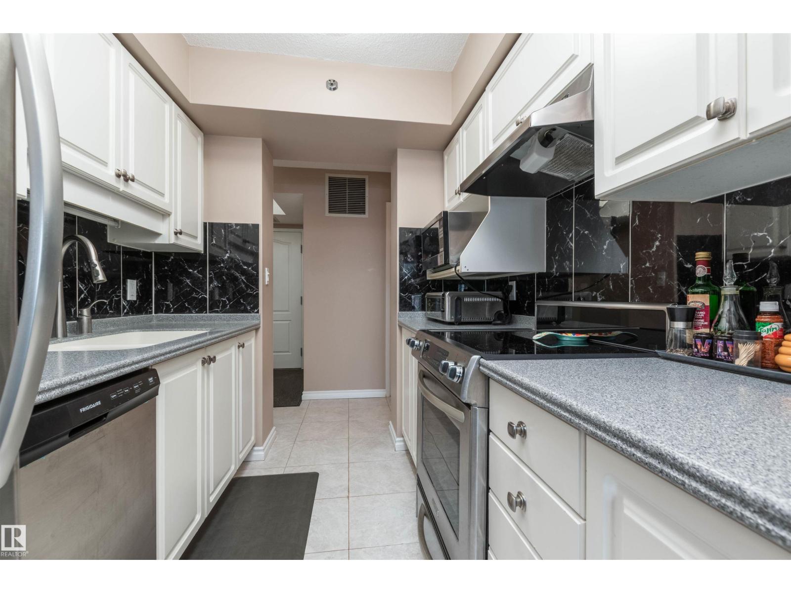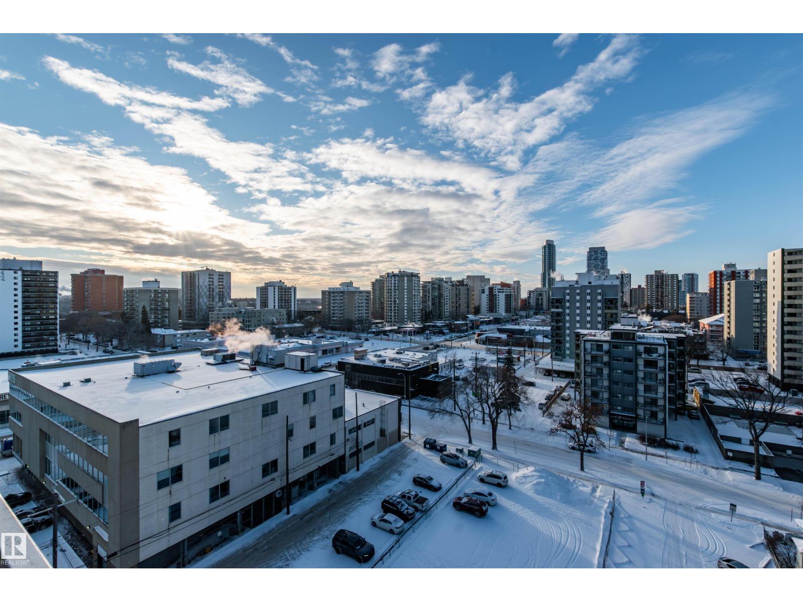 Enjoy the TREELINE & CITY VIEWS from this UPGRADED 2 bedroom condo in Hudson House! Prime location and value with immediate possession available! Only steps from Jasper Avenue and close to various restaurants & cafes, shopping, transit, The River Valley, ICE District, MacEwan University and the U of A. This beauty offers 1172 square feet, lovely kitchen with Newer countertops & stainless steel appliances. Generous dining area & a very spacious and bright living room with engineered hardwood floors, wall unit & gas fireplace for those cozy winter nights. The Primary Bedroom features its own private 3 piece ensuite. Full bathroom and convenient in-suite laundry as well. Enjoy the north & west exposures plus your balcony has a natural gas hook up for bbq outlet. TWO TITLED UNDERGROUND PARKING STALLS! #79 & #95 on P2. A/C through the furnace. Professionally managed building with great amenities including a social room, exercise room, sauna & guest suite. AMAZING VALUE! Visit REALTOR® website for information. (id:63190)