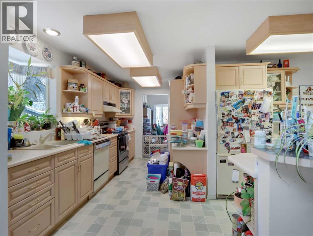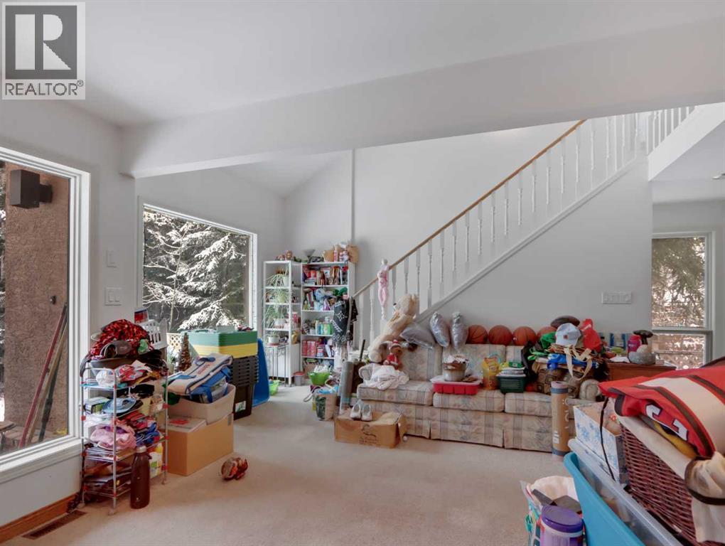 Tucked into a tranquil, almost meditative setting, this home feels miles from the bustle of downtown Canmore yet is ideally located just an easy eight-minute walk to Main Street, Safeway, and the Bow River. Offering 2,245 sq. ft. of living space, this 3+ bedroom home features a spacious main floor with a generous entry and den, open living and kitchen area with eating bar, and access to the sunny, south-facing rear deck and yard. A large formal dining room—ideal as a flex space, office, or potential fourth bedroom—along with a full bathroom completes the main level. Upstairs are three spacious bedrooms and a three-piece bathroom, with the primary bedroom enjoying ensuite privilege. Set on a 50-foot-wide lot exceeding 6,600 sq. ft., the property offers alley access to an oversized 700+ sq. ft. garage with bonus loft space. Steps to Canmore’s trail system, this location offers privacy, walkability, and lifestyle. (id:63190)