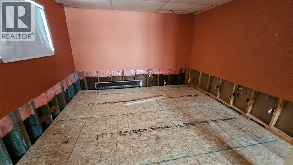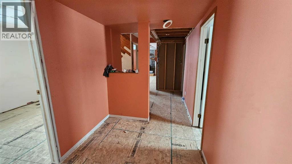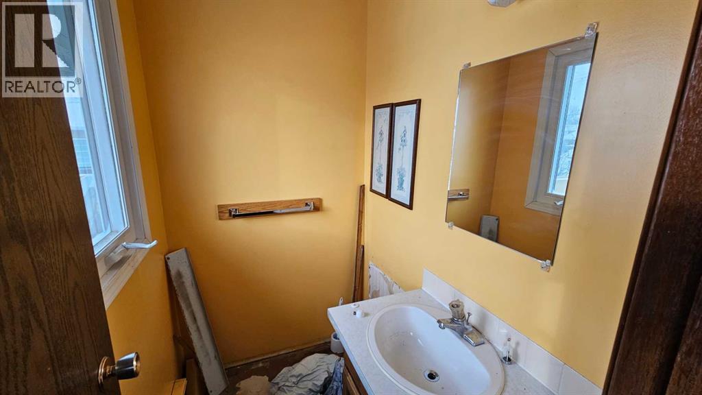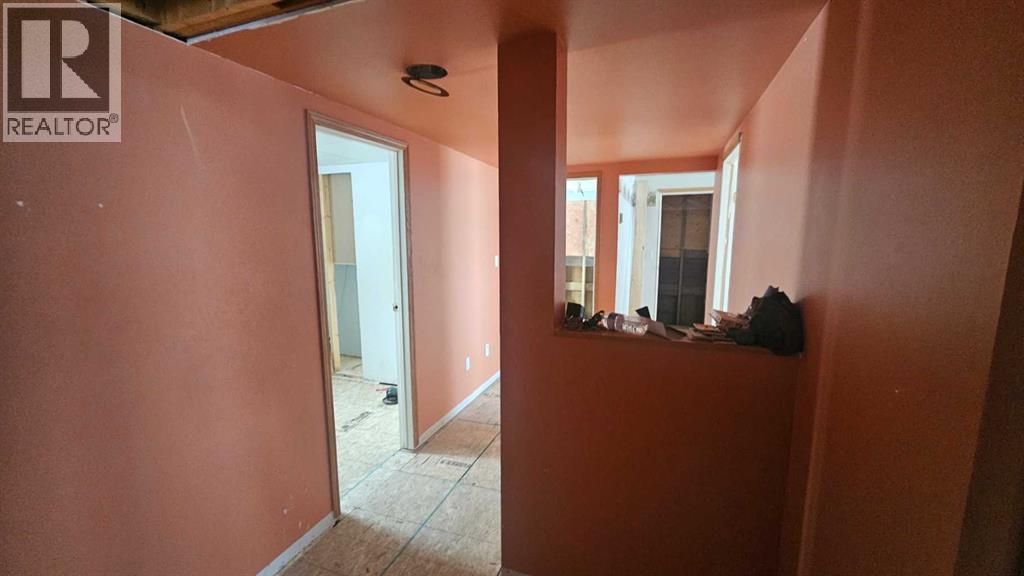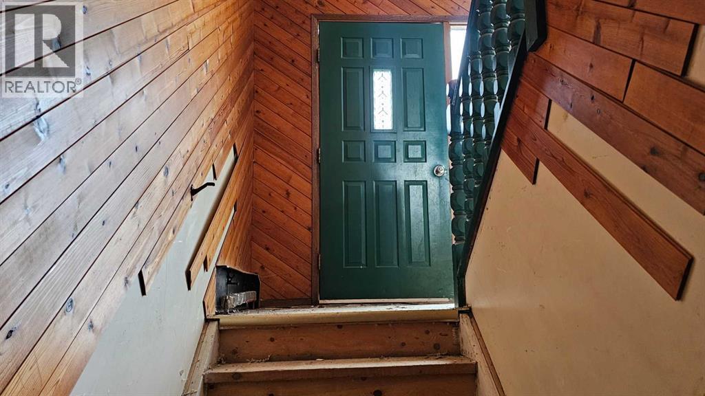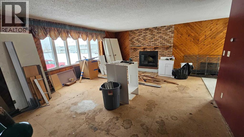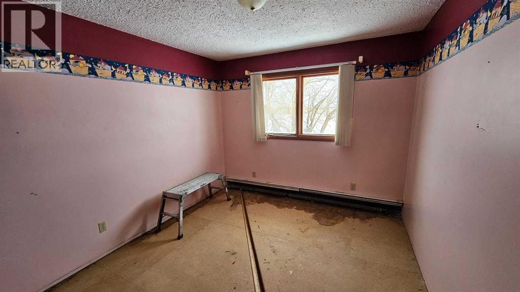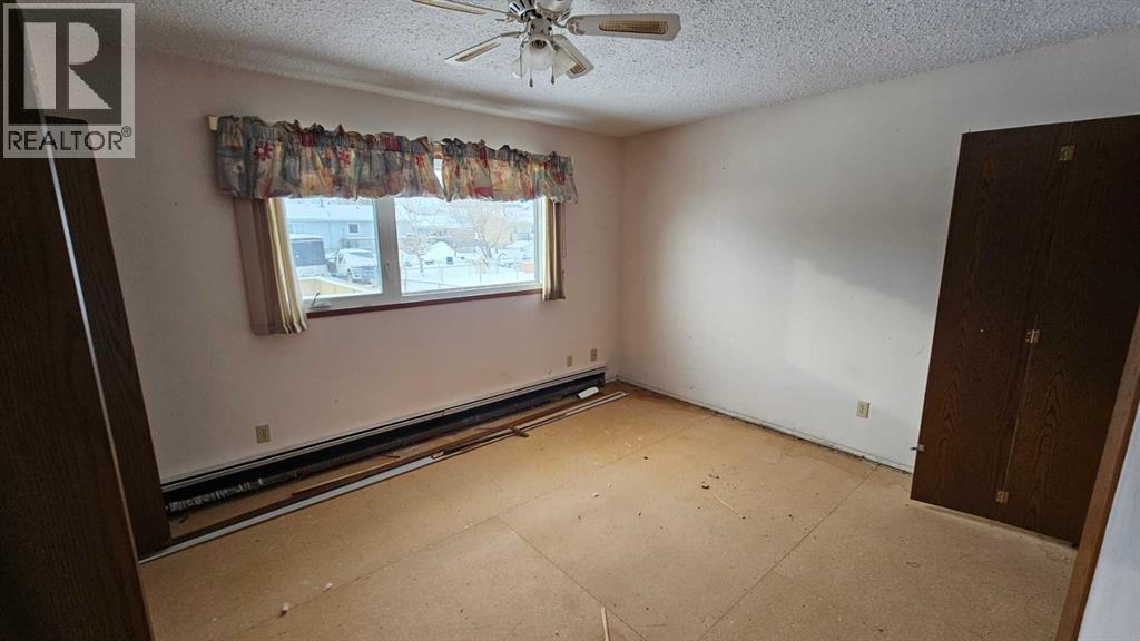 Cozy Bi level overlooking the Golf Course in Coronation, this home has 1289 sq ft of living space that will need some help. There has been some major damage to the home and now is being sold with the thought of the next person doing the renovations. It has three bedrooms on the main floor along with two bathrooms. There is also a laundry room on the main floor. The living room has the beautiful view of the golf course, with the kitchen and dining area beside needing some renovations. In the wood basement there is a boiler and hot water tank, along with a rough in for the three piece bathroom. There are three more bedrooms and a very large family/ entertainment area. The fireplaces are not working. Out back is the two car garage and a fenced in yard with a deck. This home has the bones to be brought back to life with a little help from the future owners. (id:63190)