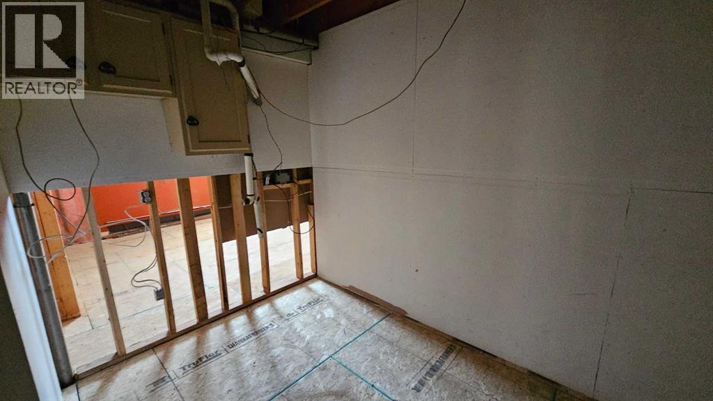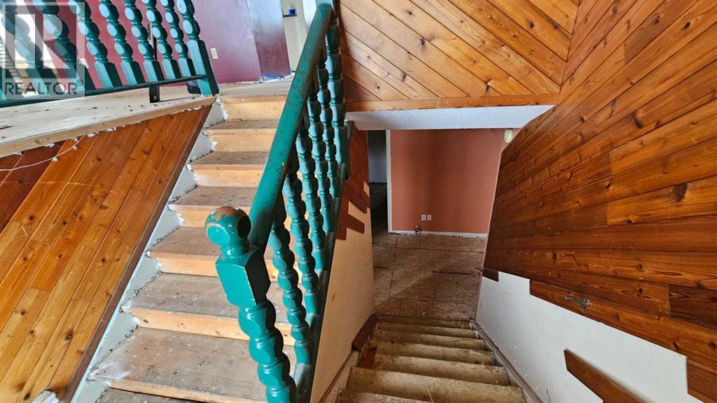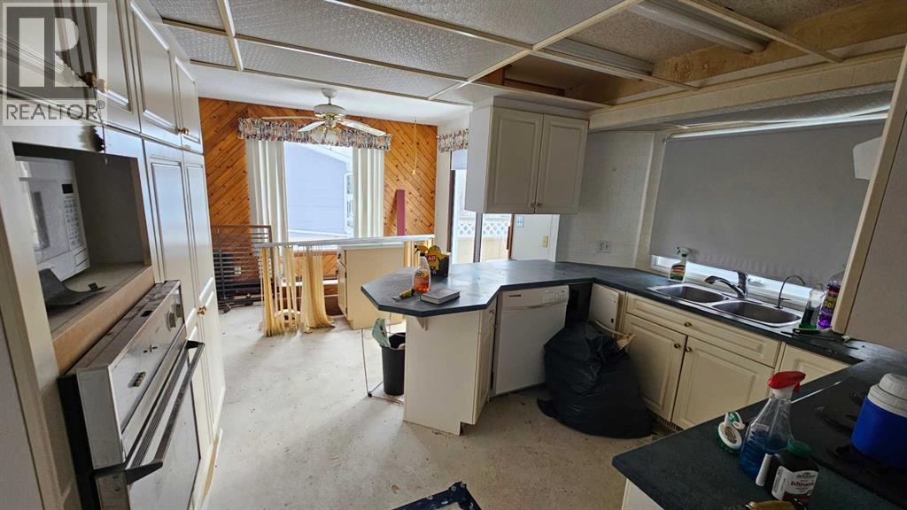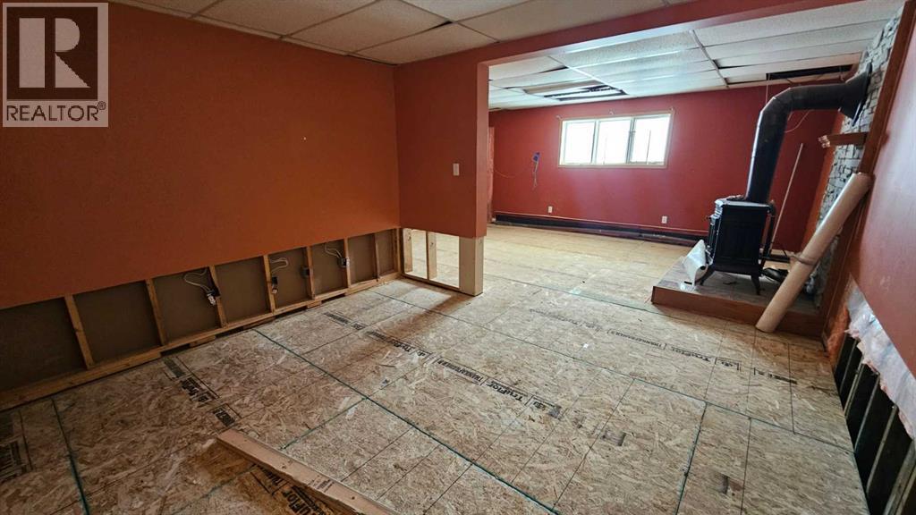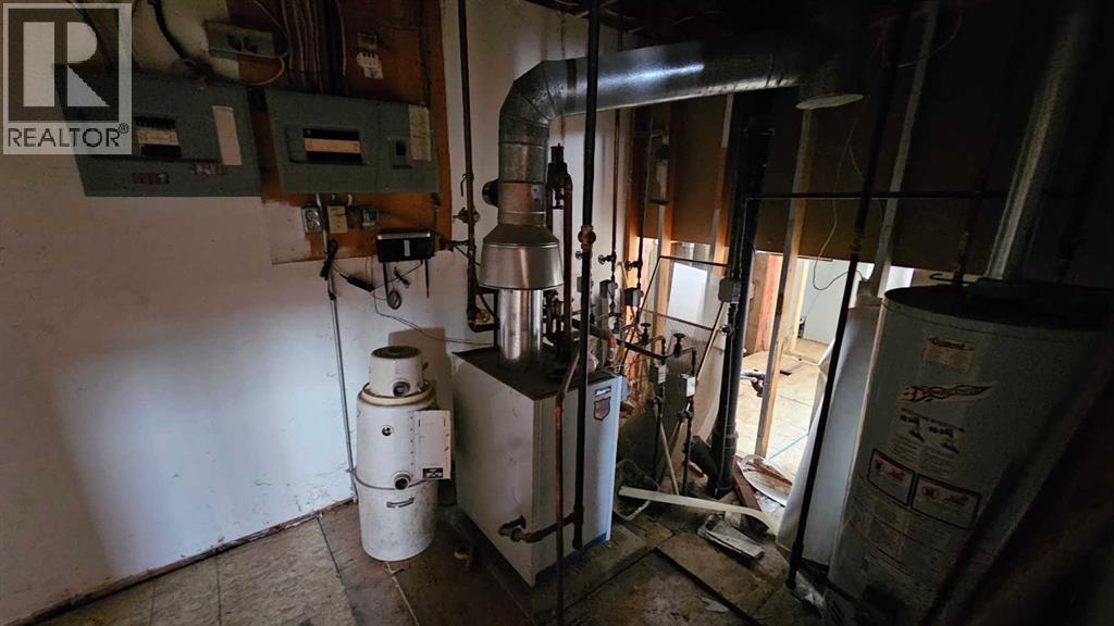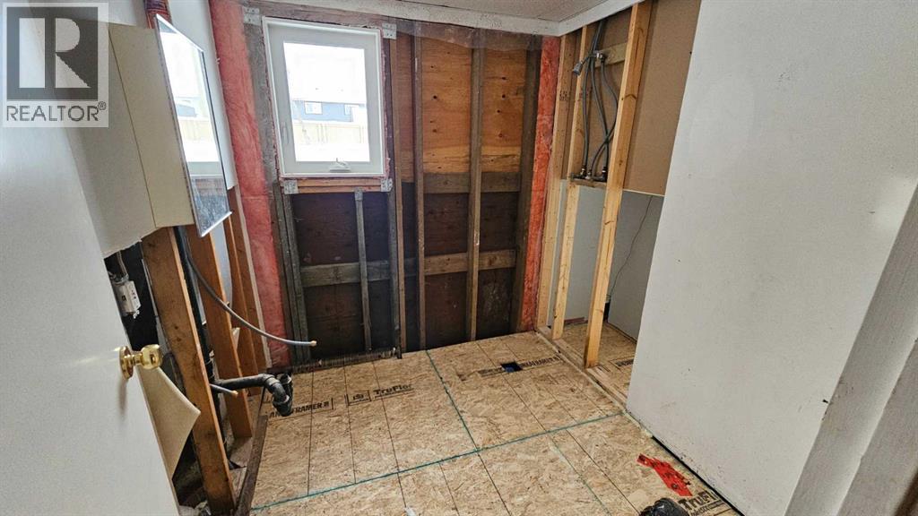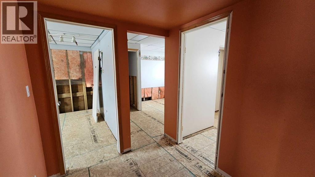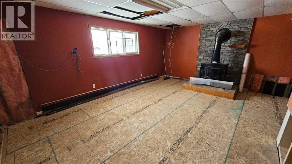 Cozy Bi level overlooking the Golf Course in Coronation, this home has 1289 sq ft of living space that will need some help. There has been some major damage to the home and now is being sold with the thought of the next person doing the renovations. It has three bedrooms on the main floor along with two bathrooms. There is also a laundry room on the main floor. The living room has the beautiful view of the golf course, with the kitchen and dining area beside needing some renovations. In the wood basement there is a boiler and hot water tank, along with a rough in for the three piece bathroom. There are three more bedrooms and a very large family/ entertainment area. The fireplaces are not working. Out back is the two car garage and a fenced in yard with a deck. This home has the bones to be brought back to life with a little help from the future owners. (id:63190)