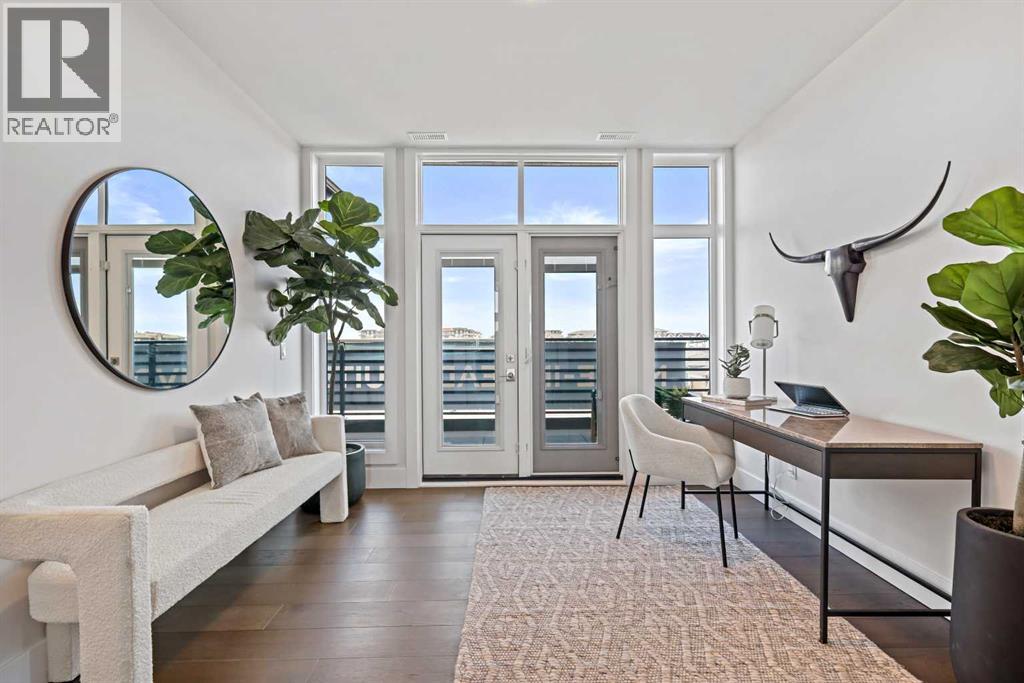 New Price Release — 10 Luxury Reflection Homes Just Completed, Ready for Immediate Occupancy! The Streams of Lake Mahogany present an elevated single-level penthouse lifestyle in our stunning Reflection Estate homes situated lakeside on Mahogany Lake. Selected from the renowned Westman Village Community, you will discover THE SPRINGS, a home created for the most discerning buyer, offering a curated space to enjoy and appreciate the hand-selected luxury of a resort-style feel while providing you with a maintenance-free opportunity to lock and leave. Step into an expansive 2000+ builders sq ft stunning home overlooking the gorgeous Mahogany Lake featuring a thoughtfully designed open floor plan inviting an abundance of natural daylight with soaring 12-foot ceilings and floor to ceiling windows. The centralized living area, ideal for entertaining, offers a Built-in ULTRA JennAir appliance package with a 42” - 24.2 Cu Ft., Built-In, paneled, french door refrigerator with Obsidian black interior and built-in icemaker plus water with surround refrigerator Armoire Kit. Additionally, 24” cabinet panel ready dishwasher with stainless steel interior, 36” Professional-Style gas range top, Faber built-in cabinet hood fan, 30” combination wall oven plus microwave and Silhouette Emmental 24" Bev. Center; all nicely complemented by an Elevated Obsidian Colour Palette. All feature stunning Quartz countertops. You will enjoy two beautiful bedrooms and a generous central living area. The Primary Suite features a spacious 5-piece oasis-like ensuite with dual vanities, a large soaker tub, a stand-alone shower, and a generous walk-in closet. The Primary Suite and main living area open to a 35 ft x 17 ft terrace with a lovely view of the stunning Lake. Yours to enjoy and soak in every single day. To complete the package, you have a sizeable office area adjacent to the spacious laundry room and powder room, which open onto another expansive 25ft terrace, and a double-attached heated gara ge with a full-width, full-length driveway. Custom additions to the home include under-cabinet lighting in the kitchen, A/C, a laundry room with a convenient folding counter, a coffee bar, an office space, and more. Jayman's standard inclusions feature their trademark Core Performance, which includes 4 Solar Panels used to power common spaces, Built Green Canada Standard with an Energuide rating, UVC Ultraviolet light air purification system, high-efficiency heat pump for air conditioning, forced air fan coil hydronic heating system, active heat recovery ventilator, Navien-brand tankless hot water heater, triple pane windows and smart home technology solutions. Enjoy Calgary’s largest lake, with 21 more acres of beach area than any other community. (id:63190)